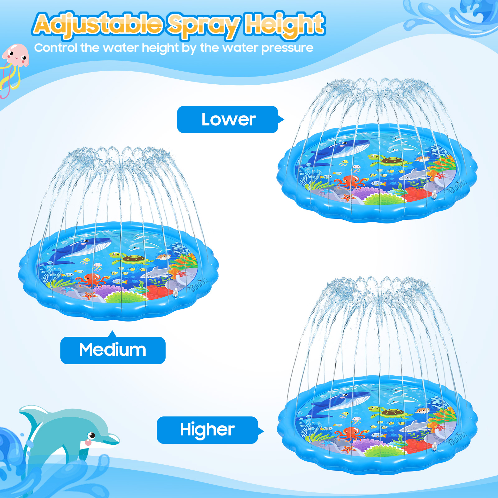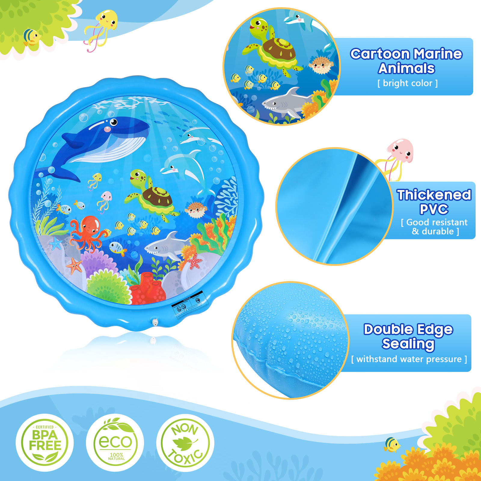 Sprinkle and Play Mat, 170CM Sprinkler Pad for Kids, Kids Sprinklers for Summer Outdoor Garden Beach