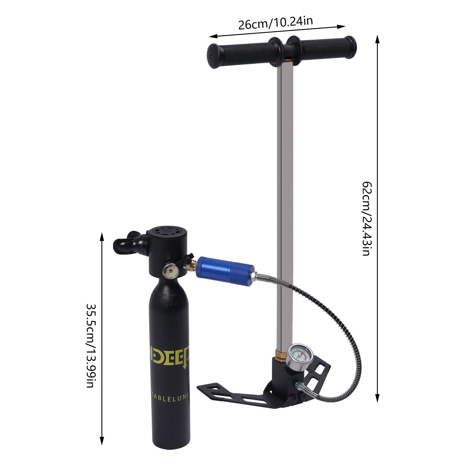 Mini Scuba Diving Case Kit 1.0L Oxygen Tank Pump Equipment Underwater Breath