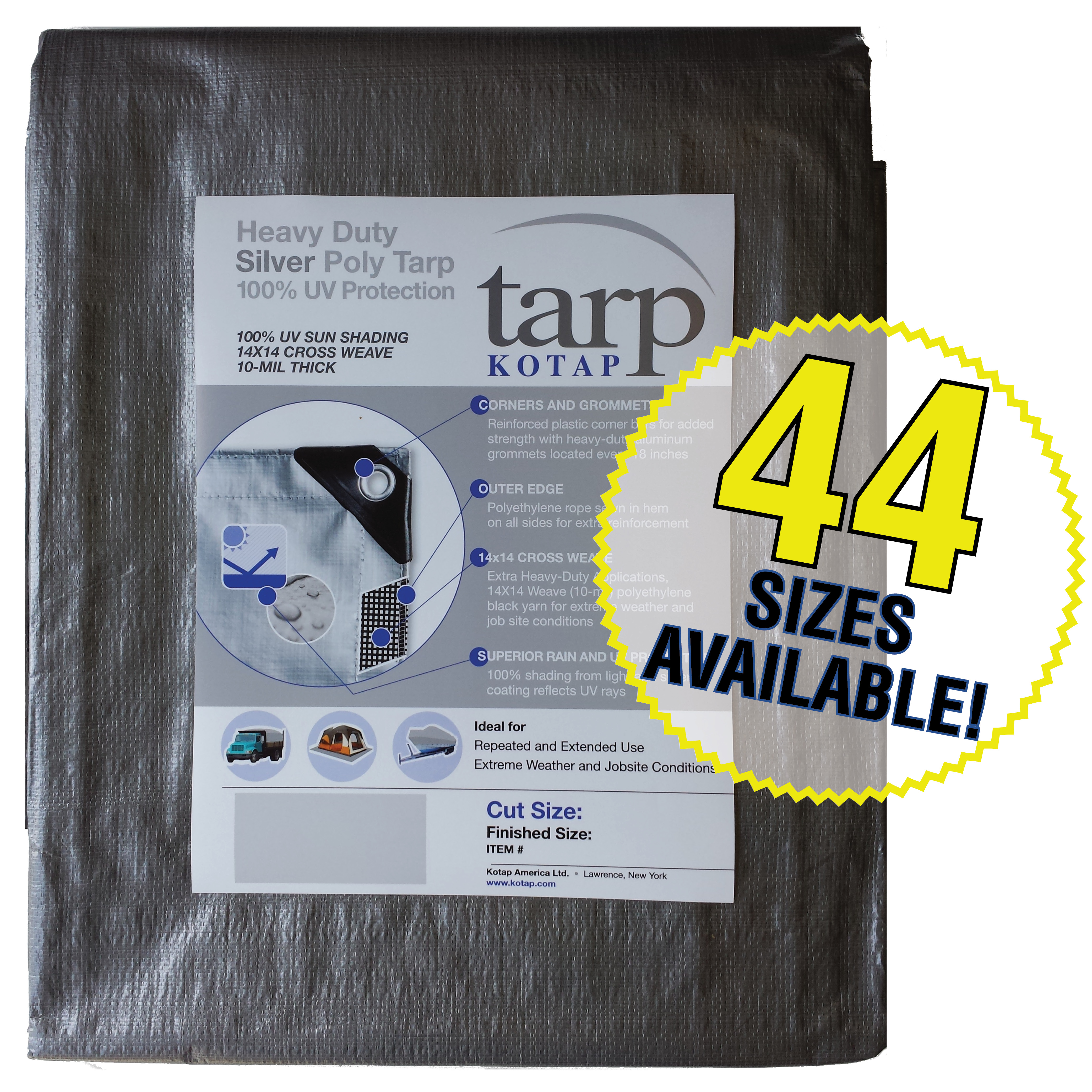 Kotap 8-ft x 10-ft Heavy-Duty 14 by 14 Cross Weave UV Blocking 10-mil Silver Poly Tarp, Item: TRS-0810