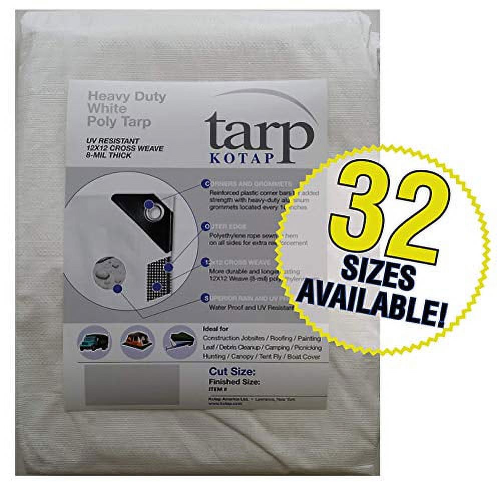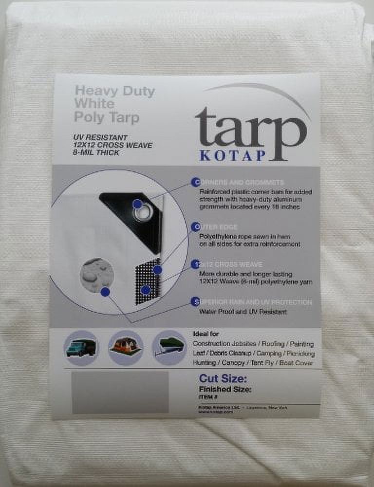 Kotap 30-ft x 30-ft Heavy-Duty 12 by 12 Cross Weave 8-mil White Poly Tarp, Item: TRW-3030