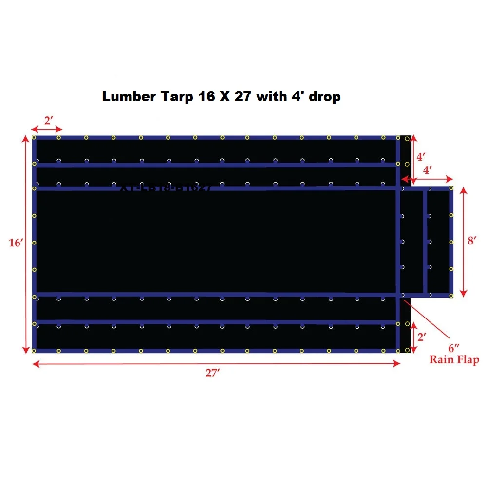 Xtarps-16' x 27' Flatbed Truck Tarp - Light Weight Lumber Tarp with 4' Drop, Black