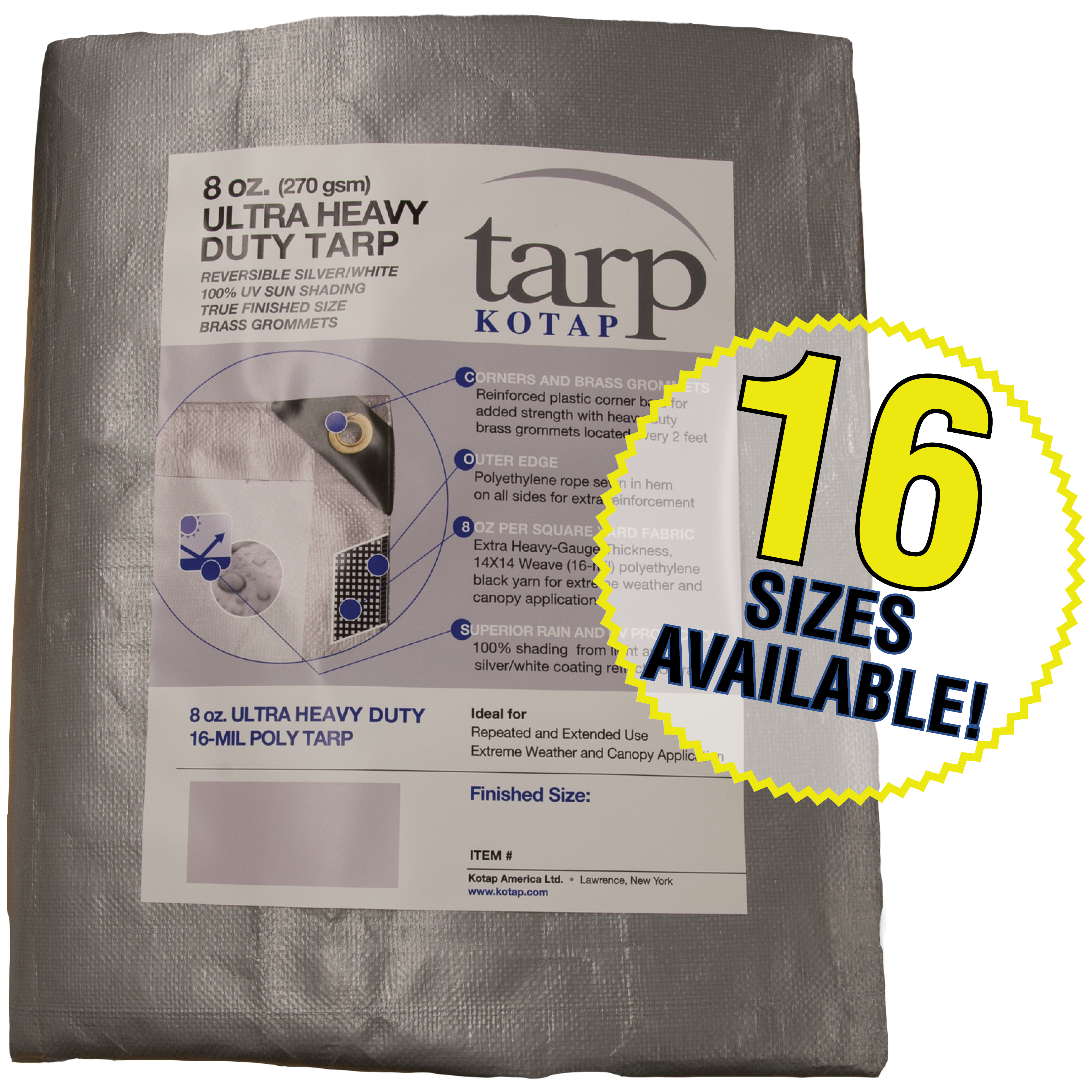 Kotap 12-ft. x 25-ft. Ultra Heavy-Duty 8 oz/16-mil Poly Tarp Reversible Silver/White, Item: TUH-1225