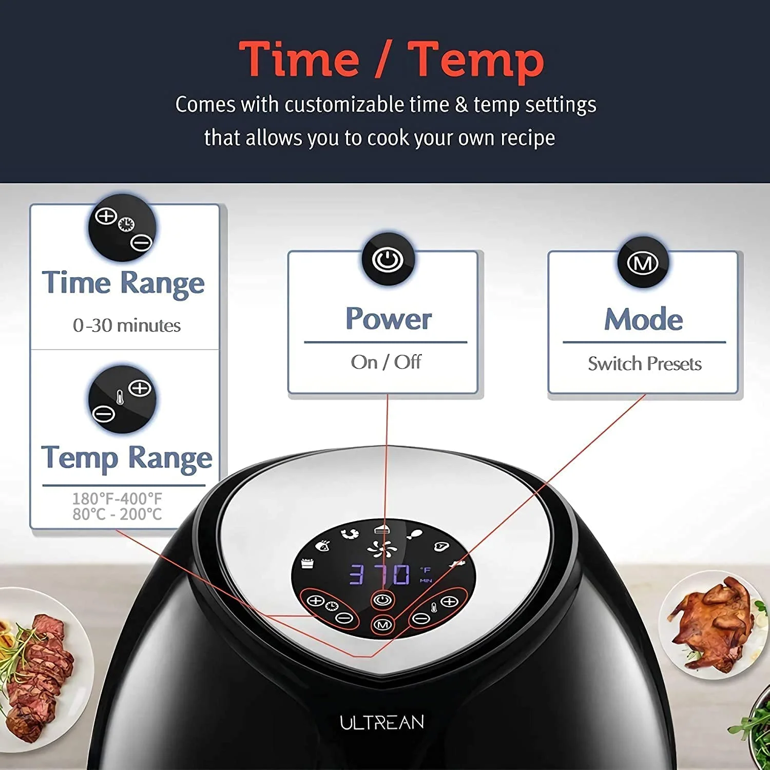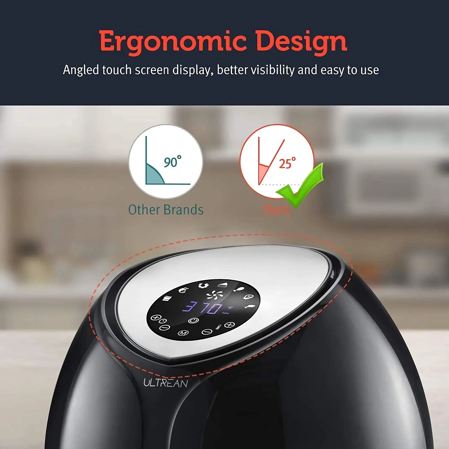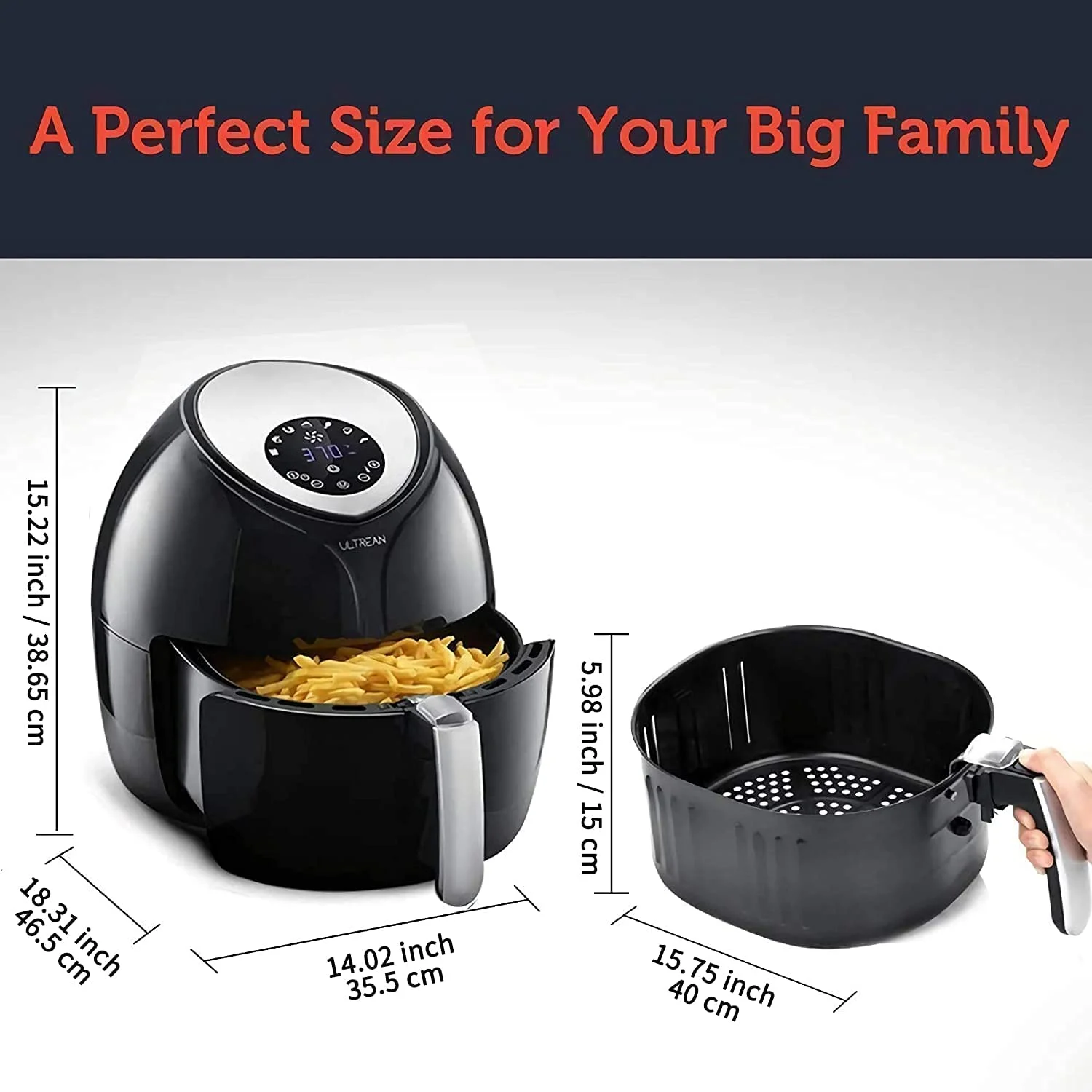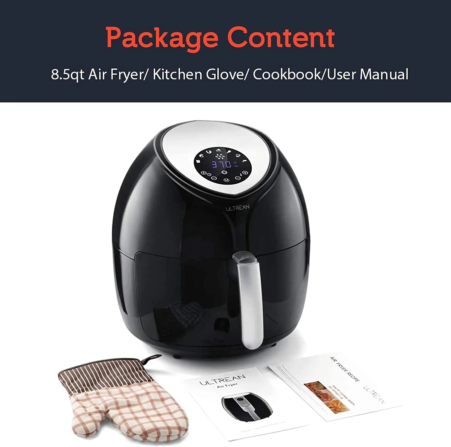 Ultrean Large Air Fryer 8.5 Quart with 7 Preset Modes, Touch Screen and Guided Cooking, 1700W (Black)