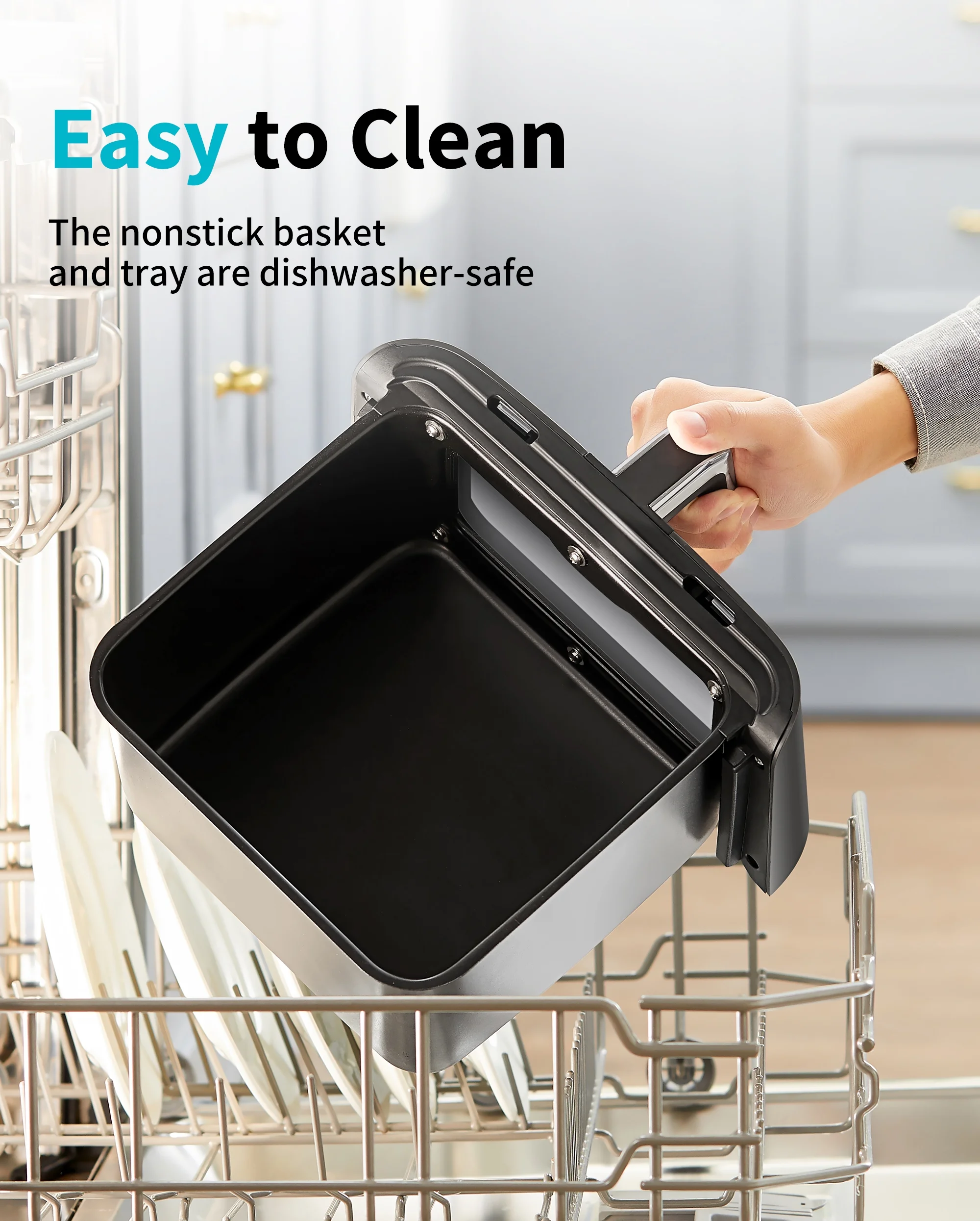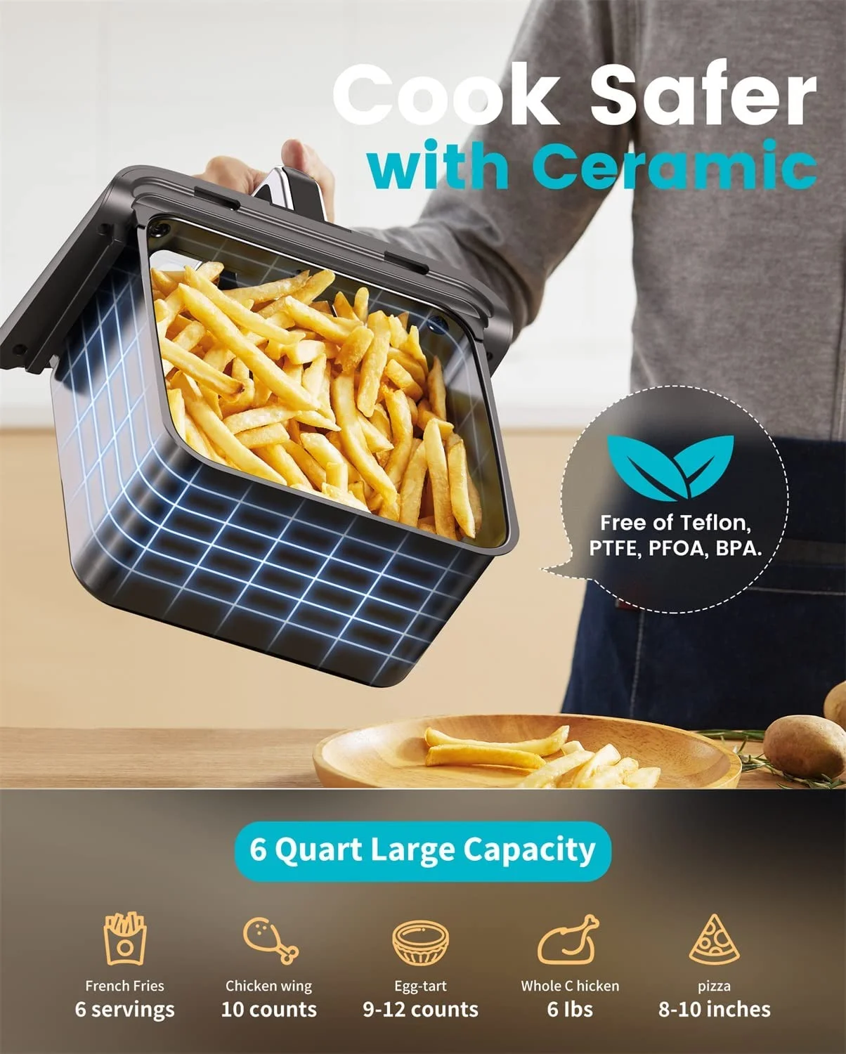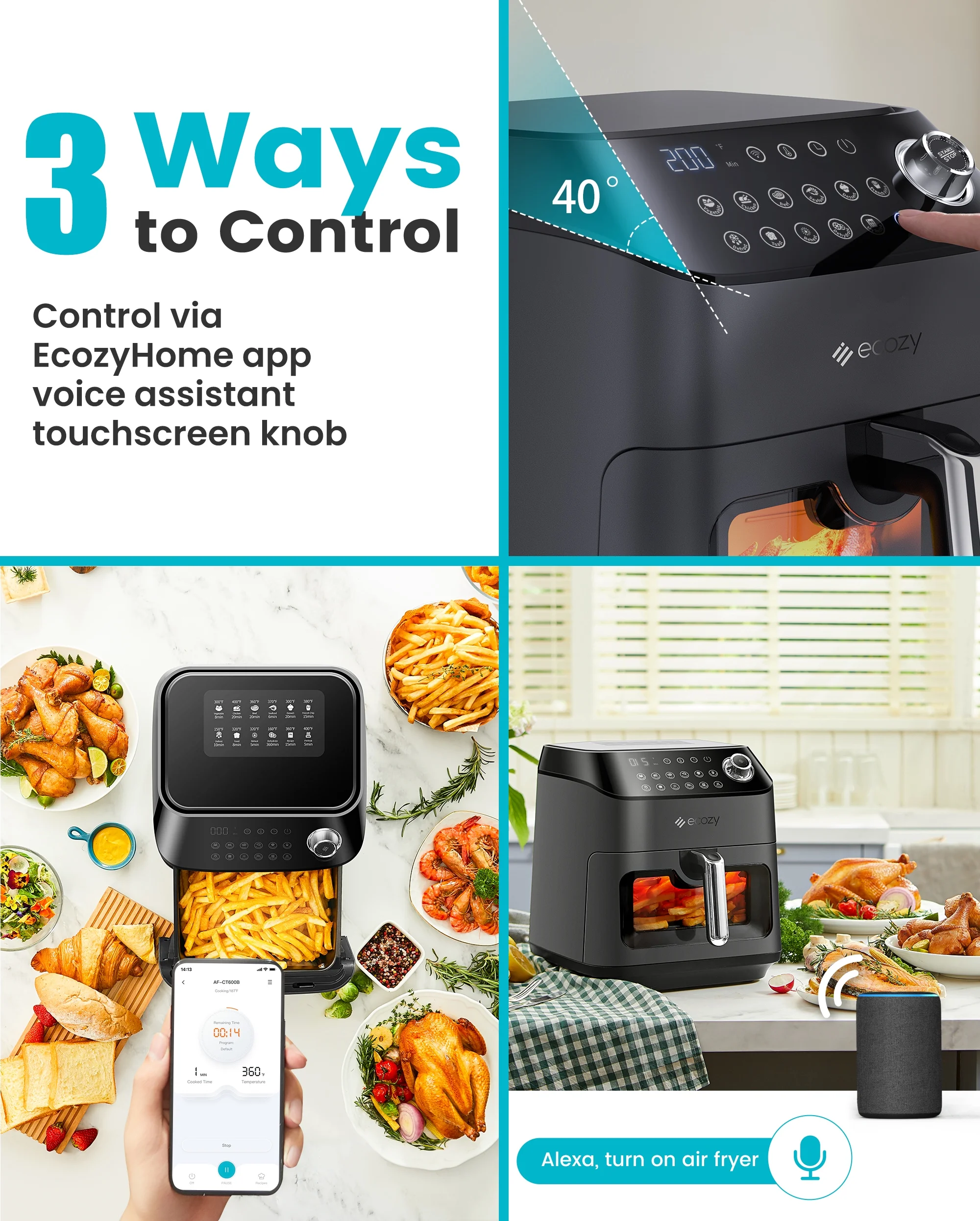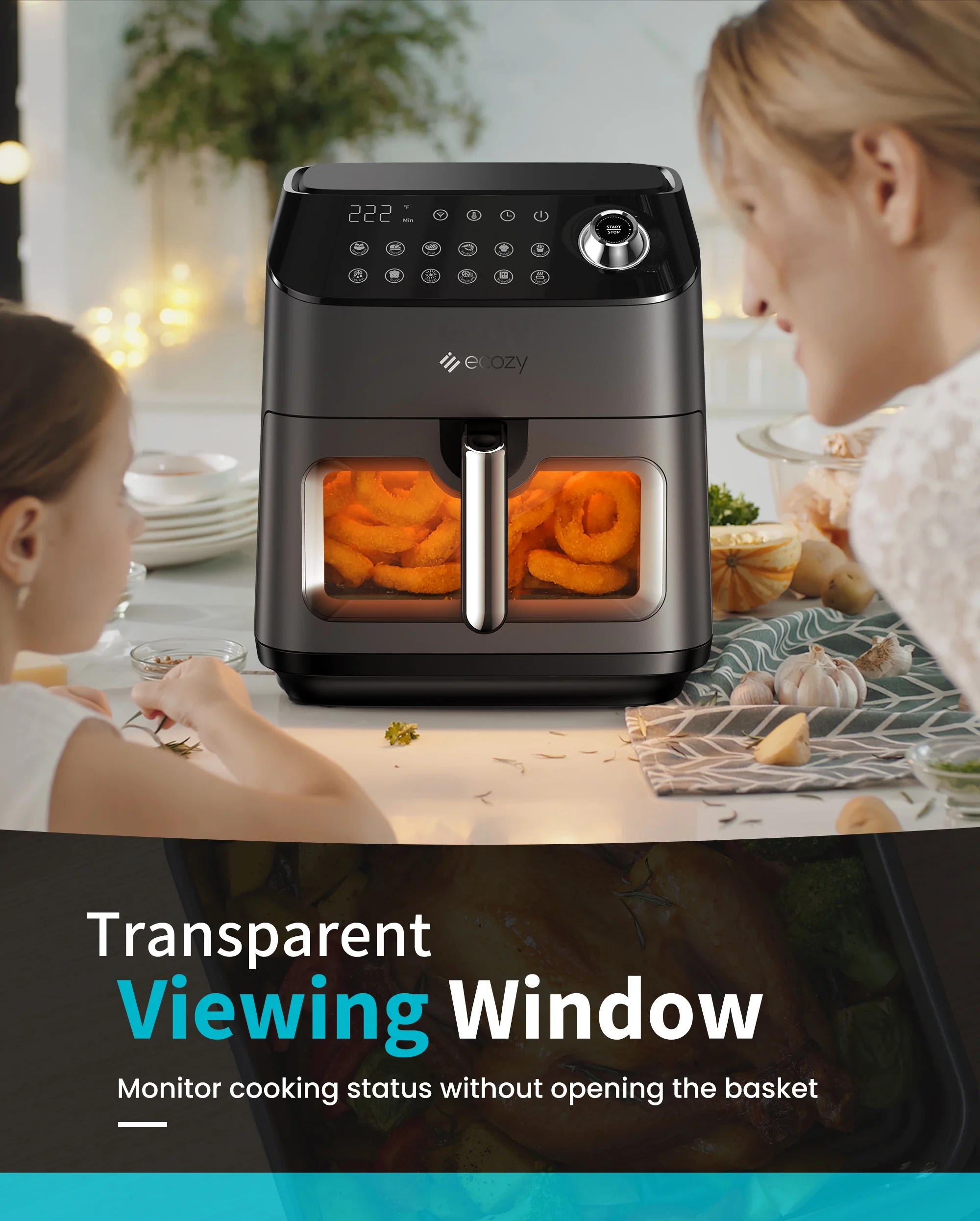 ecozy Air Fryer 6 Quart with See-Through Window Smart Wifi (100 Recipes) Dishwasher Safe, Black
