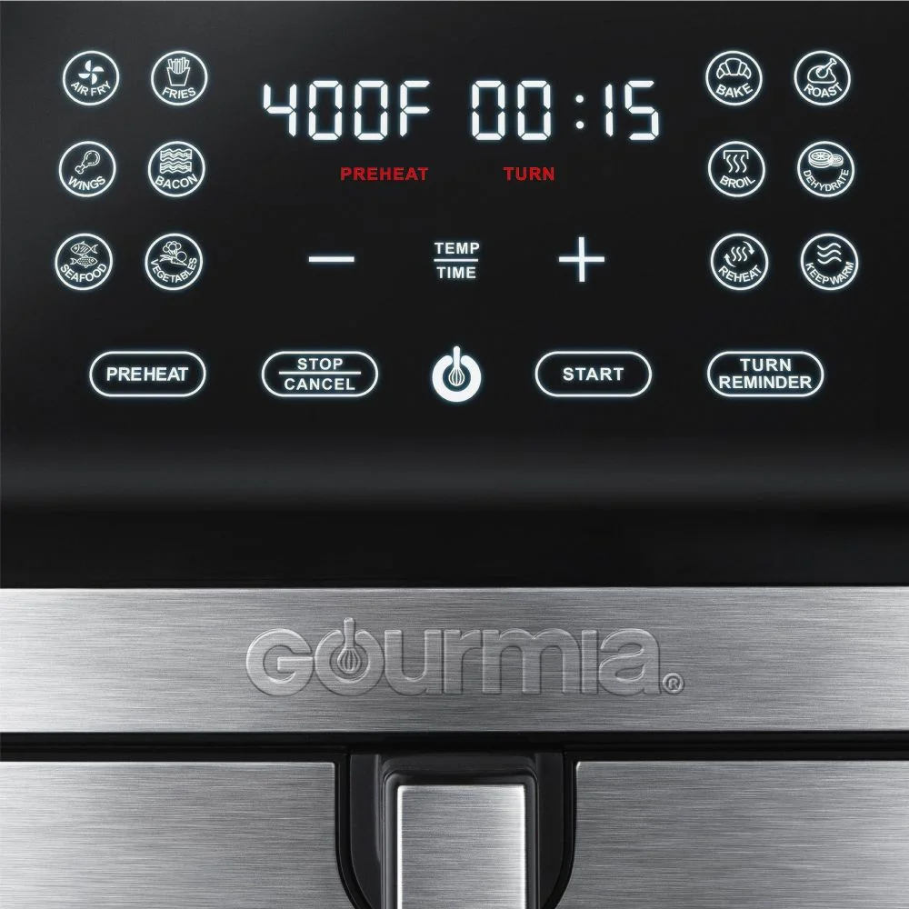 Gourmia GAF838 8-Qt Digital Air Fryer with Guided Cooking, Stainless Steel