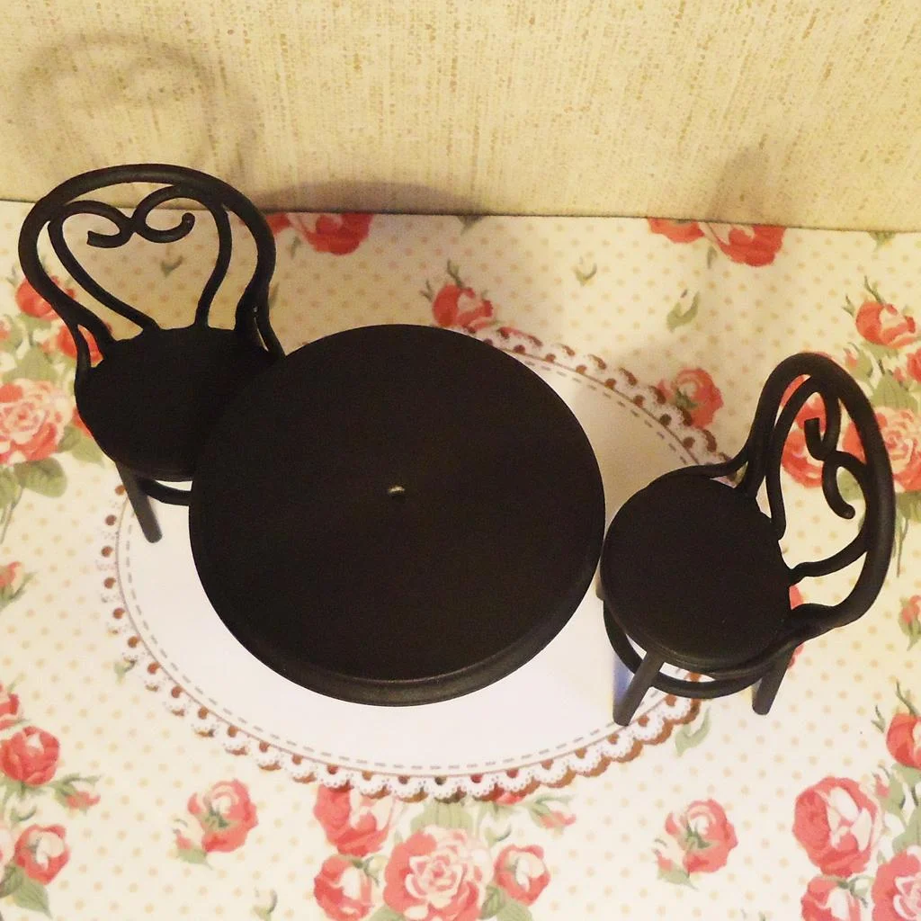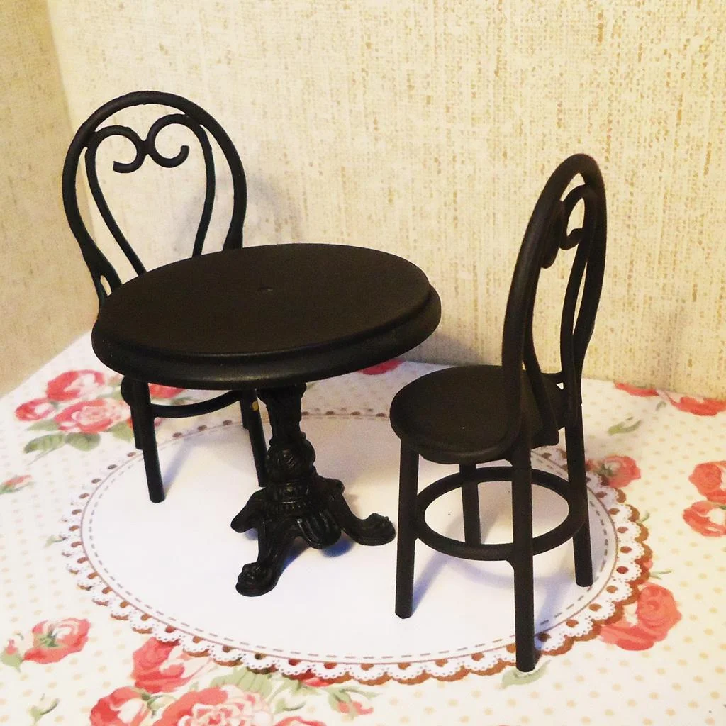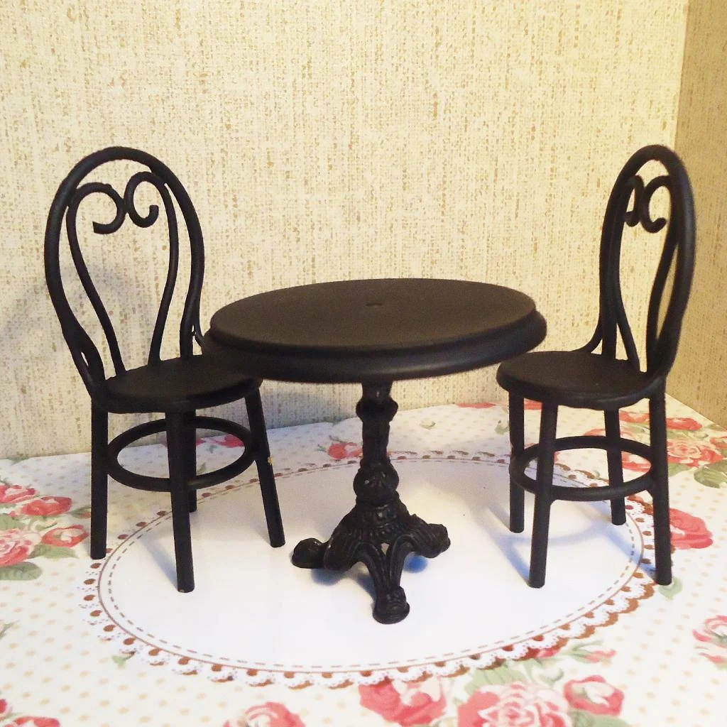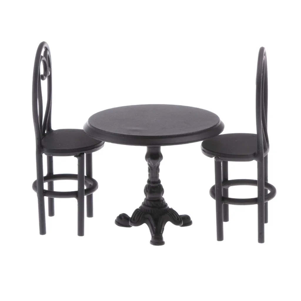 Modern Styled Black Dining Table Chairs Miniature Set 1:12 Dollhouse Furniture Toys