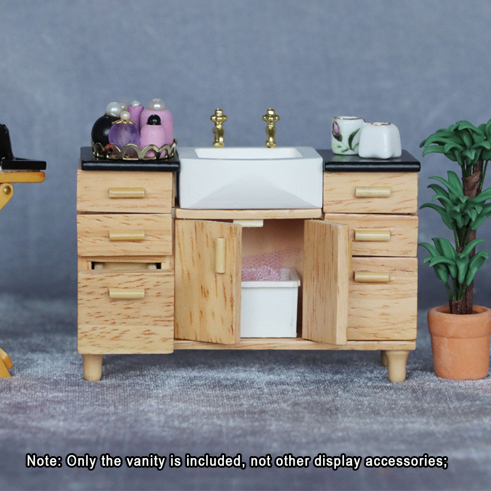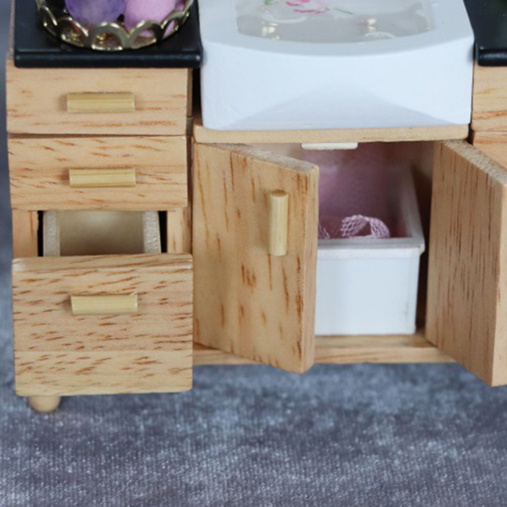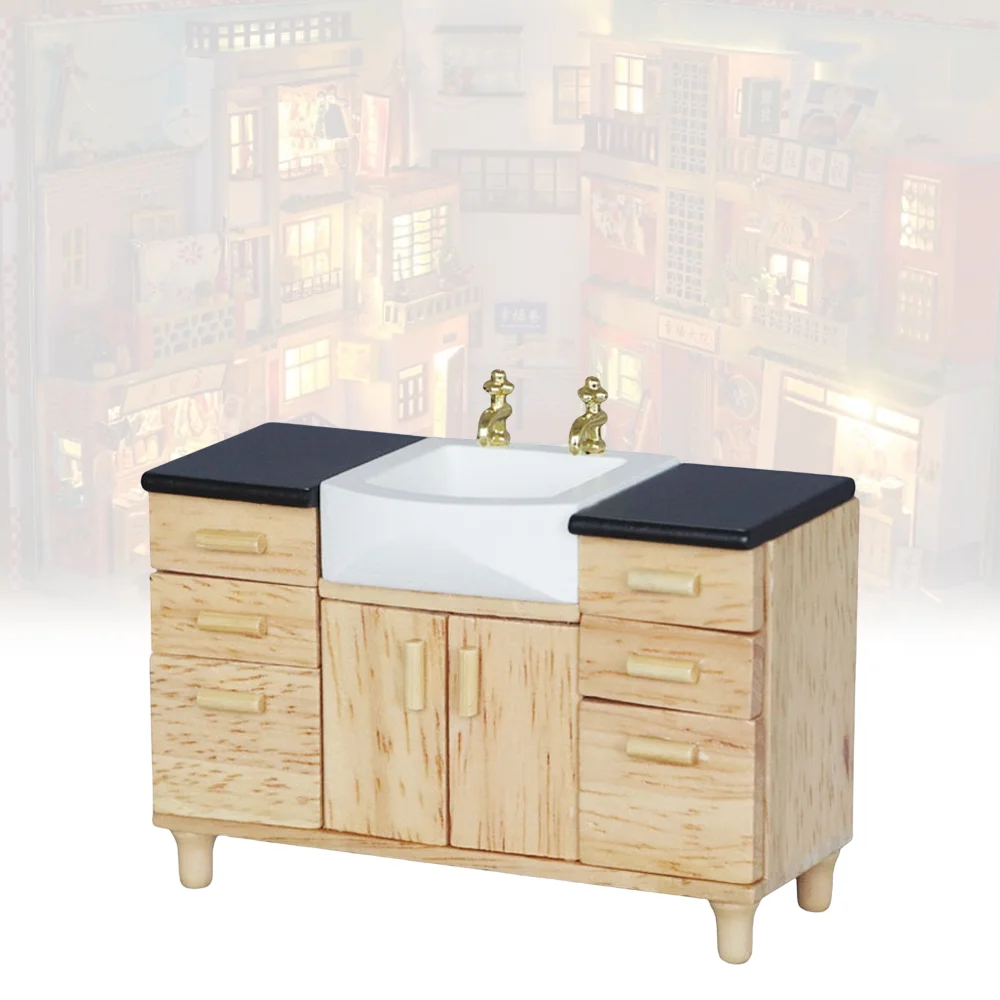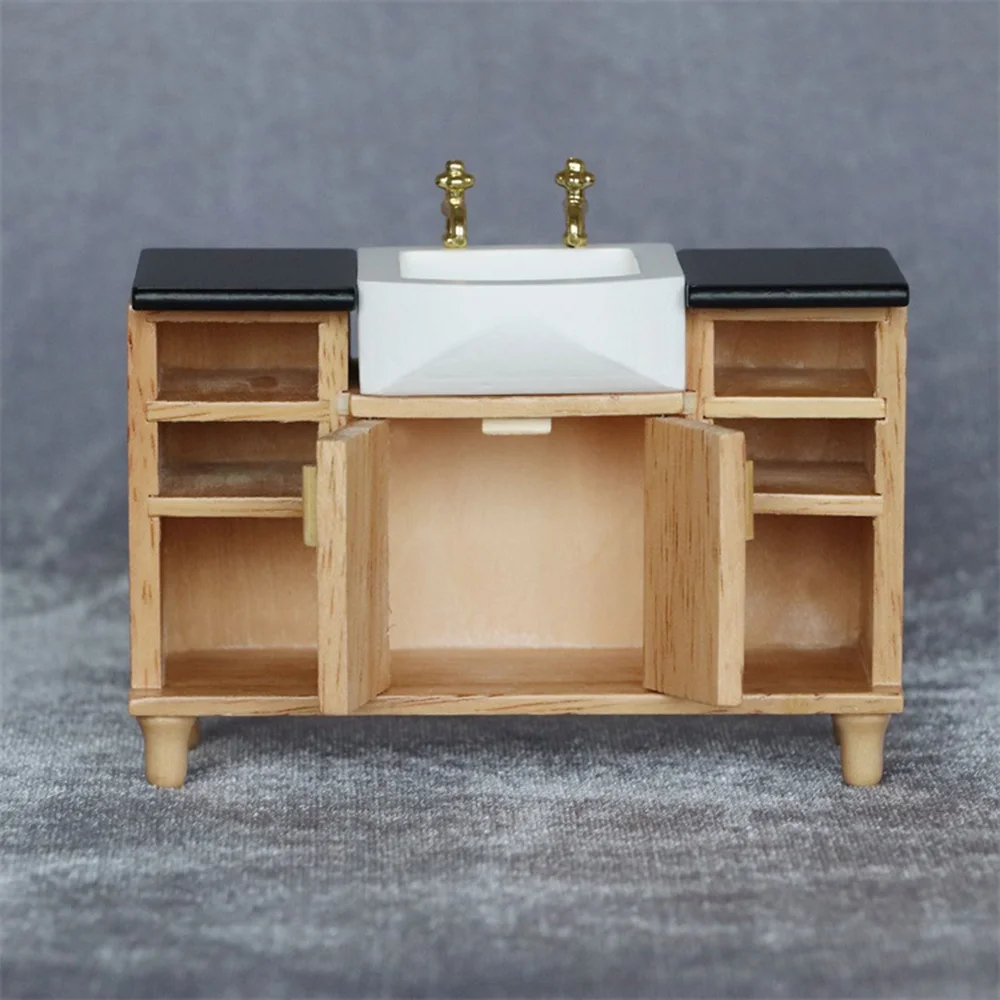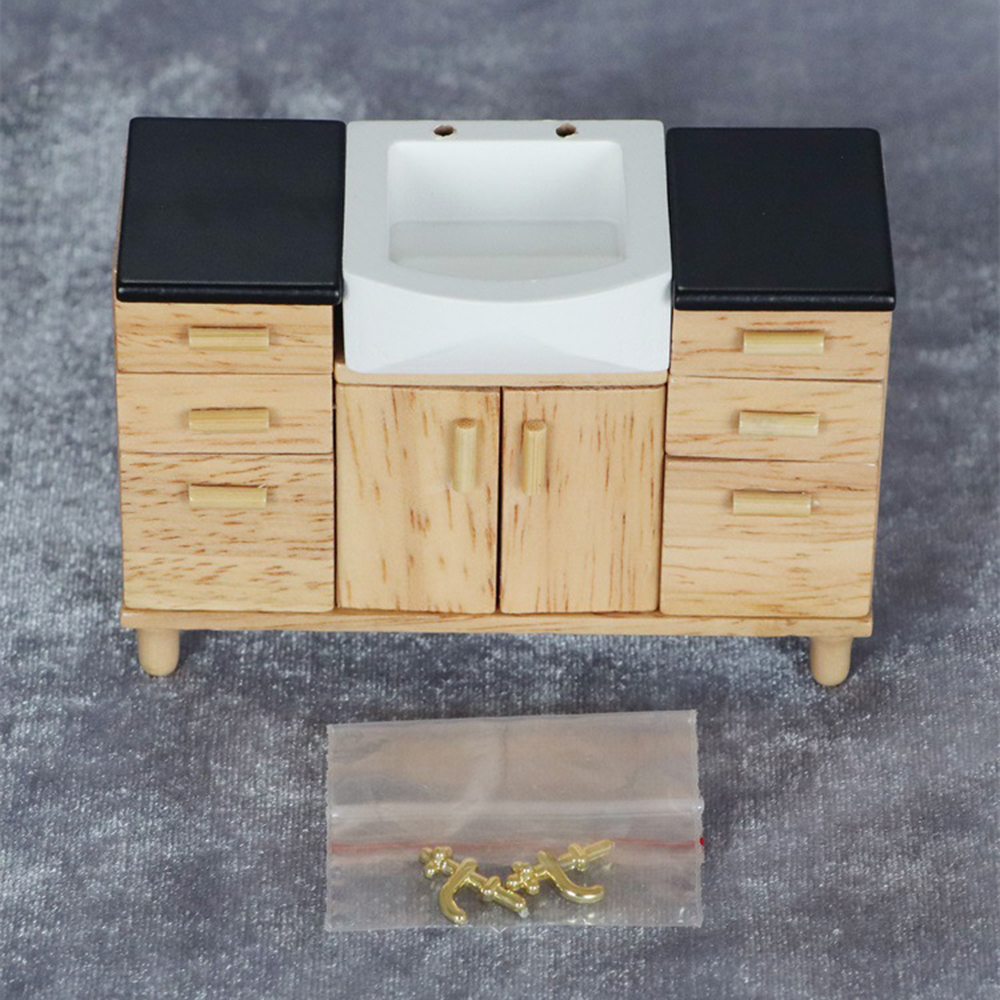 FUNNYFAIRYE 1:12 Dollhouse Mini Furniture Miniature Modern Wooden Sink Unit Cabinet Doll House Accessories