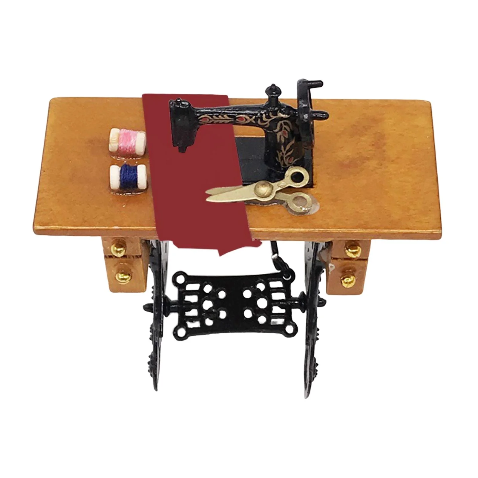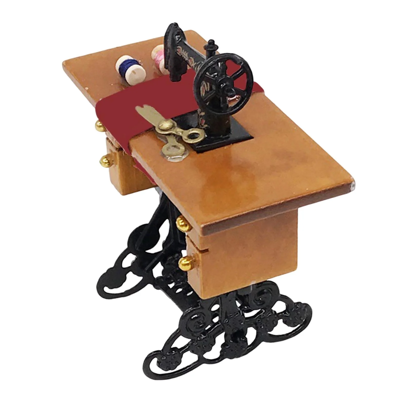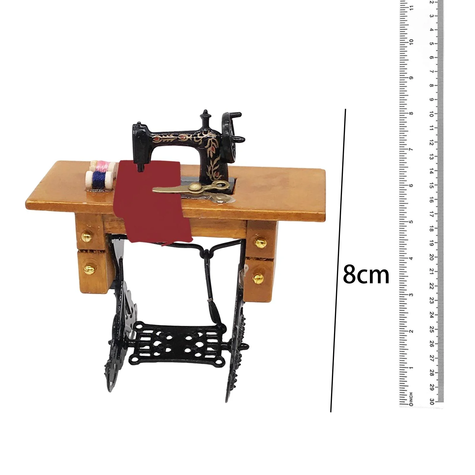 1:12 Vintage Sewing Machine Dollhouse Miniature Standing Set Mini Dollhouse Furniture Accessories Home Life Scene Ornament Kid