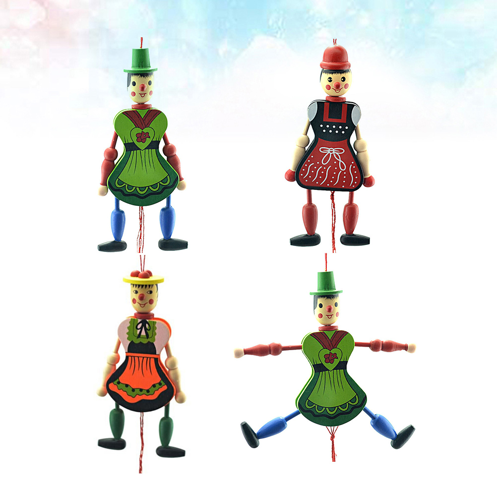 Puppet Doll Wood Toys Marionette Hanging Wooden Hand Strings Clown Pull Movable Hands Dolls