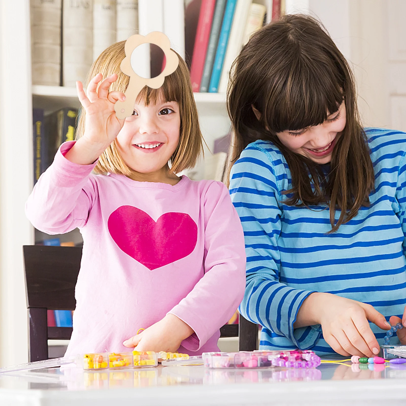 40 pcs Creative DIY Wooden Mirror Unfinished Wood Handheld Mirror Craft Mirror for Kids Projects Childrens Crafts Activities Flower