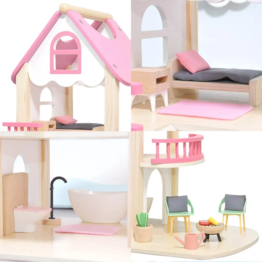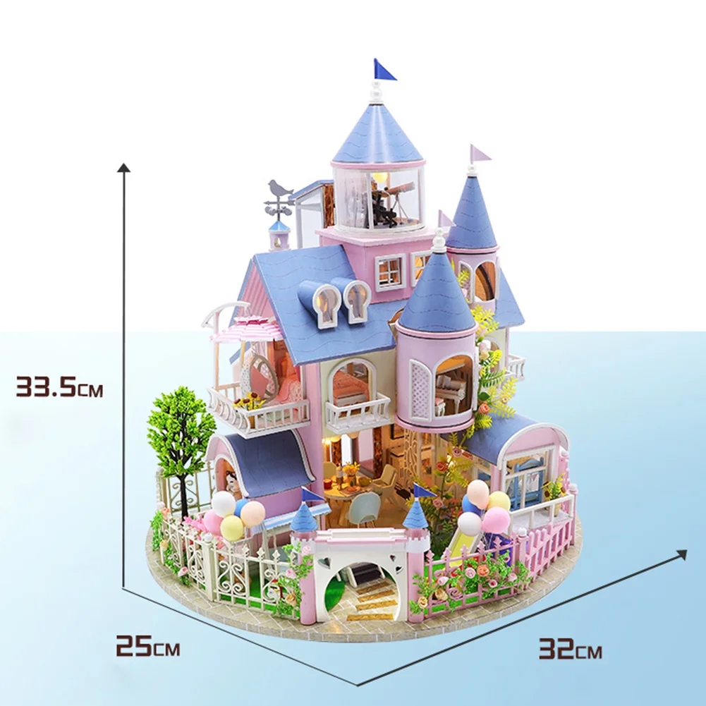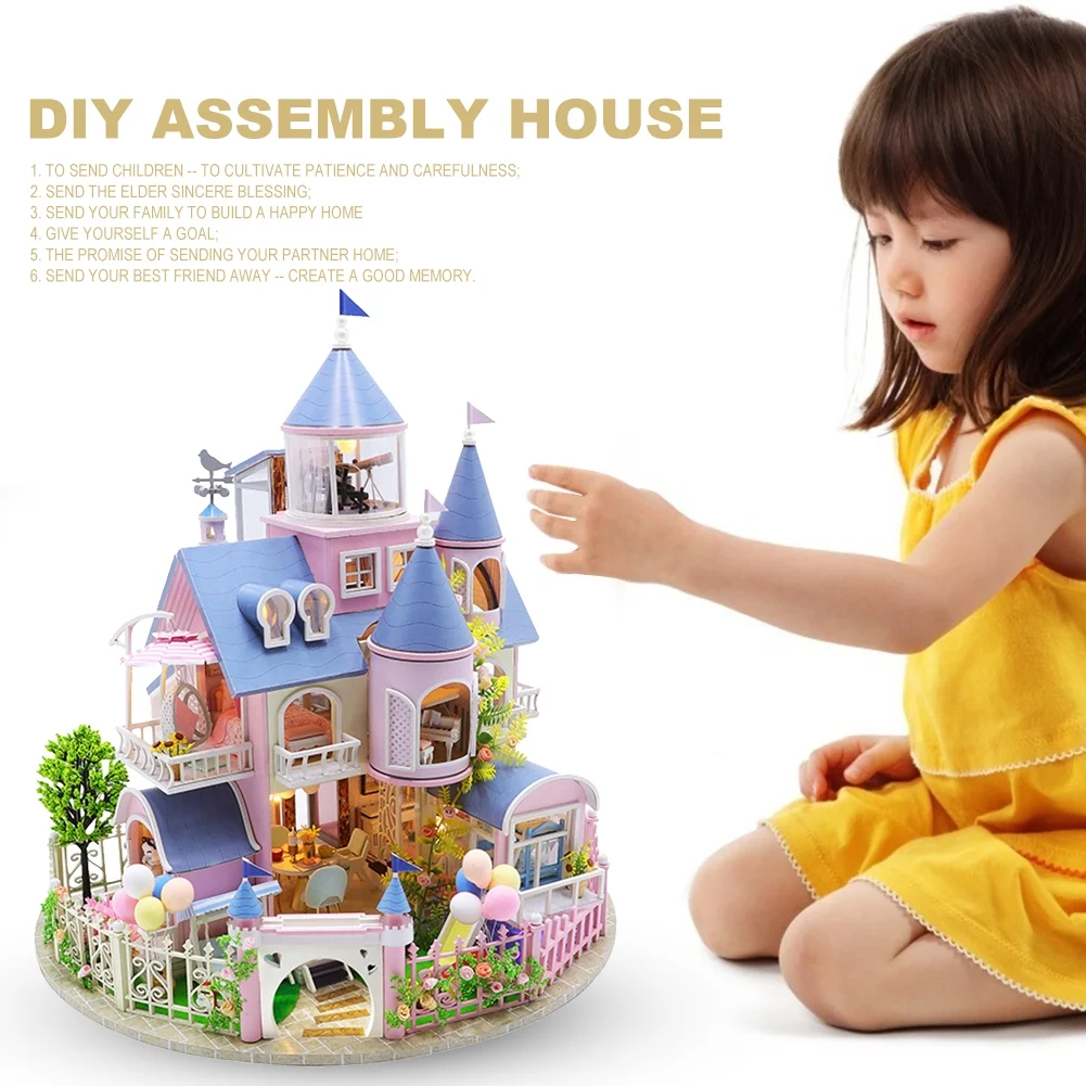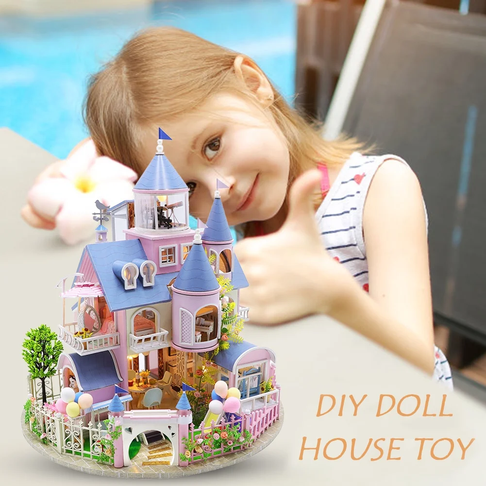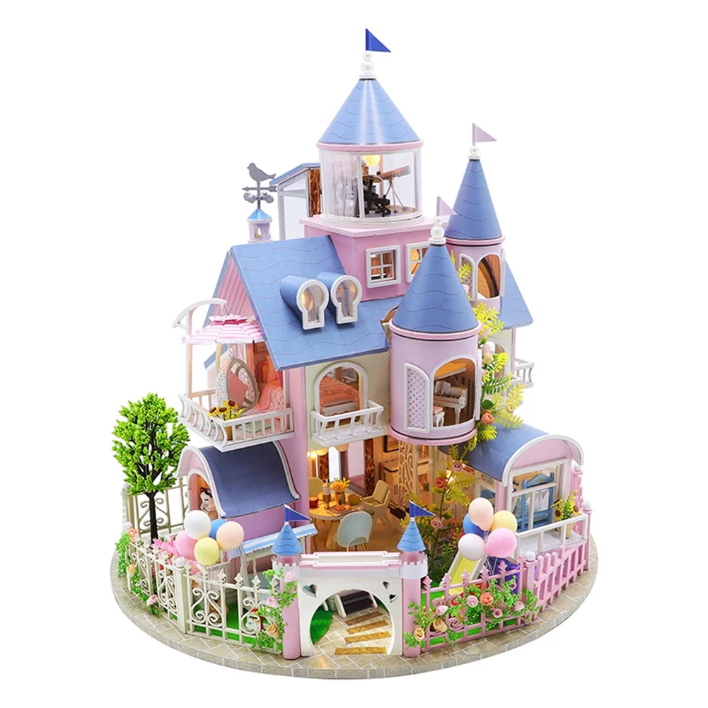 DIY Doll House Furniture Kit Miniature 3D Wooden LED Dollhouse Castle Casa