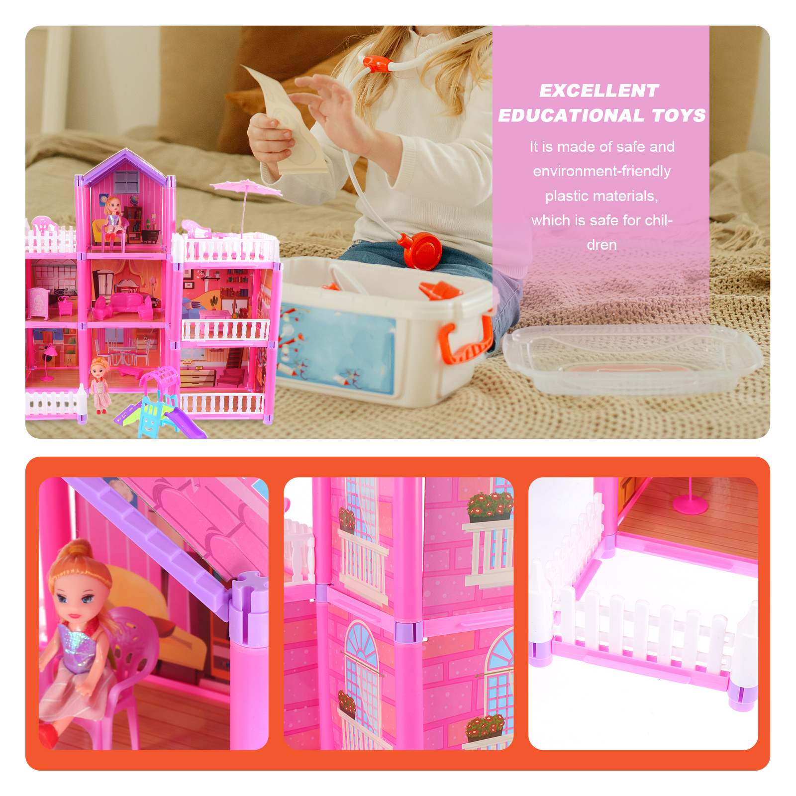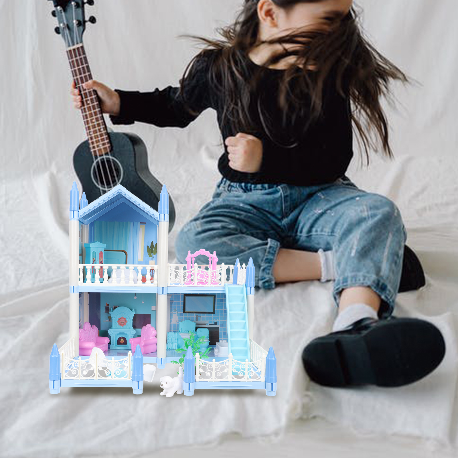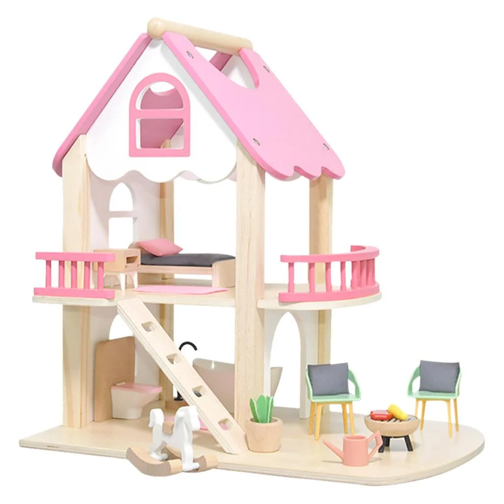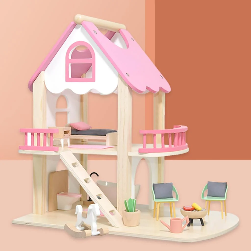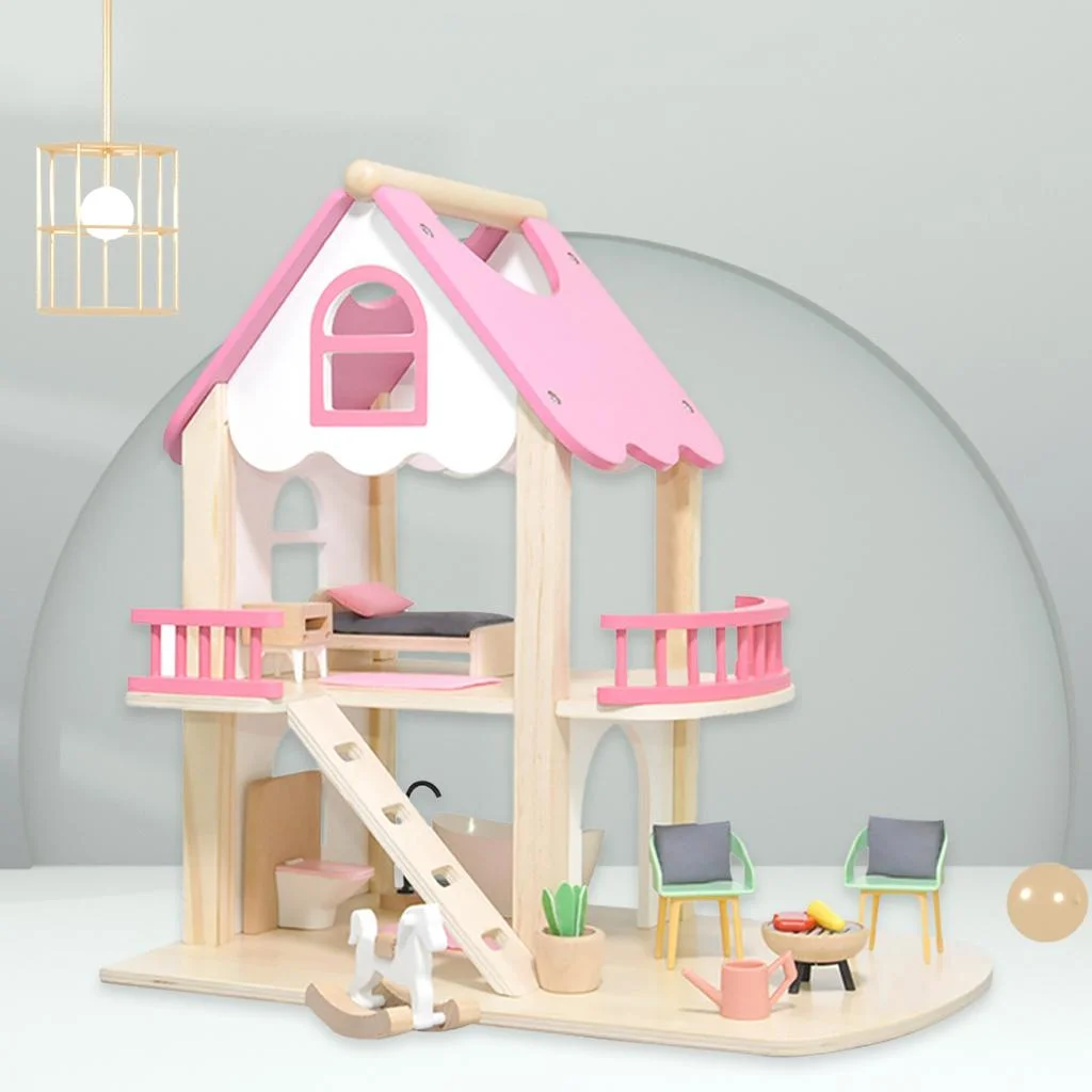 DIY Doll House Furniture Kit Miniature 3D Wooden LED Dollhouse Castle Casa