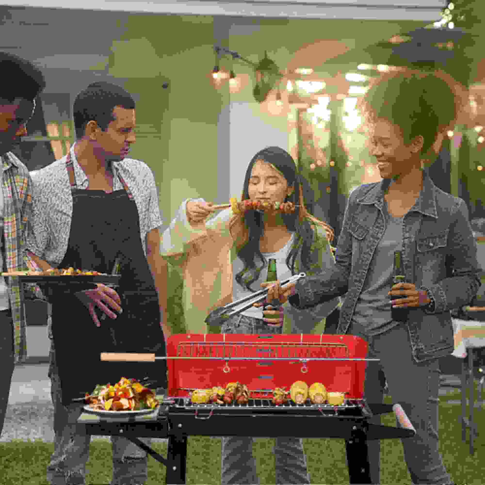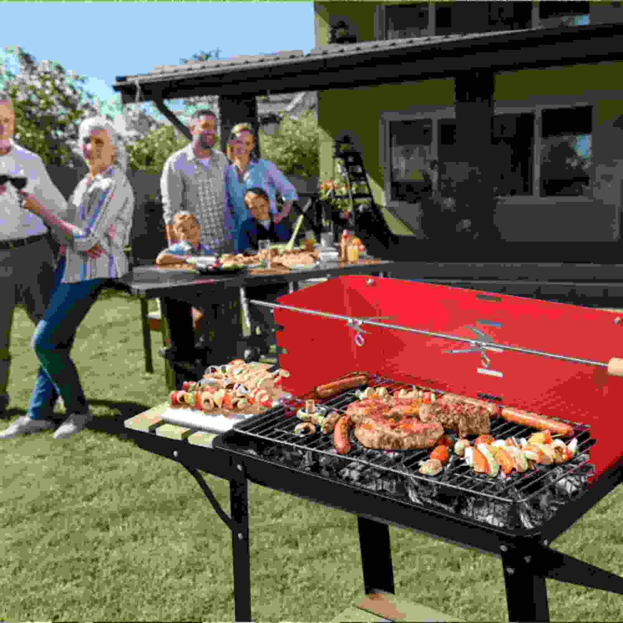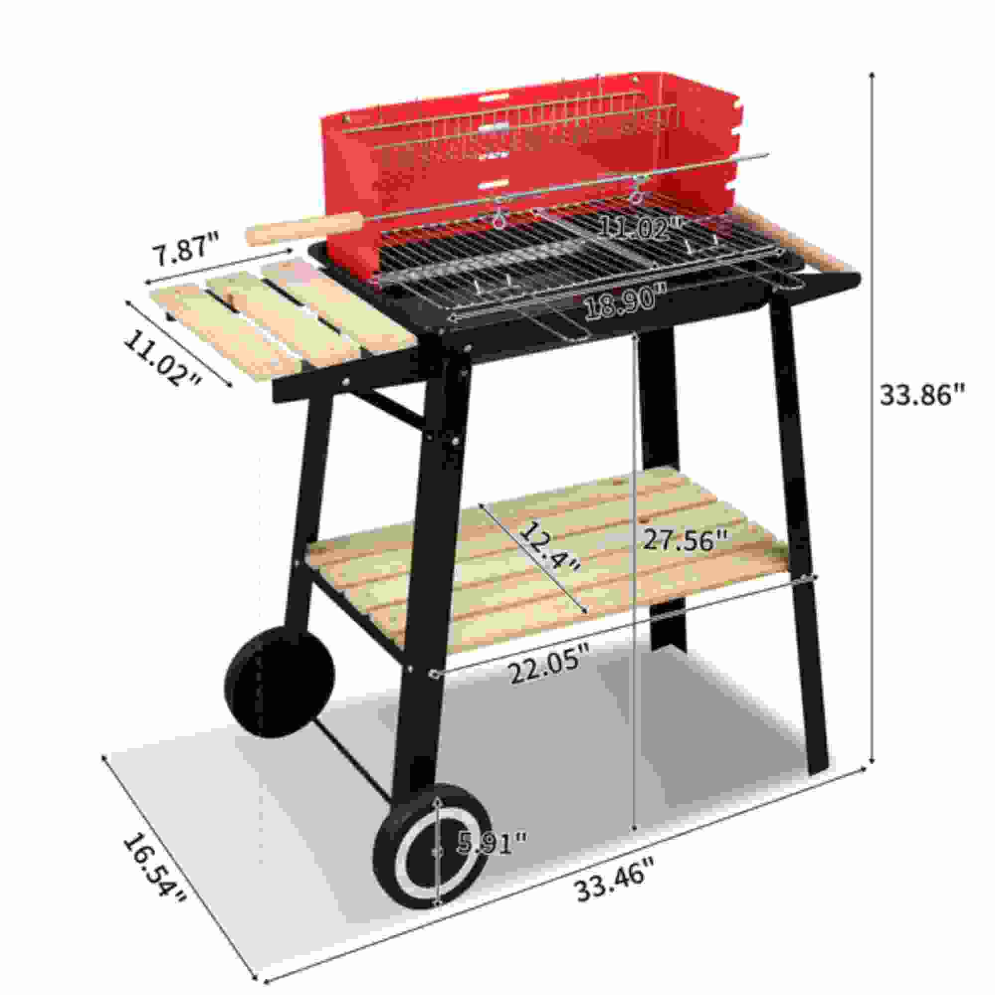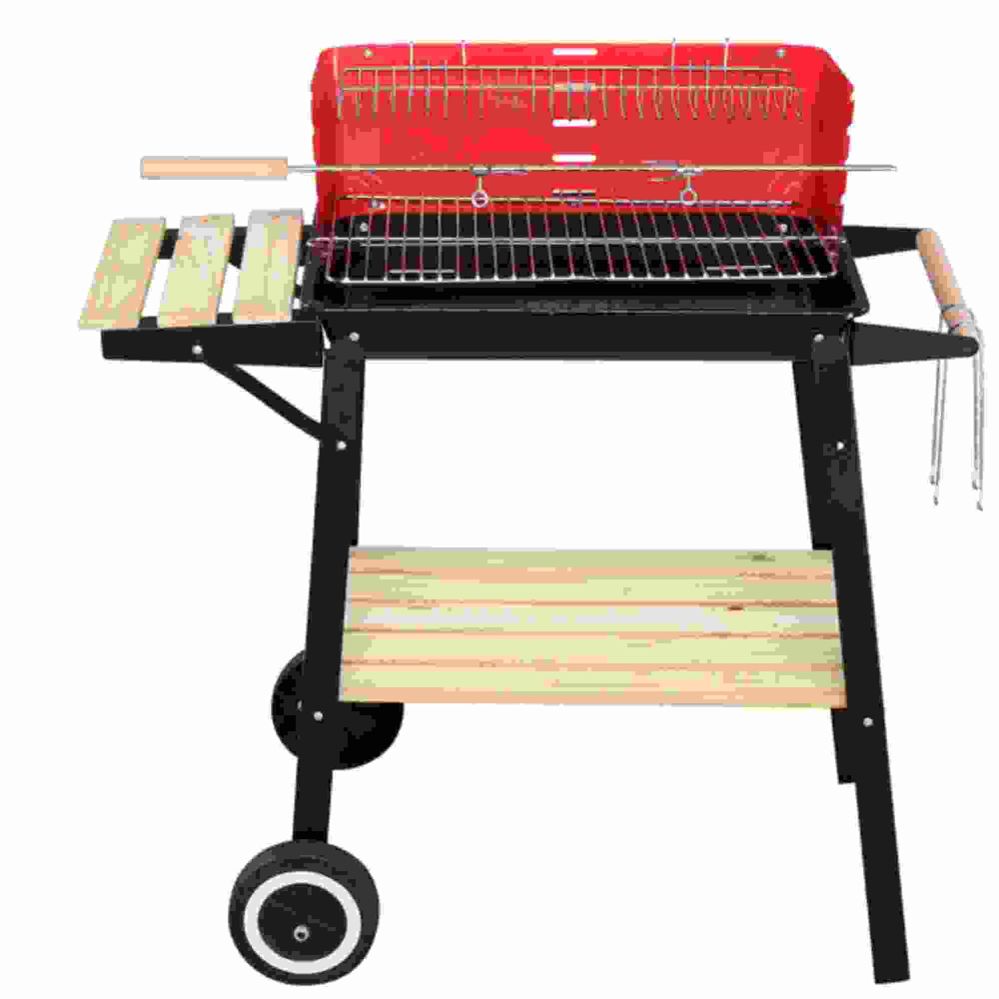 Dinling 85*42*86cm Four Legs With Wheels Square Enamel Charcoal Oven Black Red