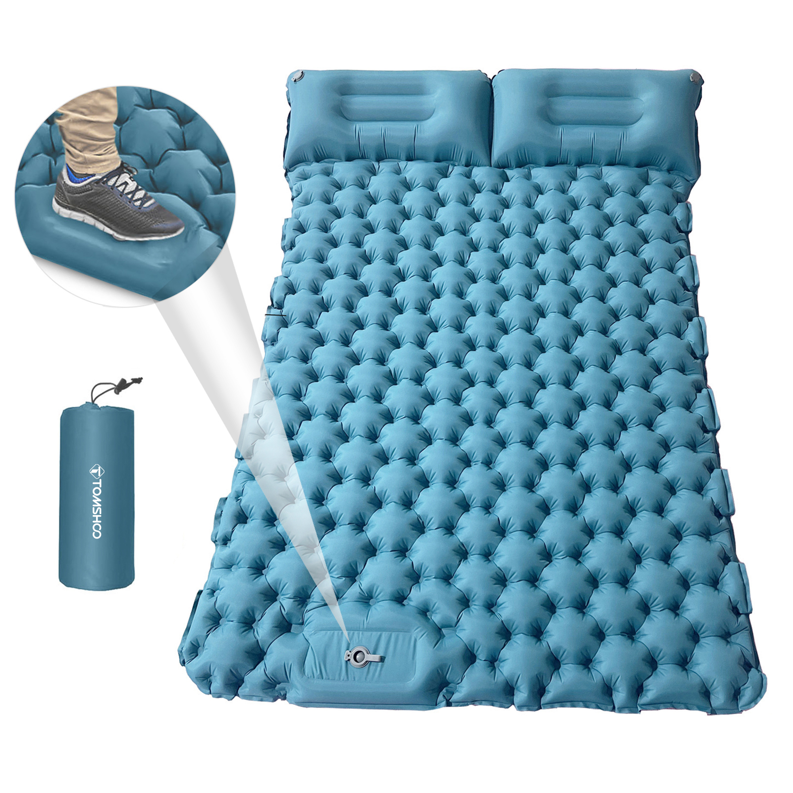 OWSOO 2 Person Camping Mat with Air Pillow Portable Air Mattress Waterproof Backpacking Sleeping Pad