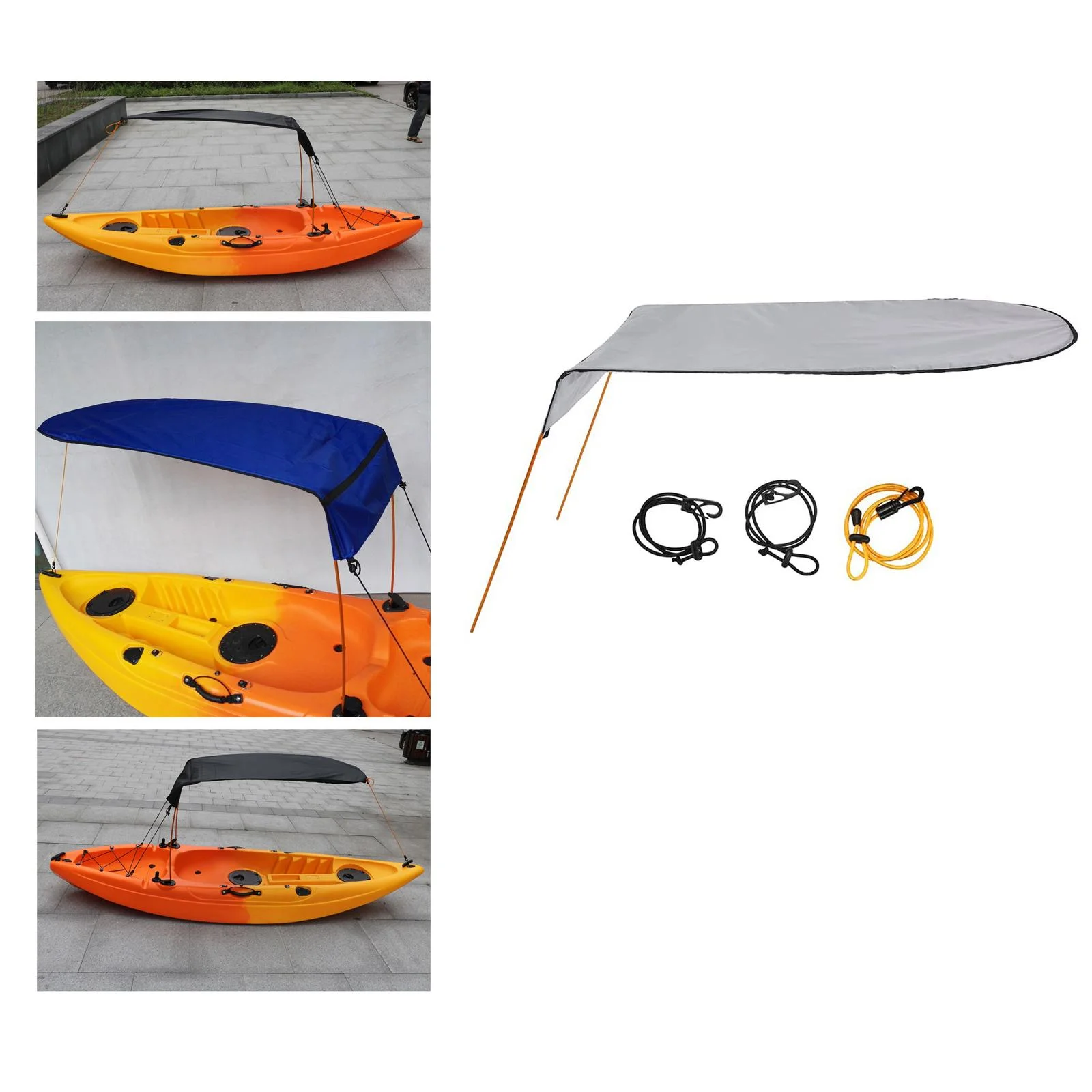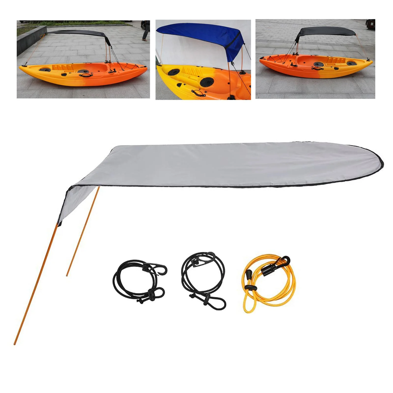 Canoe Sun Shade Canopy for Single Person Waterproof Oxford Cloth Kayak Boat Sun Gray