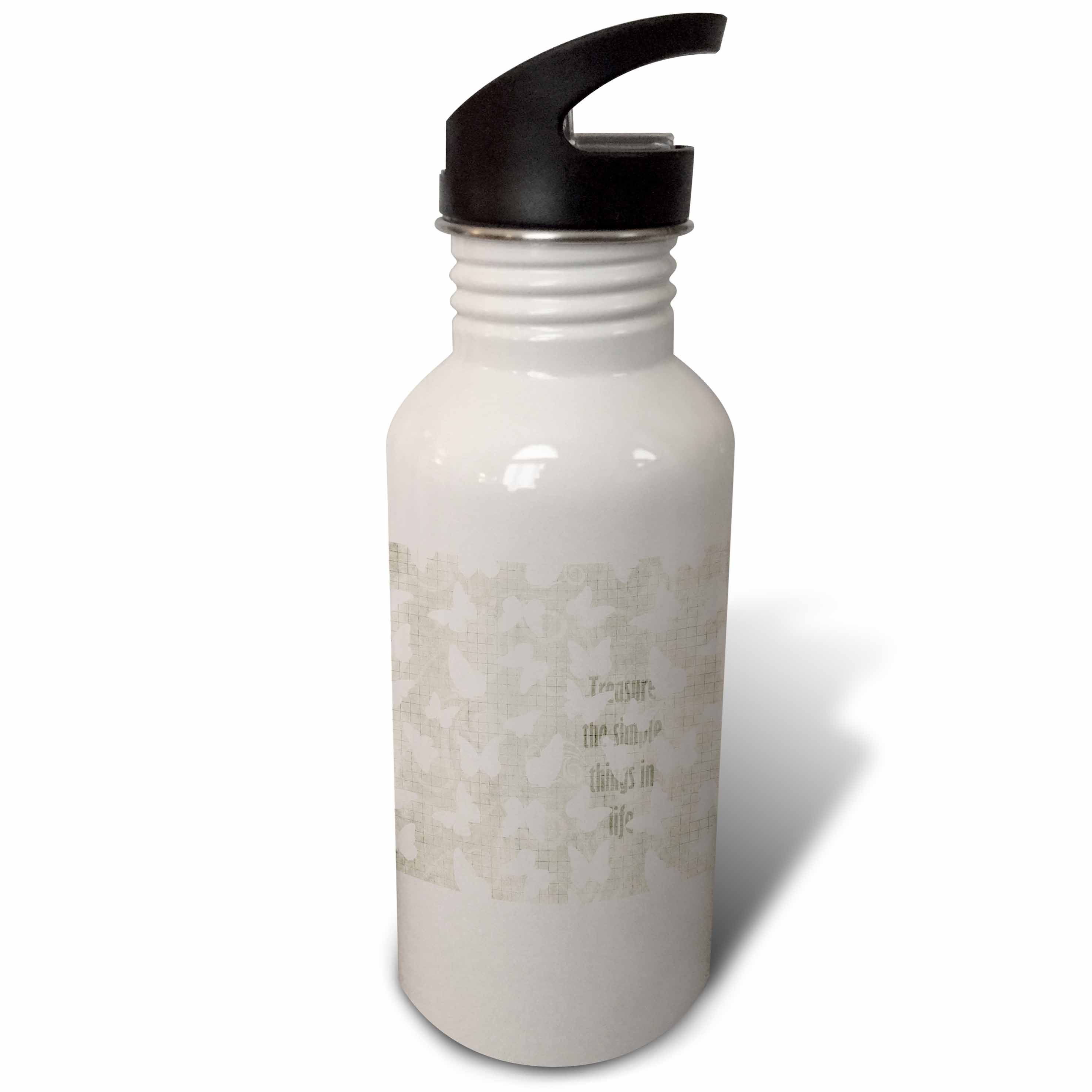 3dRose Elegant White Butterflies Treasure the Simple Things Inspired Art, Sports Water Bottle, 21oz