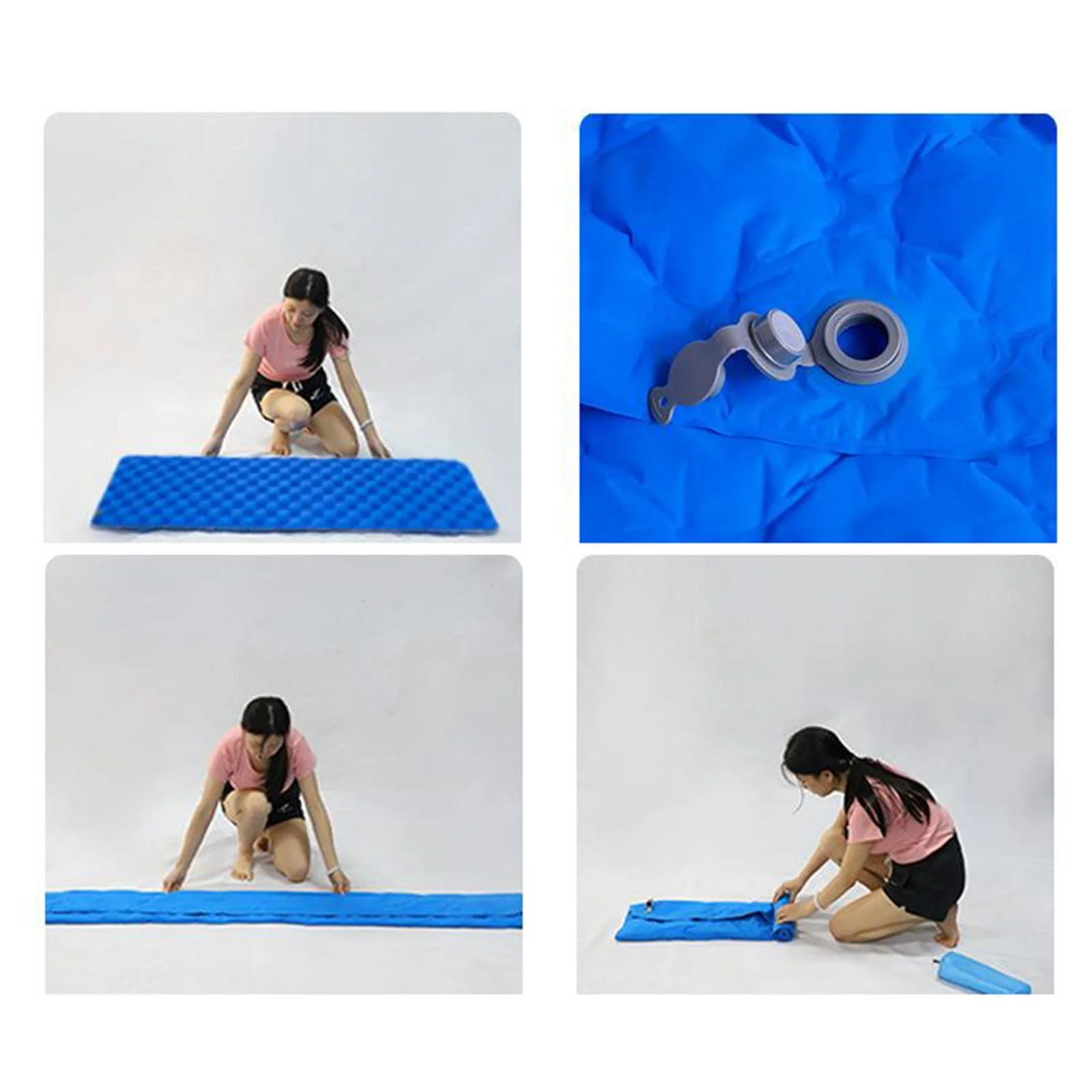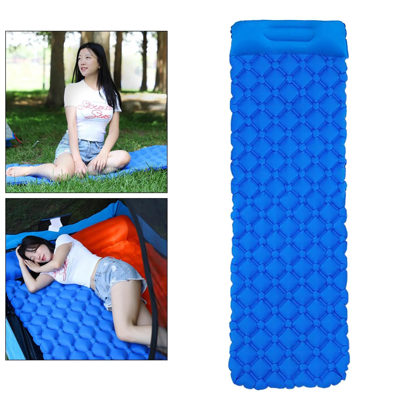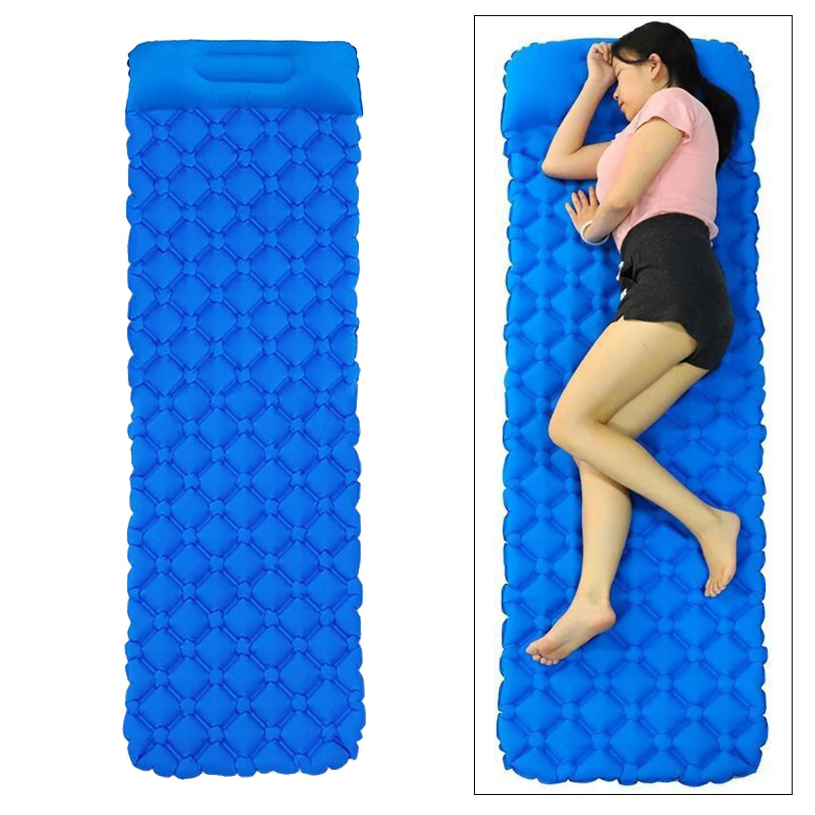 Inflatable Sleeping Mat-Waterproof Camping Mattress,Portable & Folding Inflating - Blue(with Pillow)