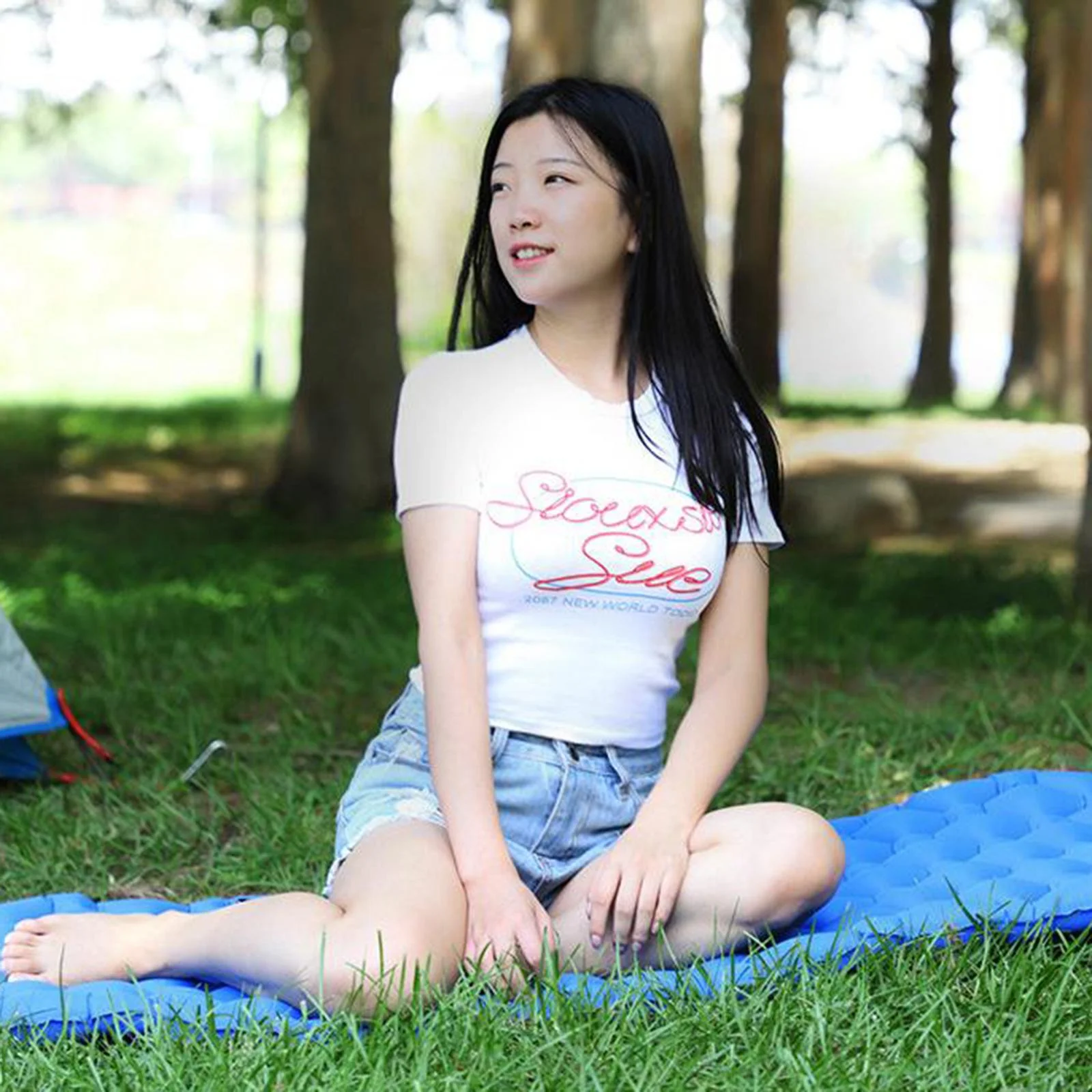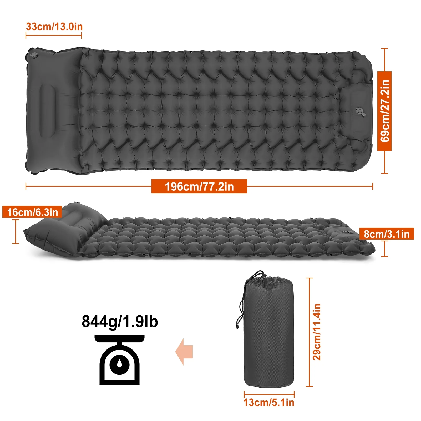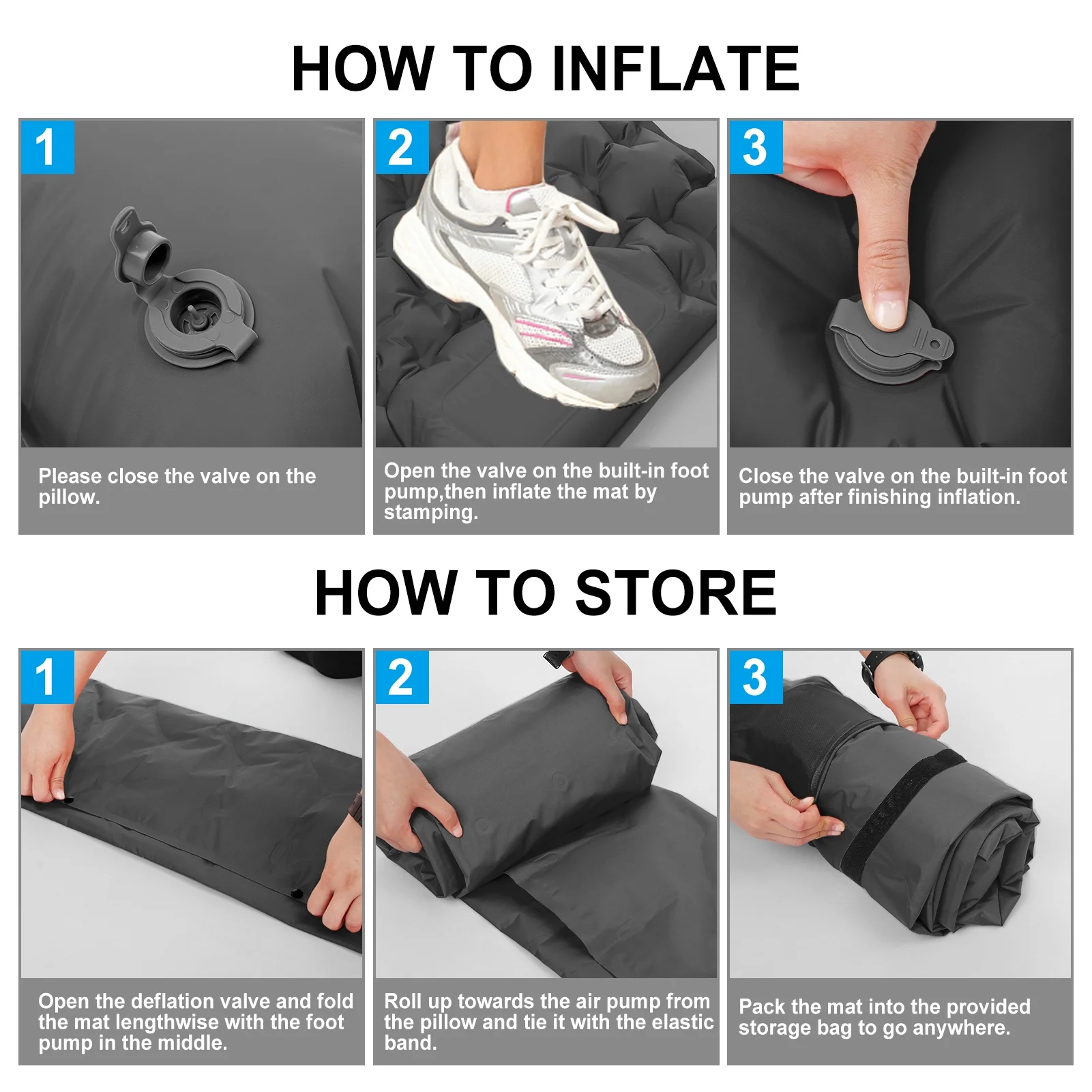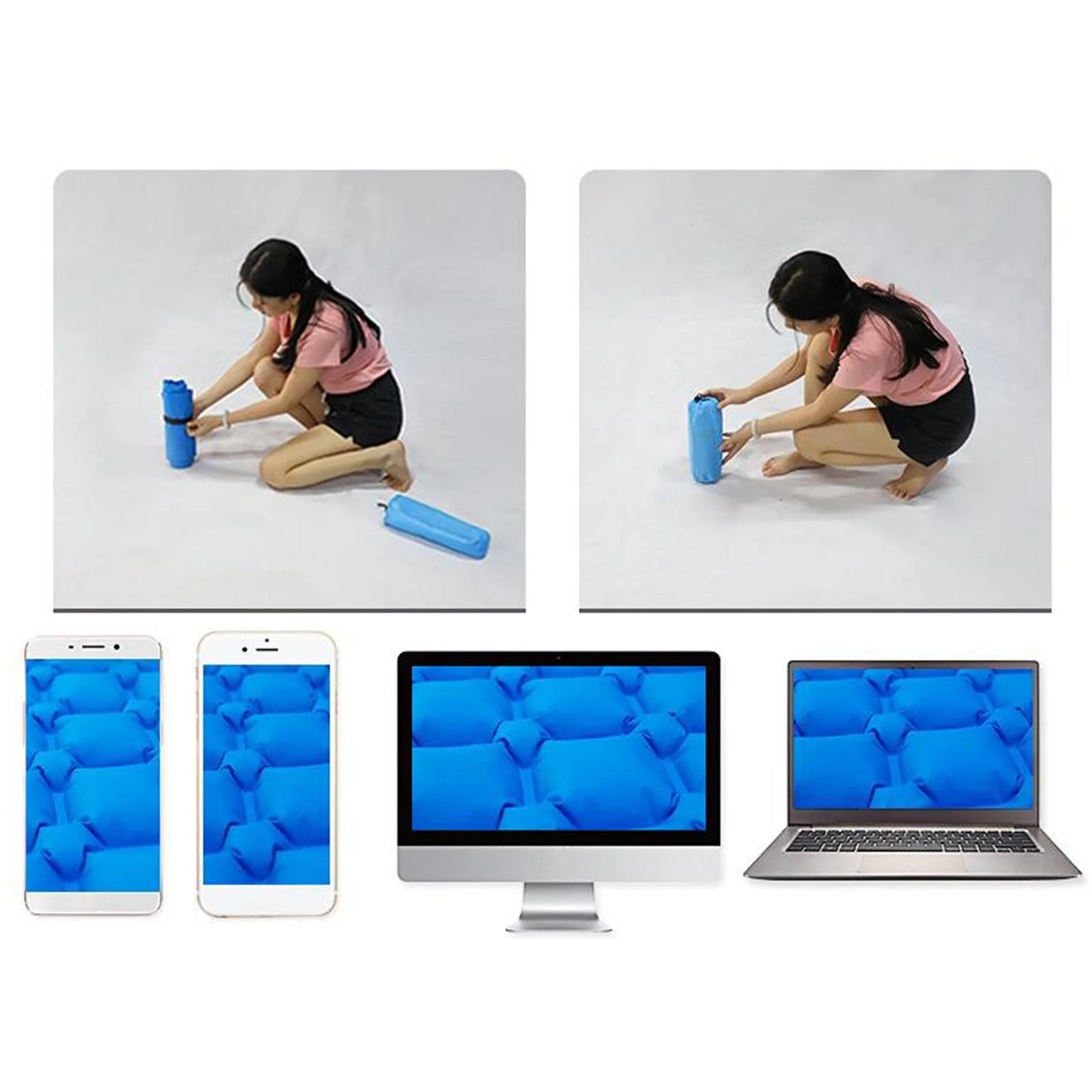 Inflatable Sleeping Mat-Waterproof Camping Mattress,Portable & Folding Inflating - Blue(with Pillow)