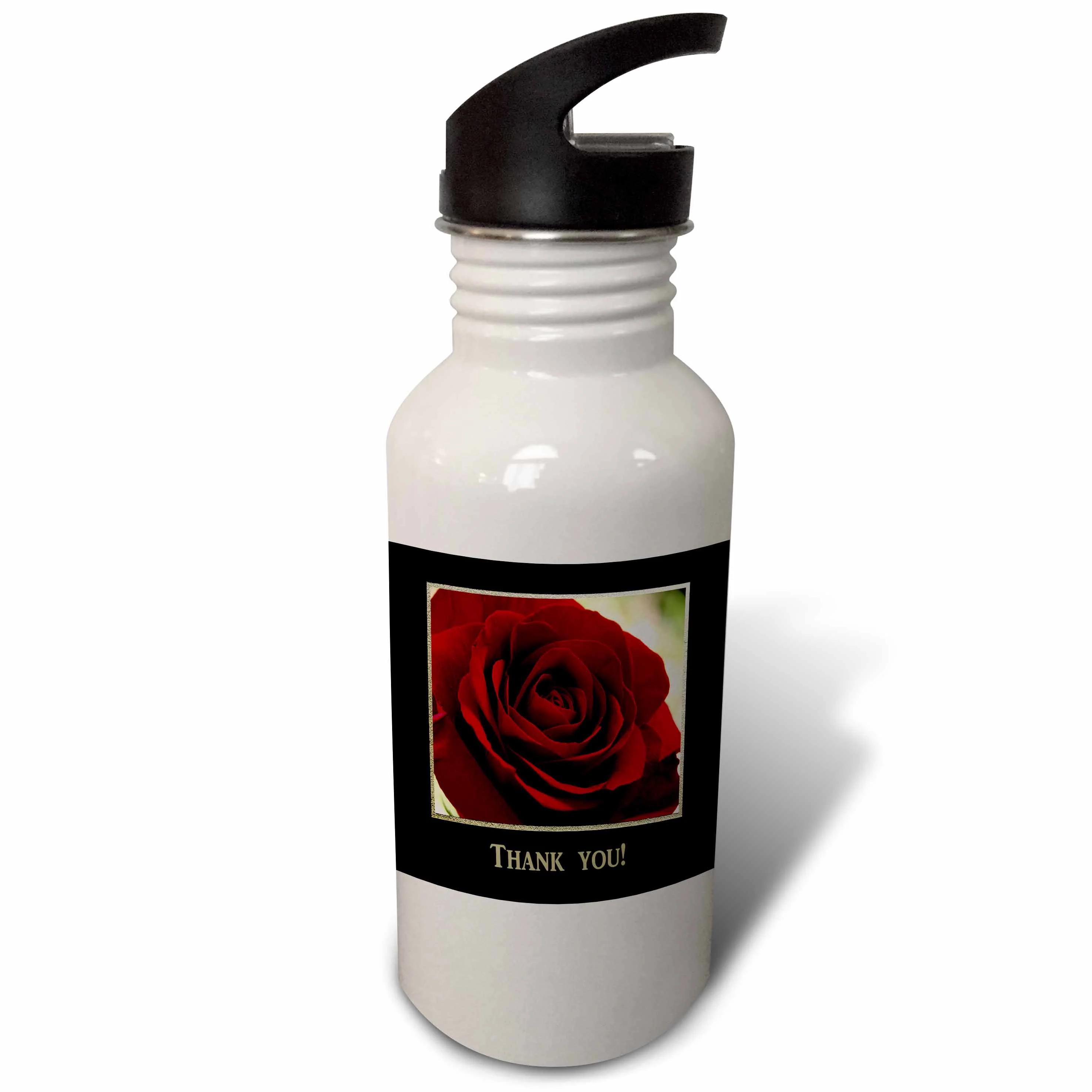 Red Rose Frame in Gold and Black Thank you 21 oz Sports Water Bottle wb-77284-1