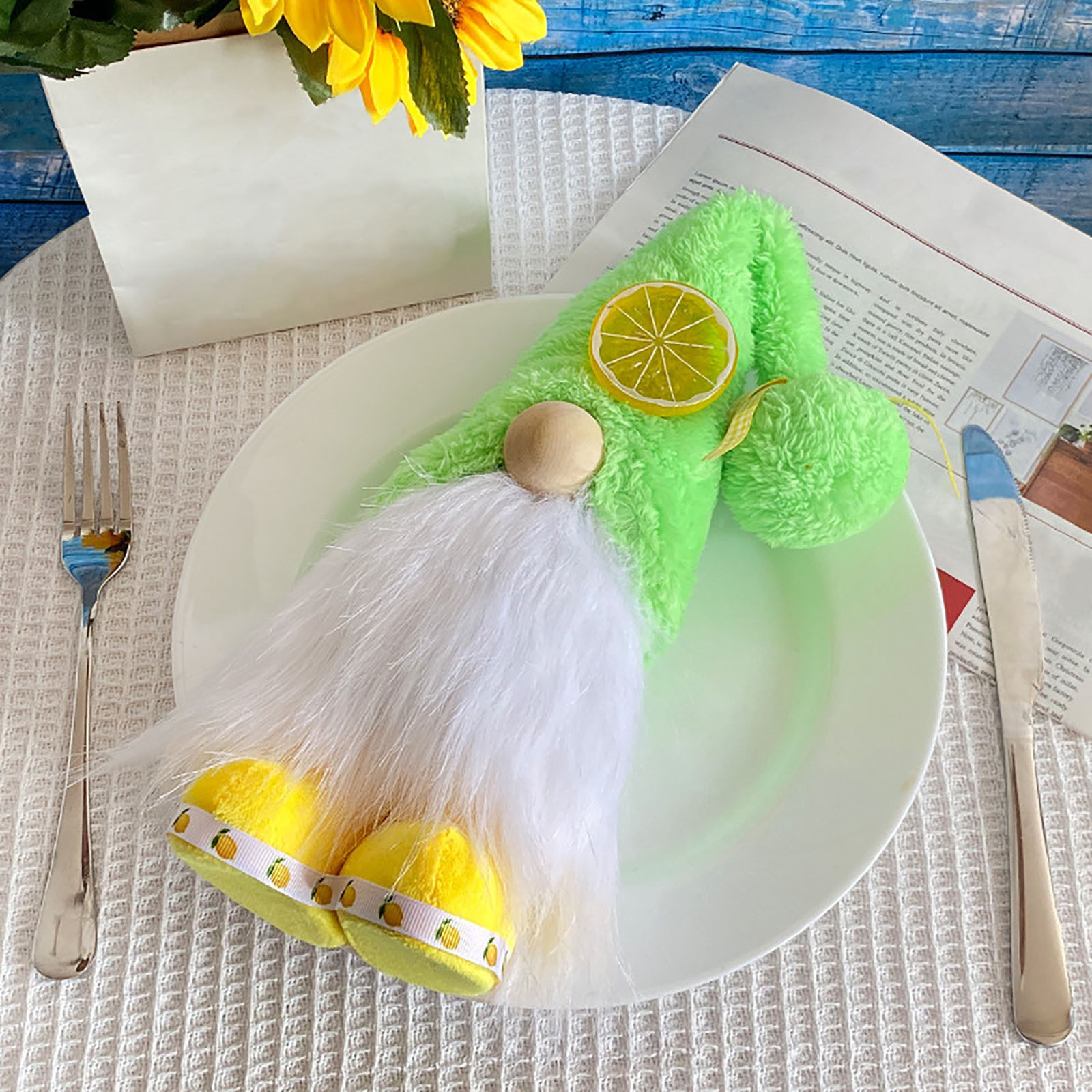 mynkyll Room Decoration Summer Lemon Doll High Hat Plush Dwarf Doll Old Man Standing Desktop Ornament