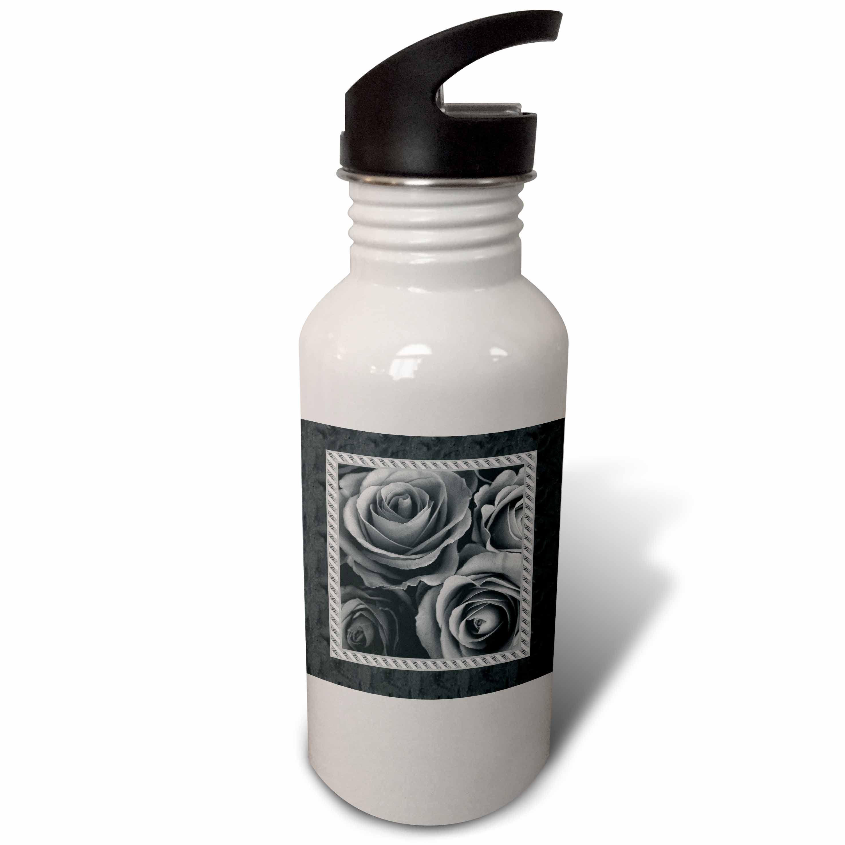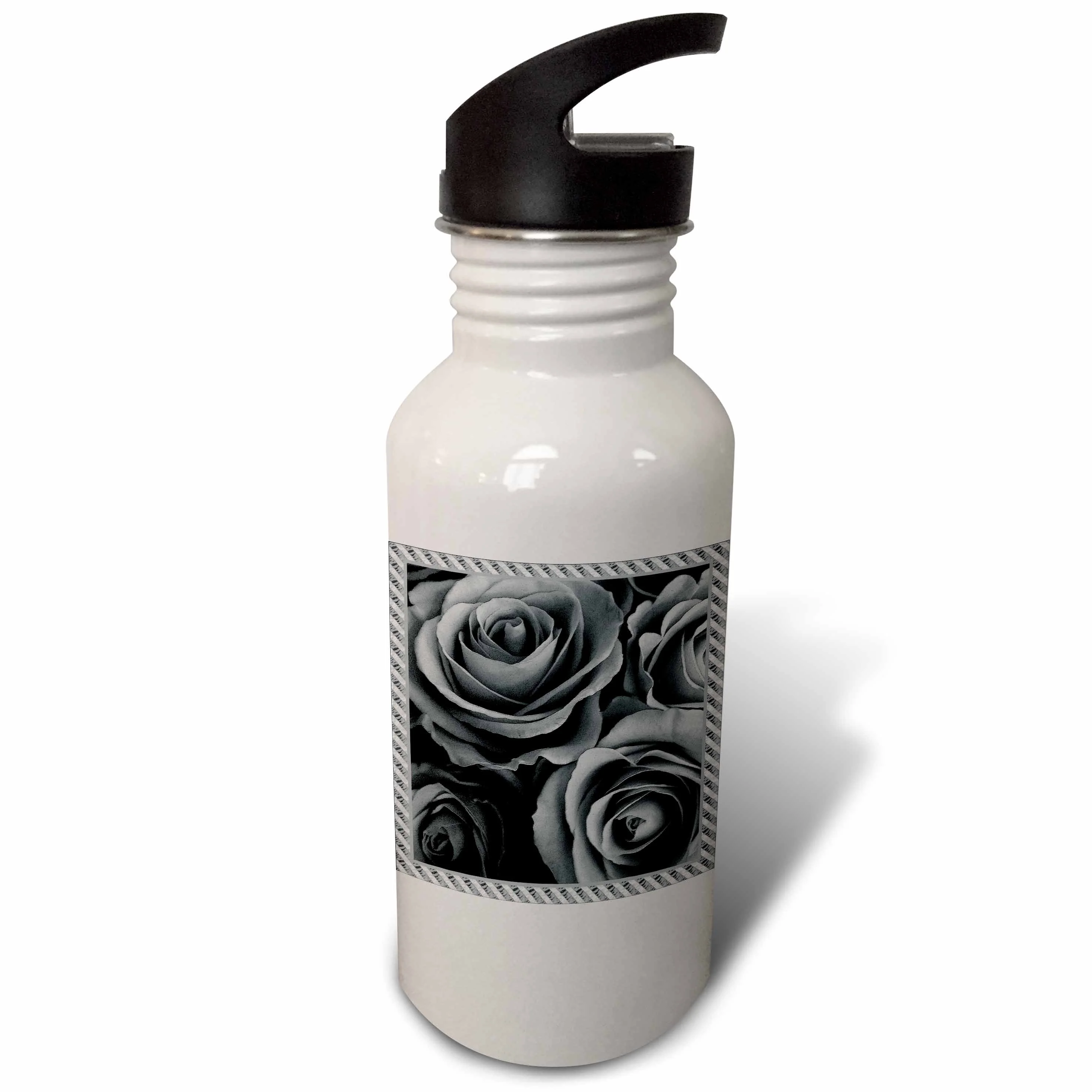 Pewter gray roses surrounded by a striped and marbelized frame 21 oz Sports Water Bottle wb-29956-1