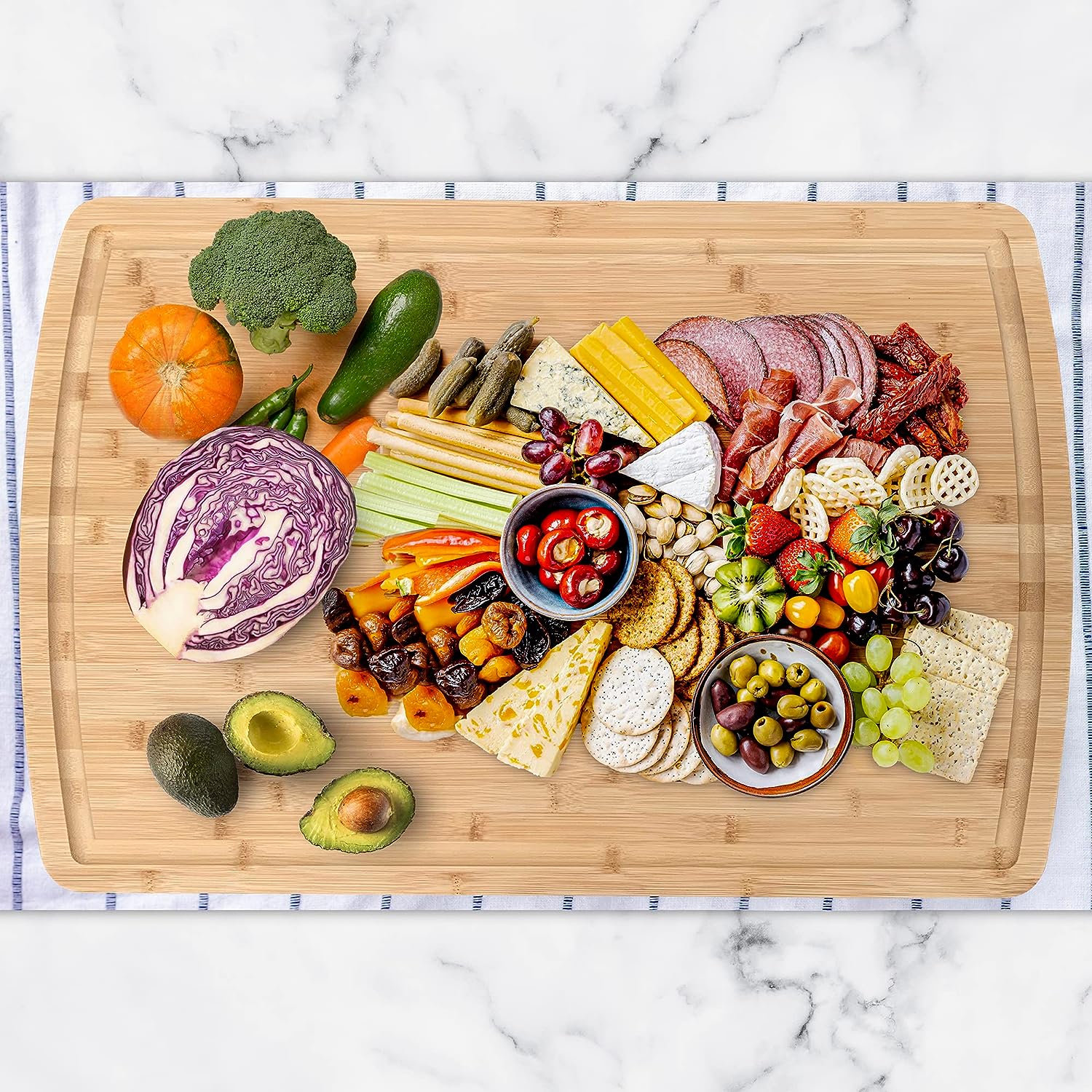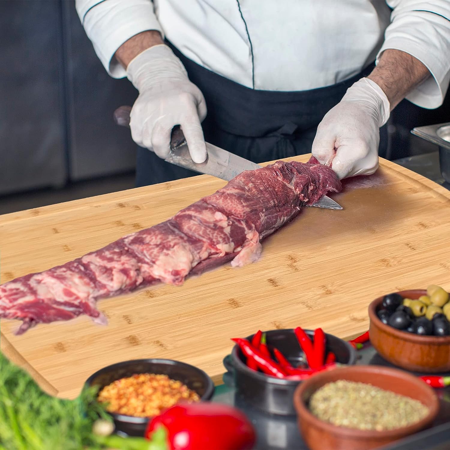 Kenmore Kenosha 24 x 16 Inch Kitchen Cutting Board w/ Juice Groove, Acacia Wood