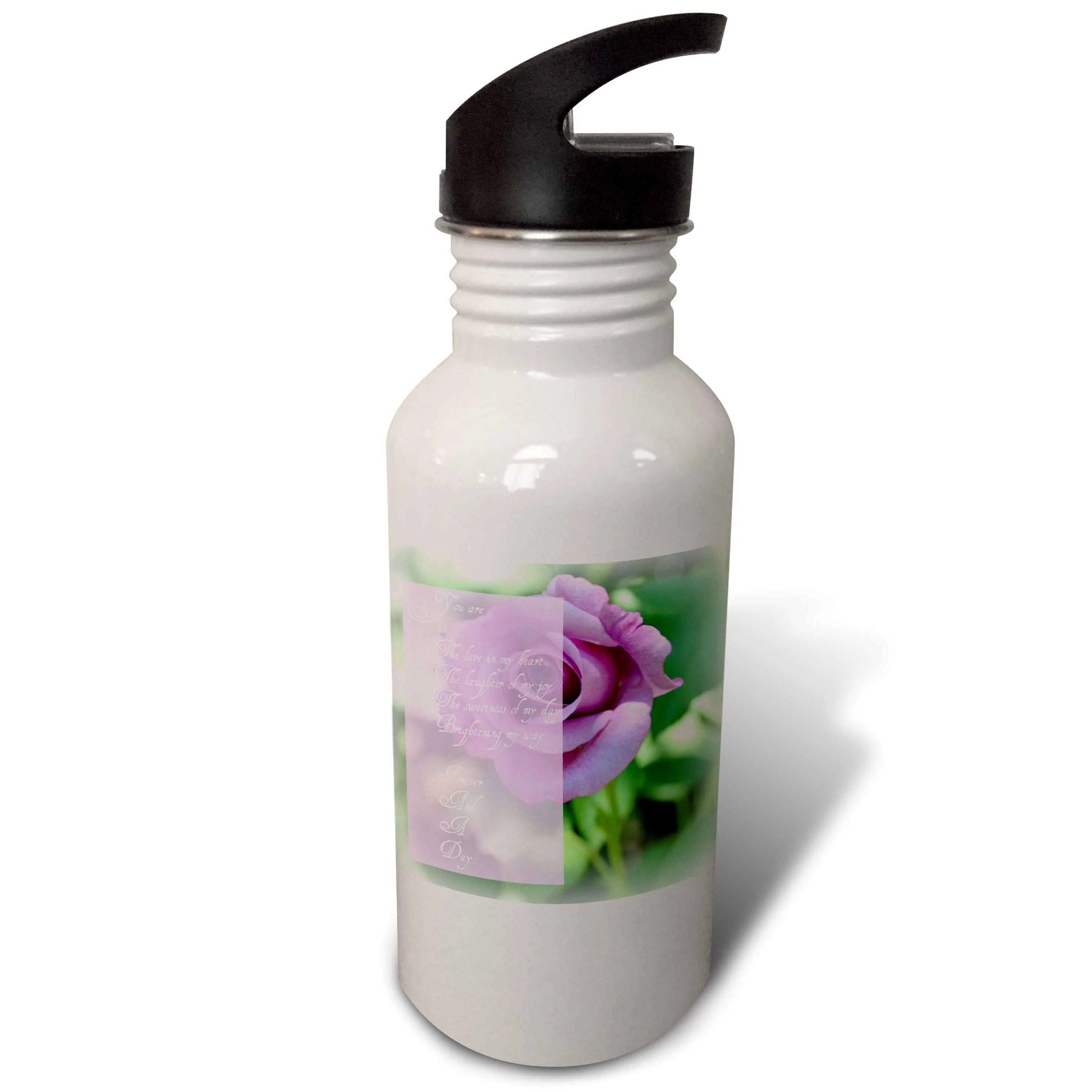 Forever and A Day Rose Poem White Letters Flowers Romance 21 oz Sports Water Bottle wb-32555-1