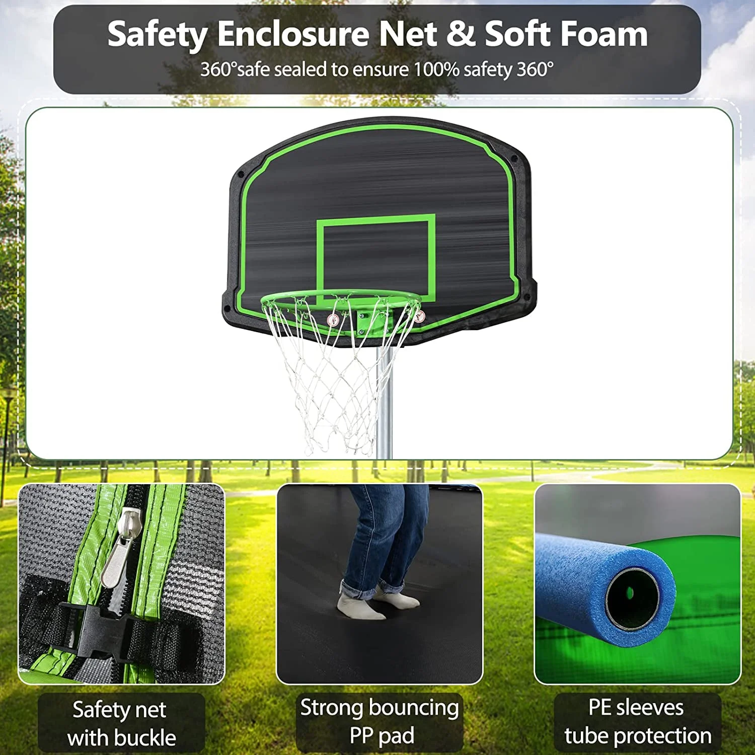 Sumdeal 12FT Trampoline with Basketball Board and Swing Stand for kids fun