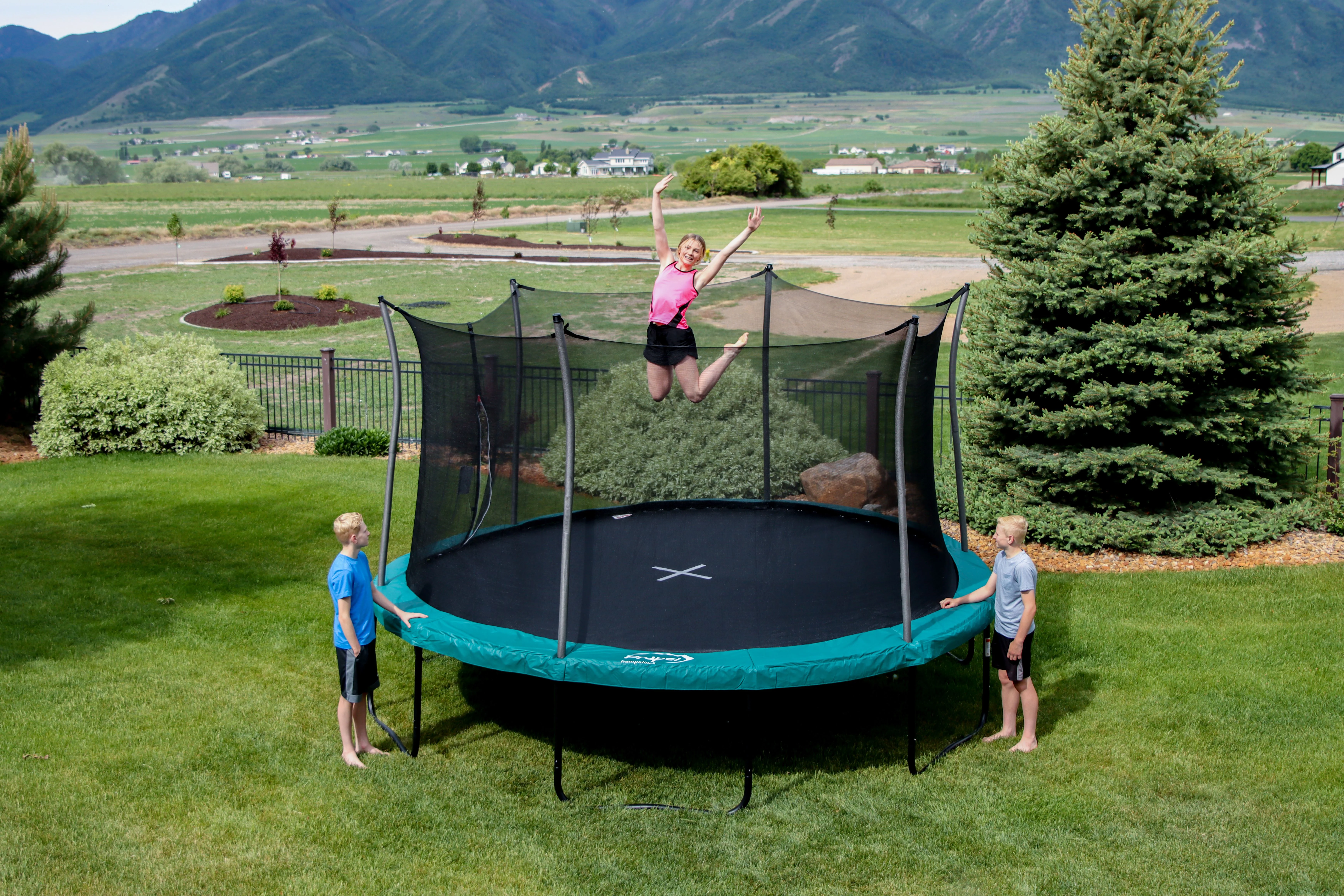 Propel Trampolines 14' Round Trampoline with Safety Enclosure and Basketball Hoop