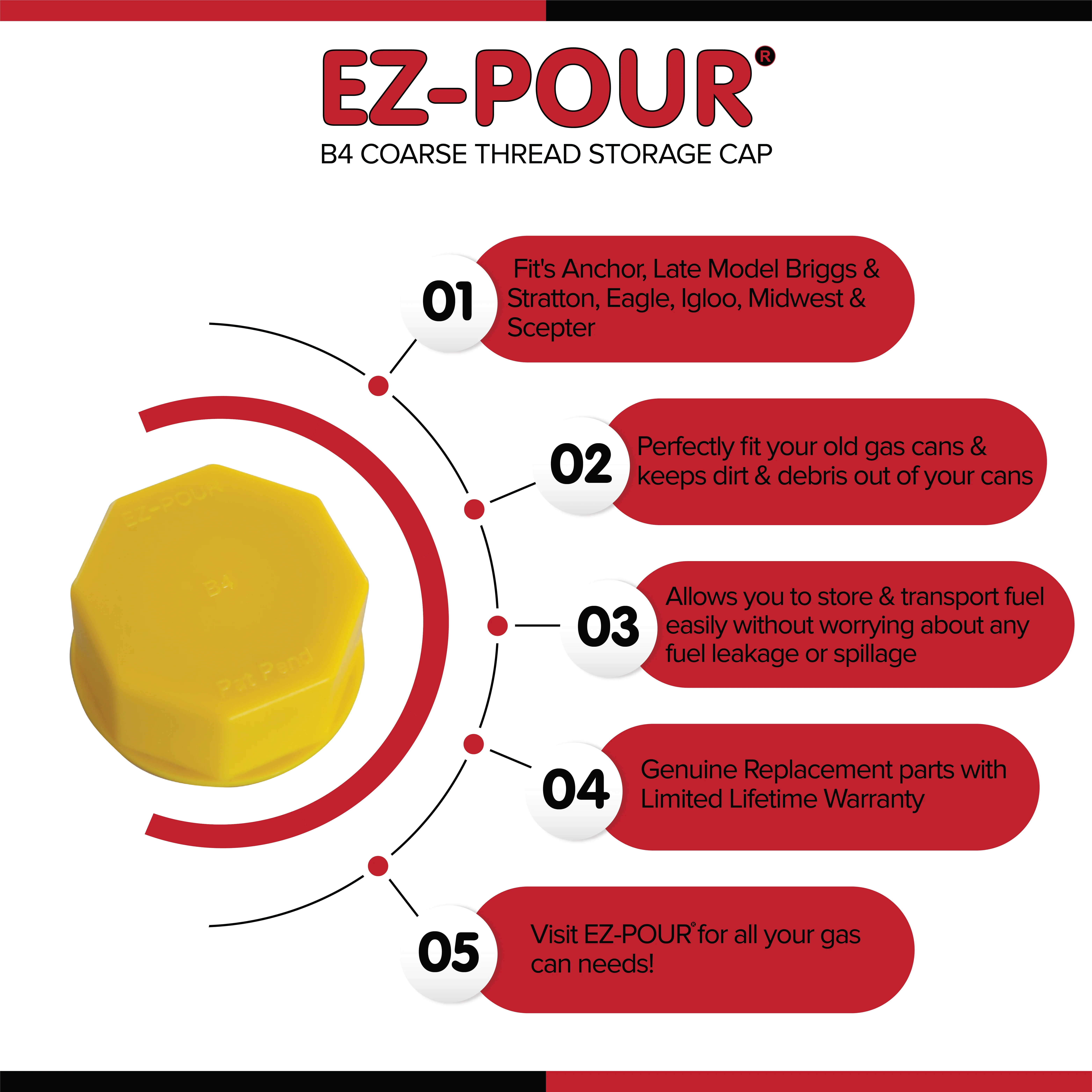 Ez-POUR Yellow Coarse Thread Solid Base Cap for Storage gas Cans (Pack of 2)