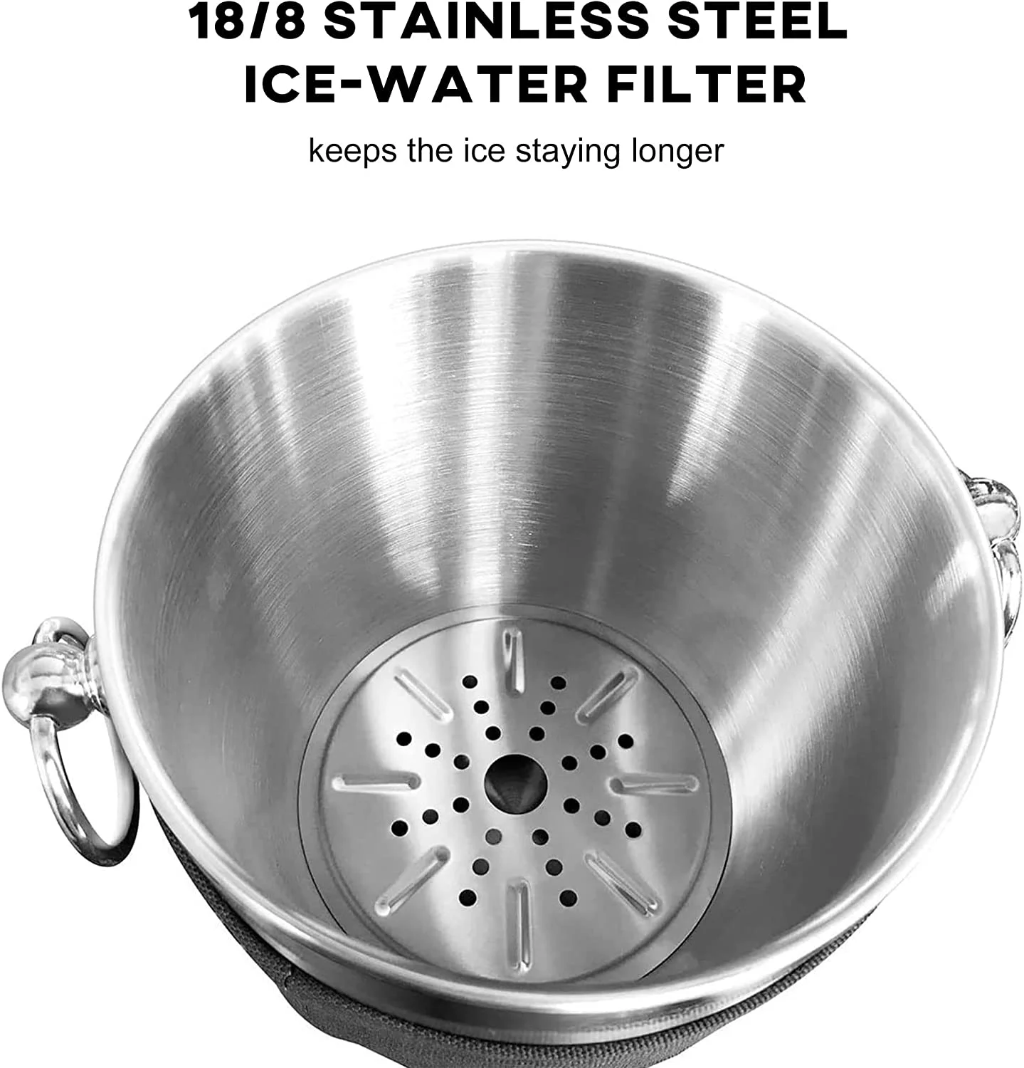 Home Shark 2.8 L Double Walled Stainless Steel Insulated Ice Bucket with Handmade Nylon Holder, Black