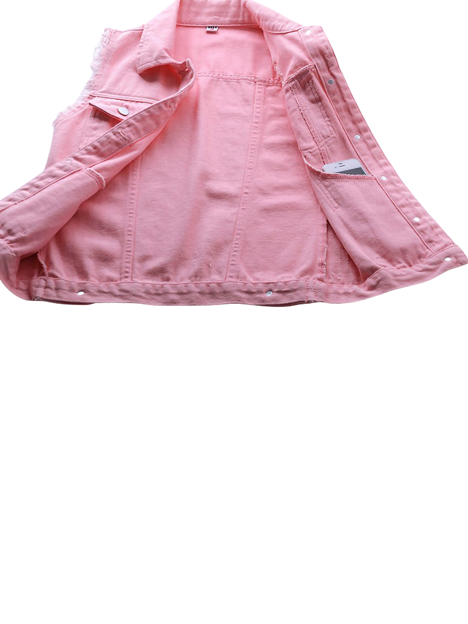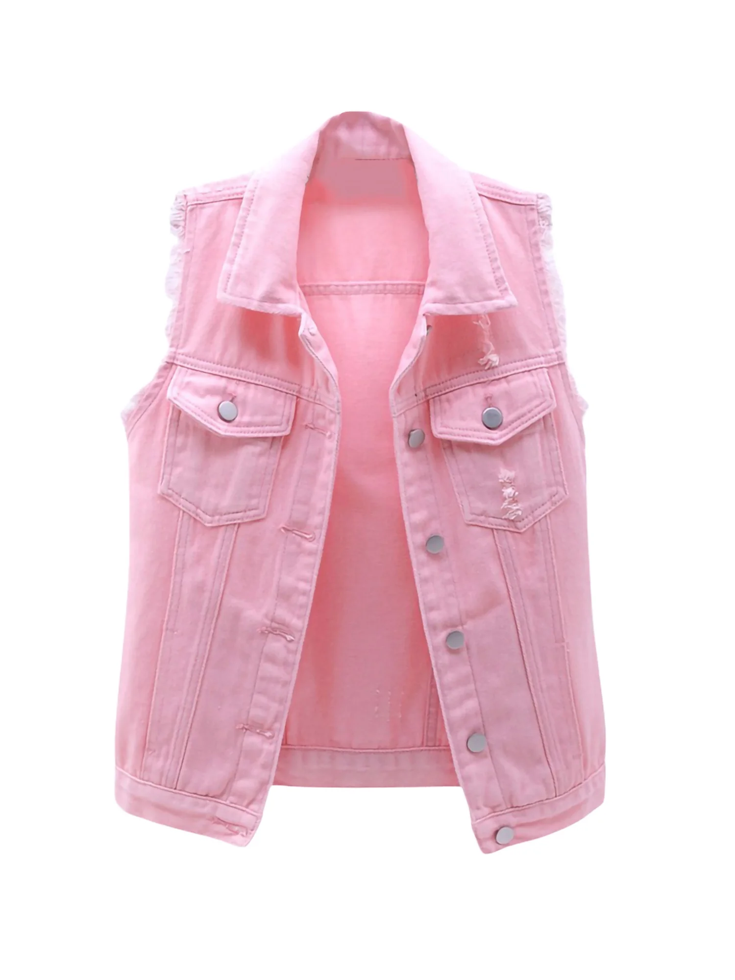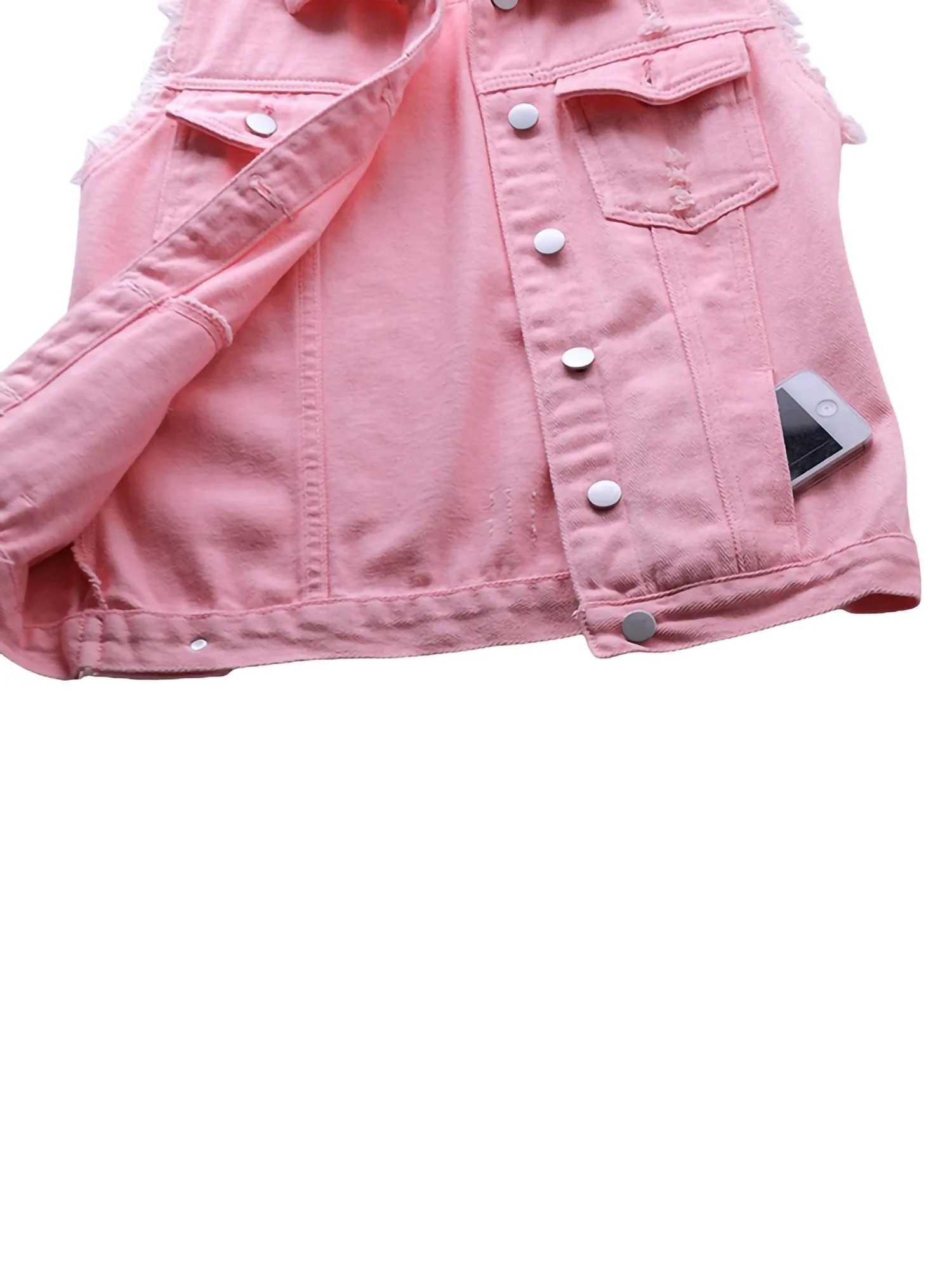 AMILIEe Women Plus Size Sleeveless Denim Waistcoat Ripped Turn Down Collar Jean Jacket Vest