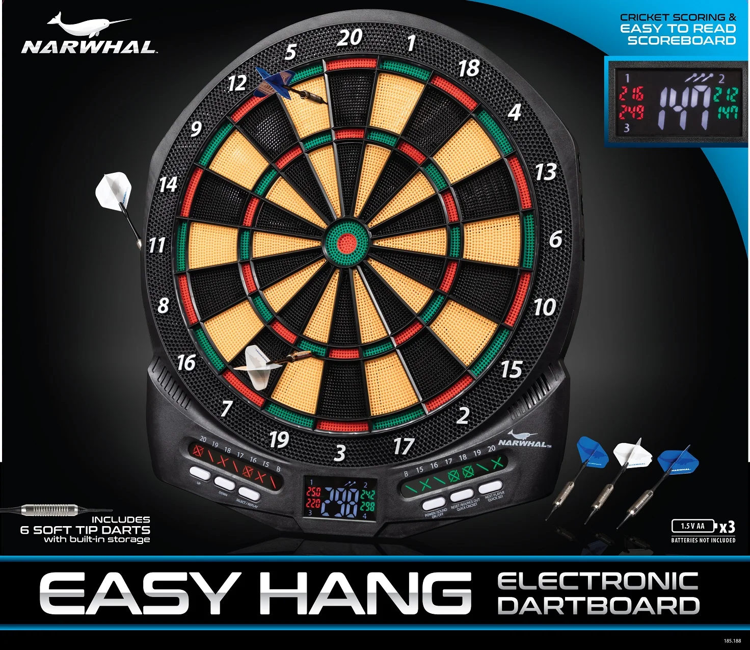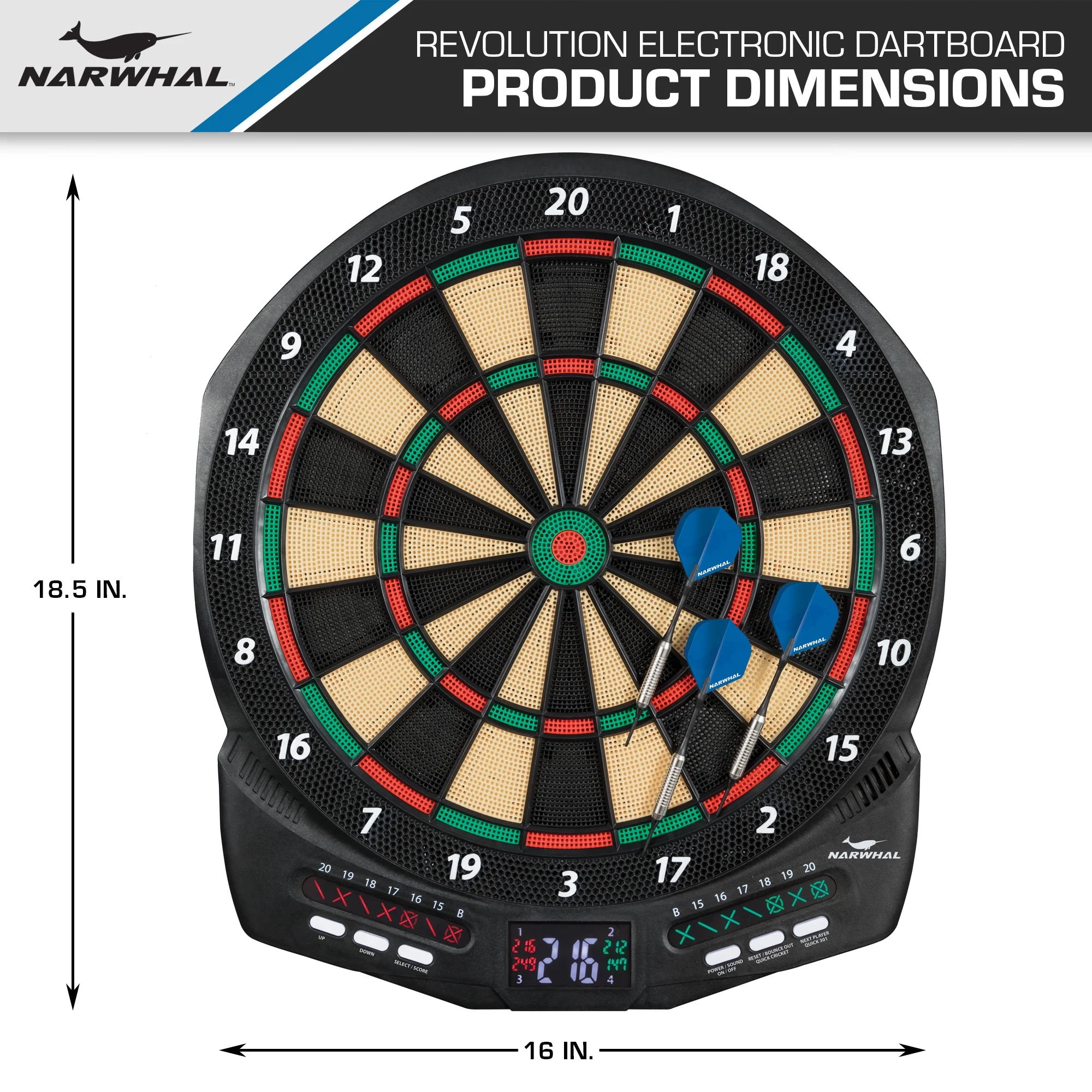 Narwhal Revolution Electronic Dartboard with 30 Games, Cricket Scoring and 6 Plastic Tip Darts