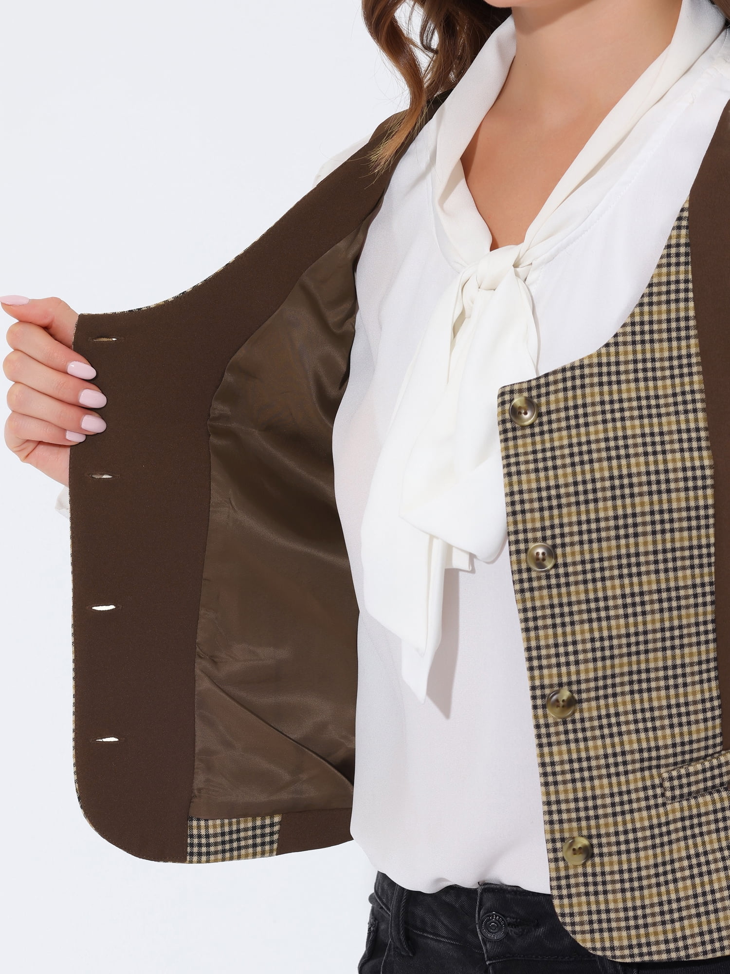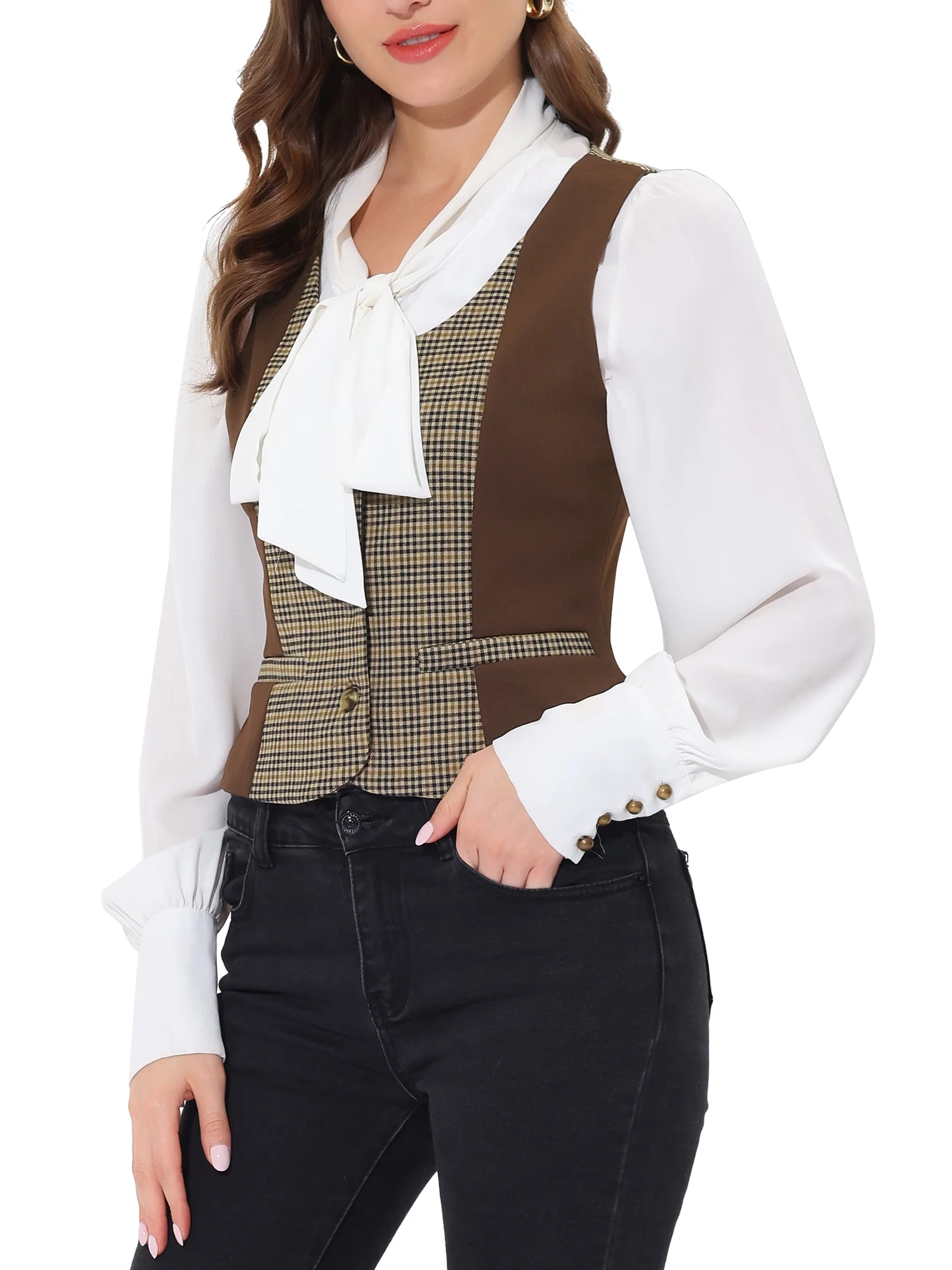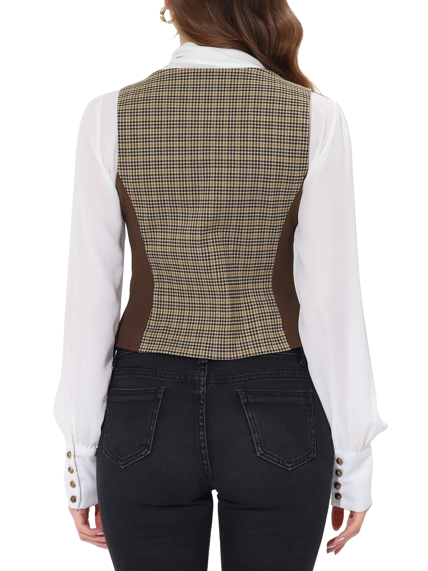 Allegra K Women's Halloween Costume Vintage Waistcoat Vest Plaid Button Down Work Dressy Vests