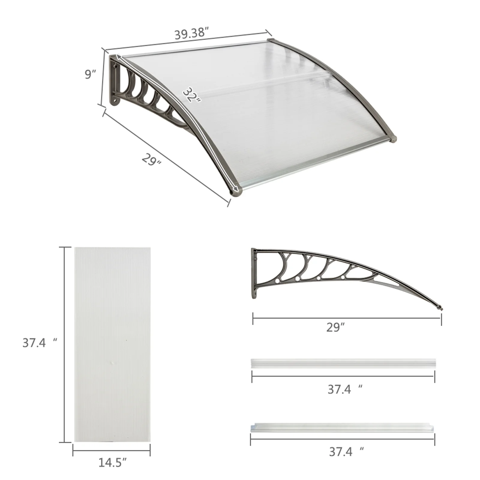Eaves Canopy, Awning Door & Window Rain Cover with White & Gray Bracket