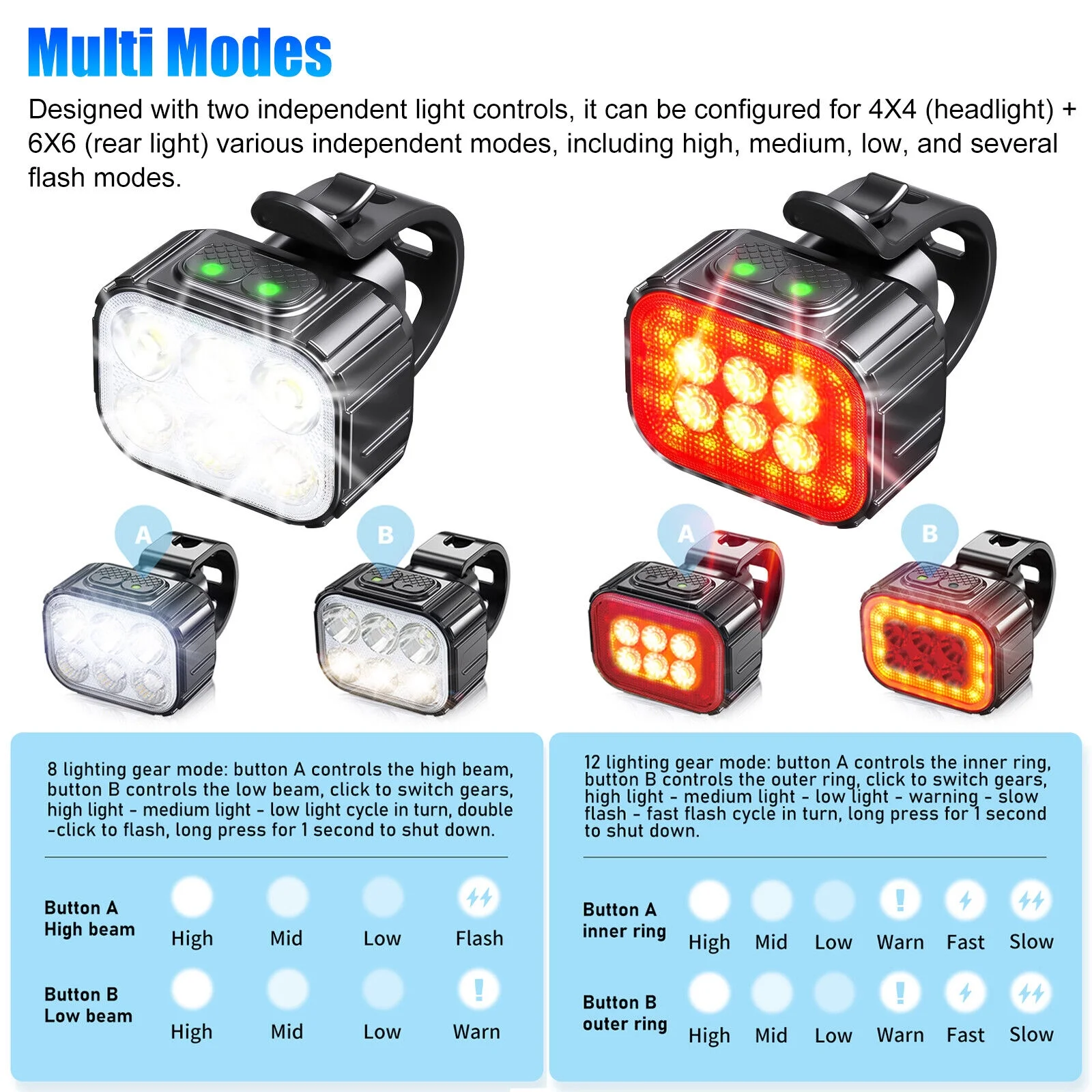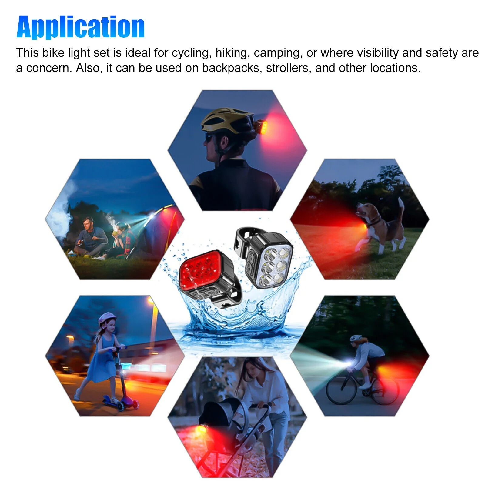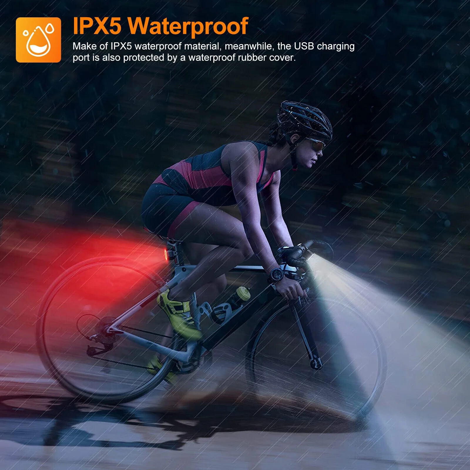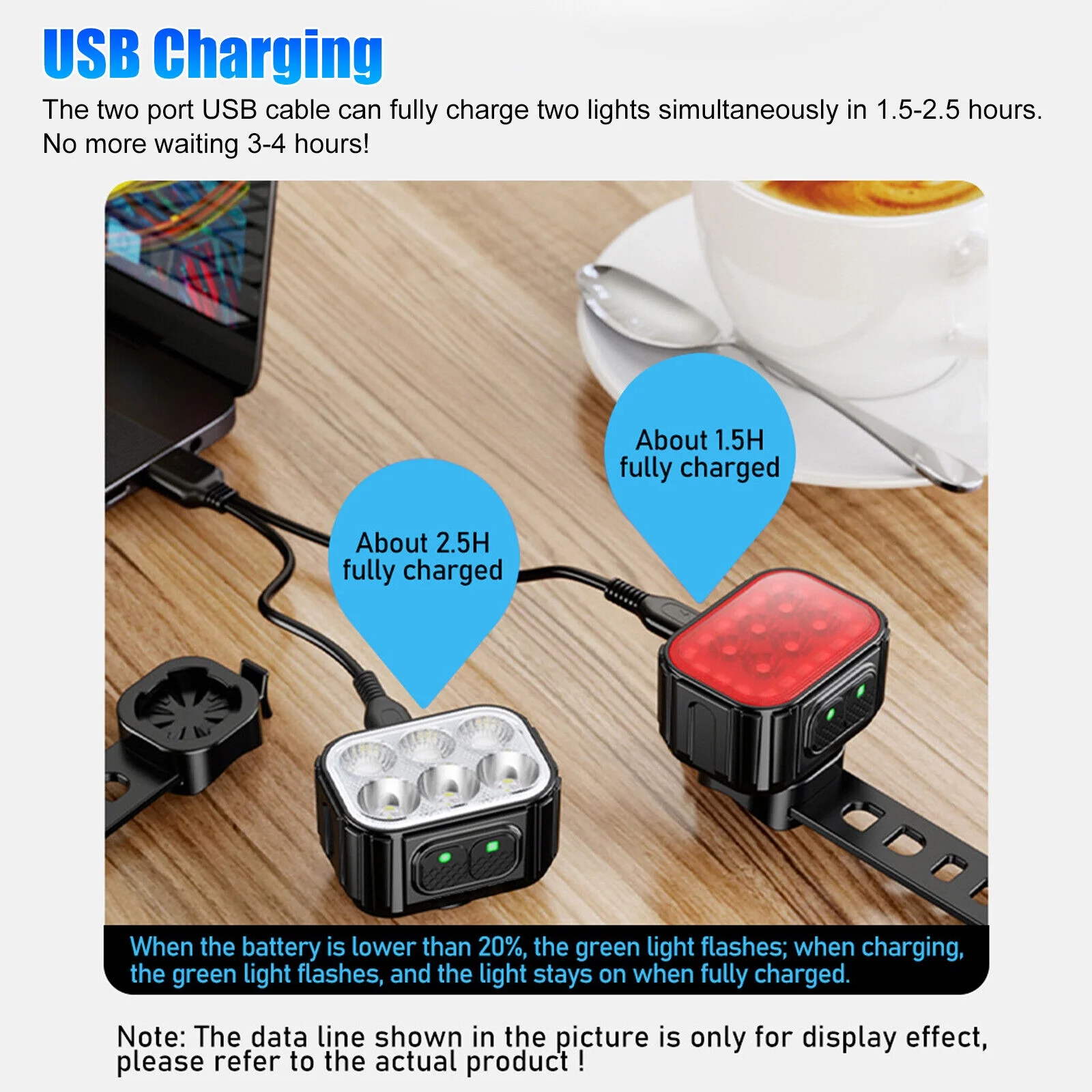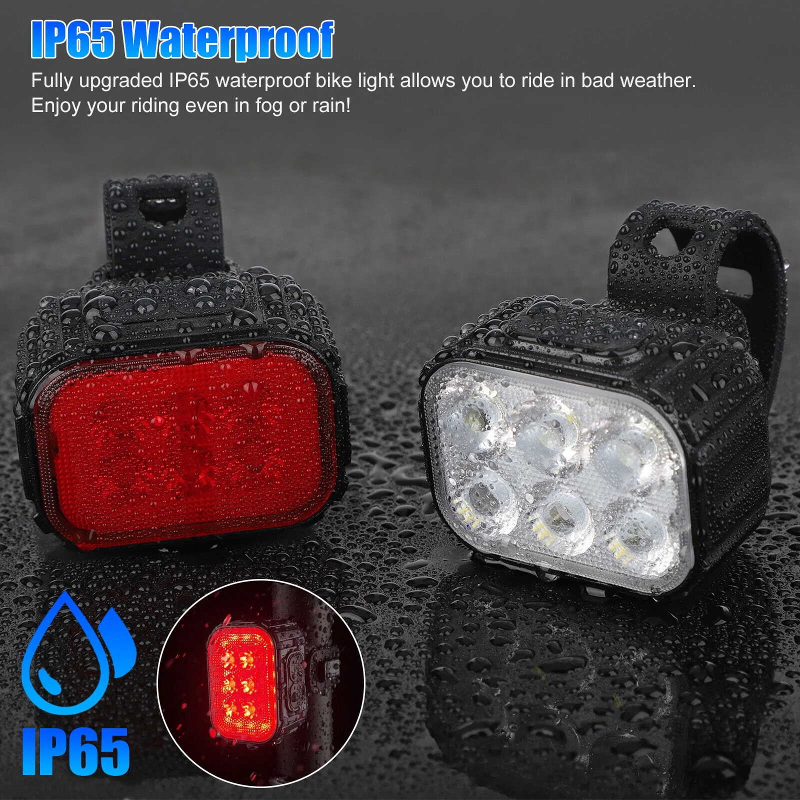 2x USB Rechargeable LED Bicycle Headlight Taillight Bike Front Rear Lamp Cycling