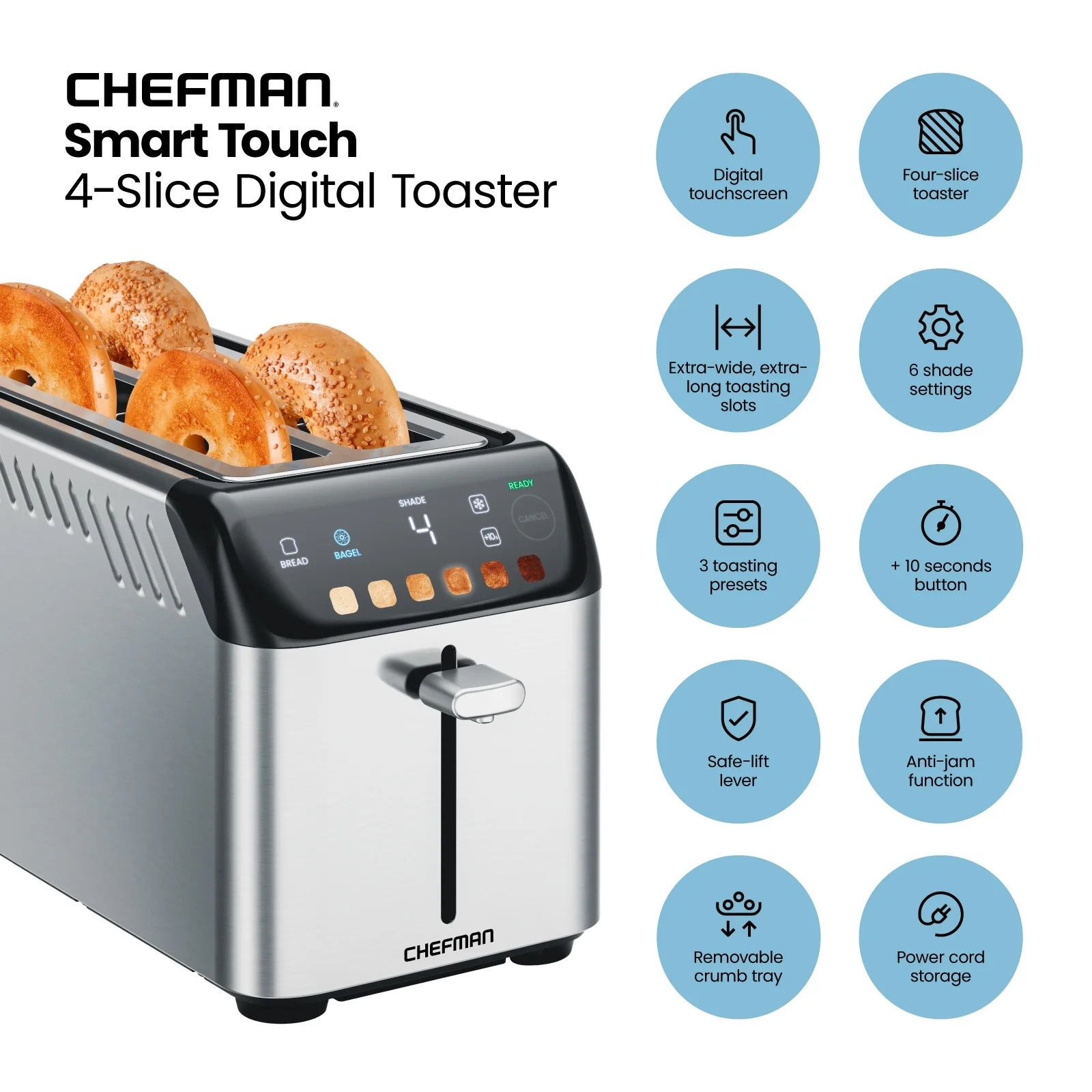 Chefman Smart Touch 4 Slice Digital Toaster, 6 Shade, Extra-Wide Slots, Removable Crumb Tray