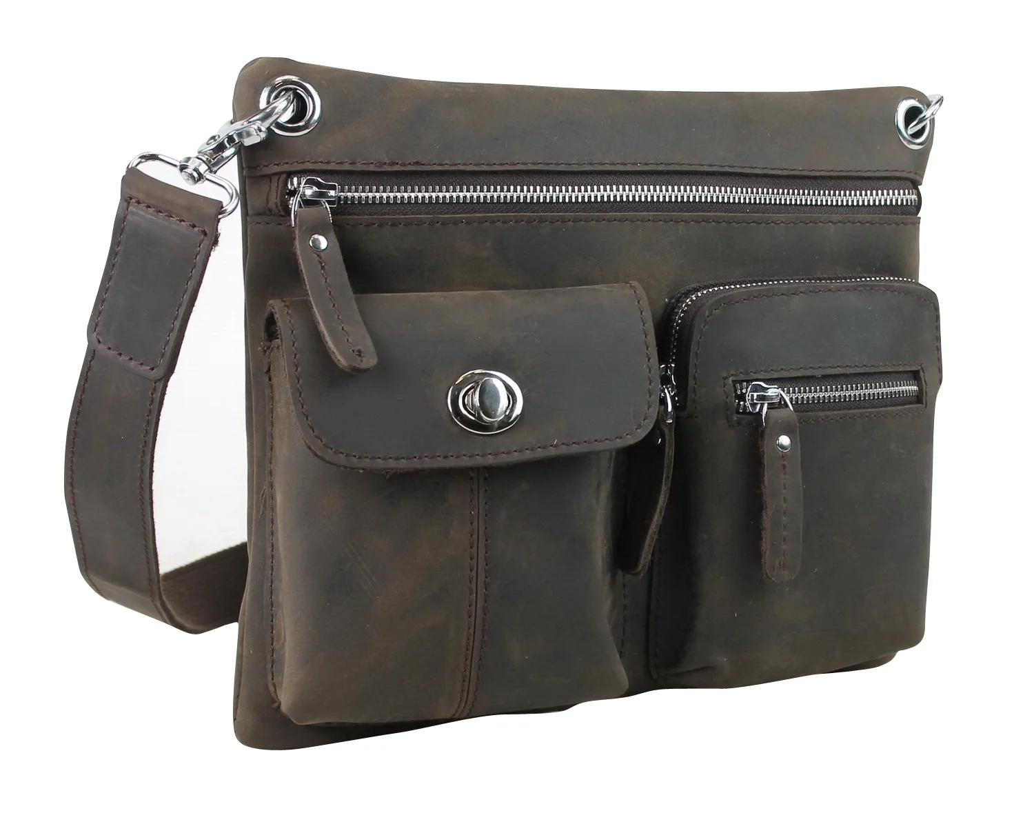 Vagarant Traveler Full Grain Leather Art Panel Design Shoulder Bag LS70.DS