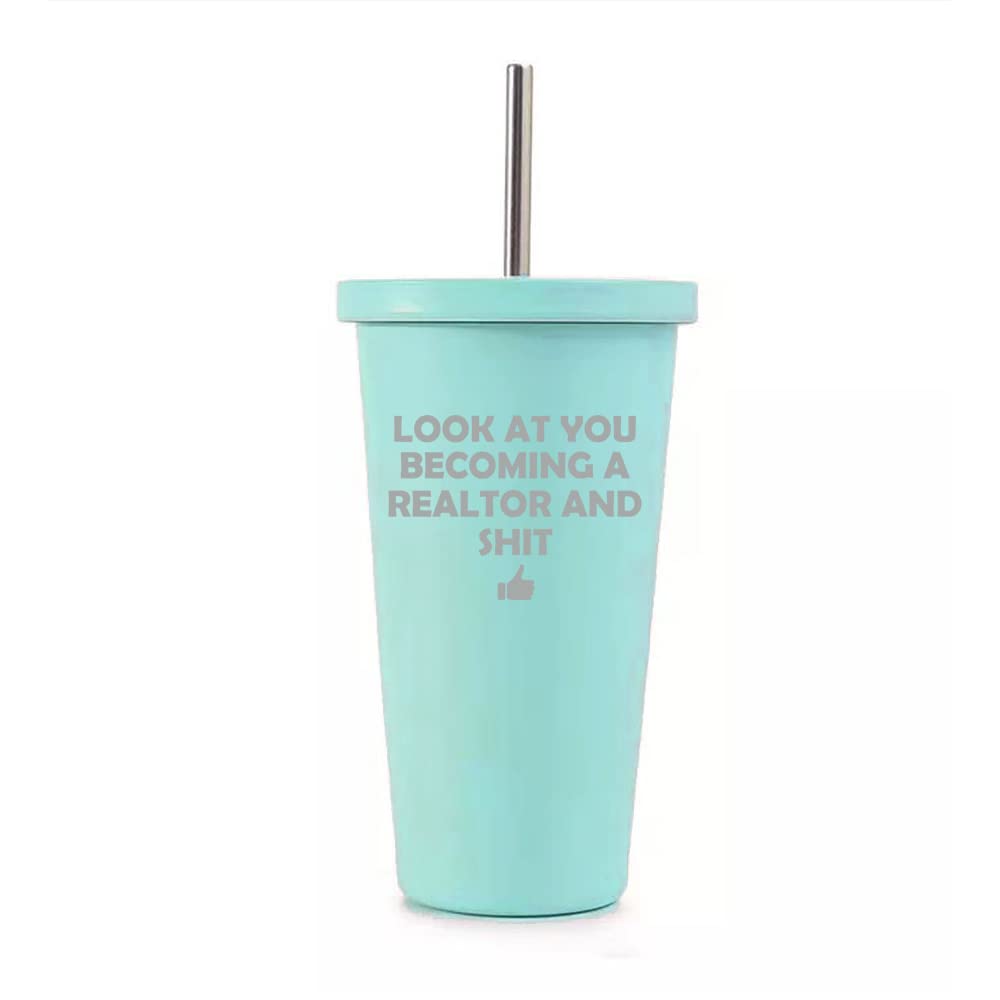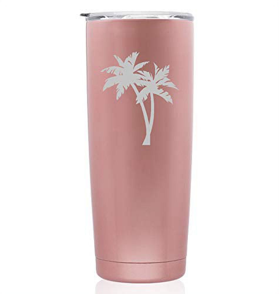 Rose Gold Double Wall Vacuum Insulated Stainless Steel Tumbler Travel Mug Palm Trees (Skinny 20 oz)