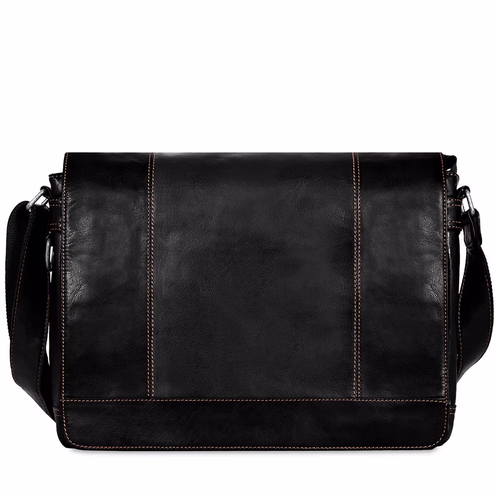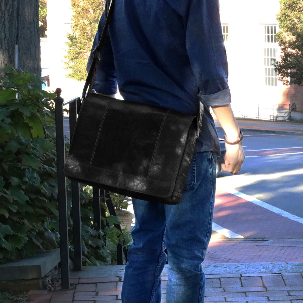 Jack Georges Voyager Hand-Stained Buffalo Leather Full Size Messenger Bag #7315 (Black)
