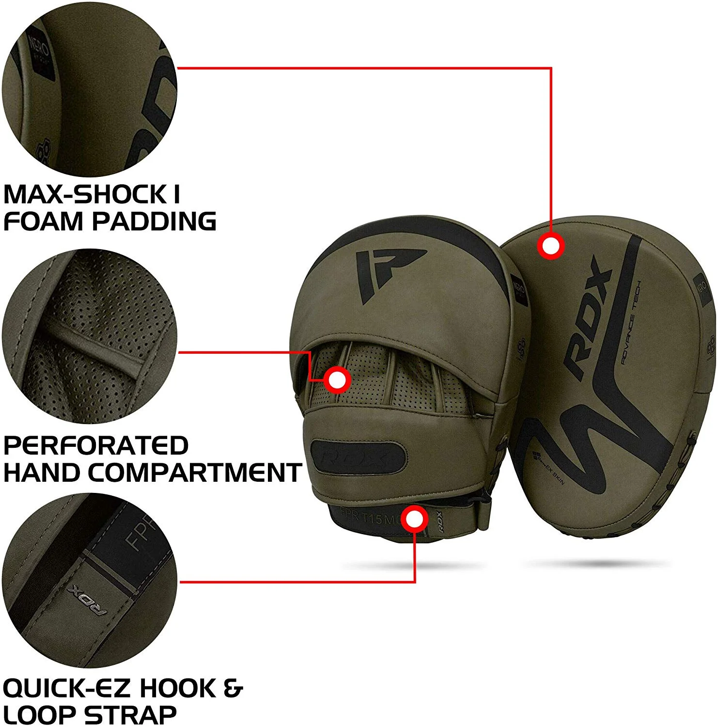 RDX Boxing Pads Focus Mitts, Punching Target Leather Training Pads, Matte Green