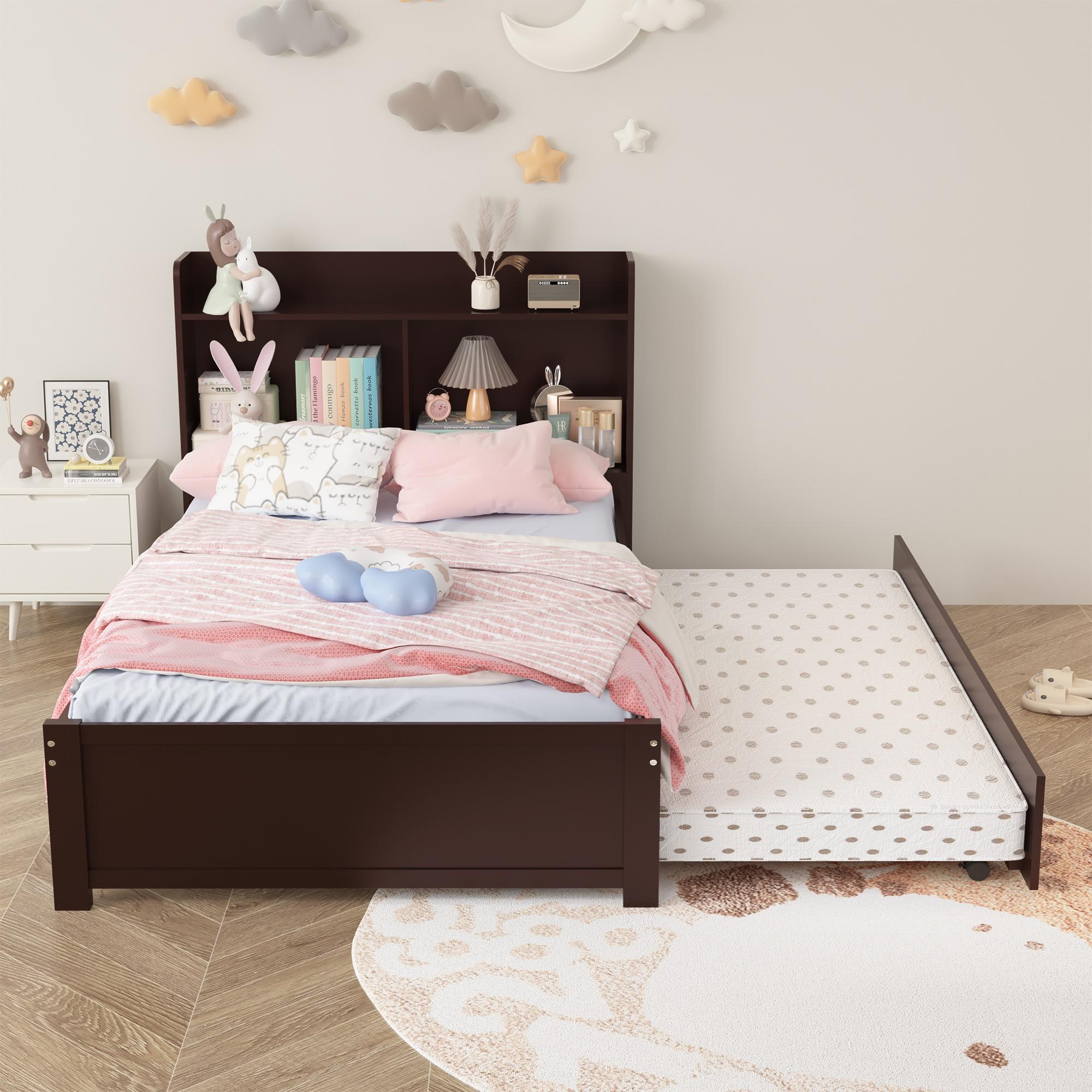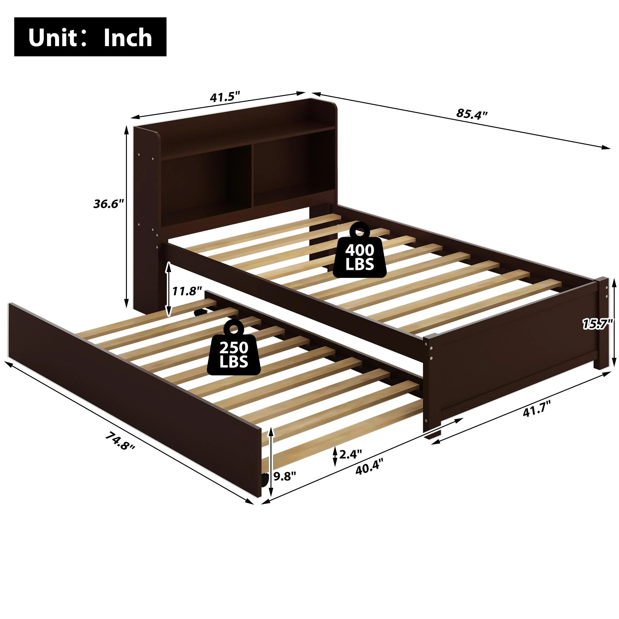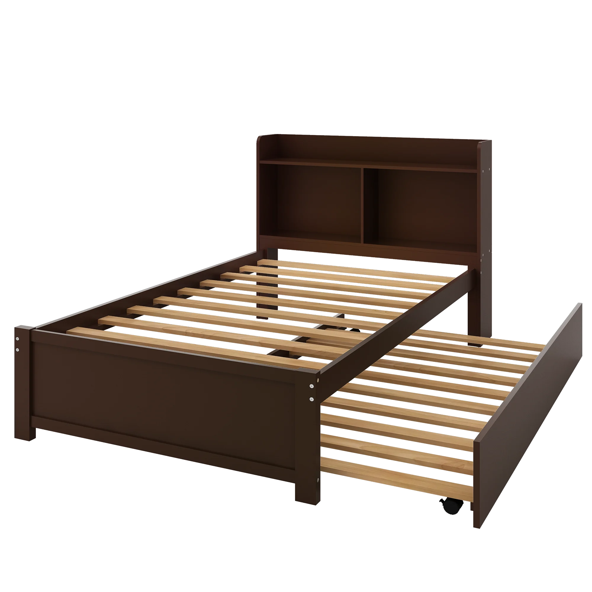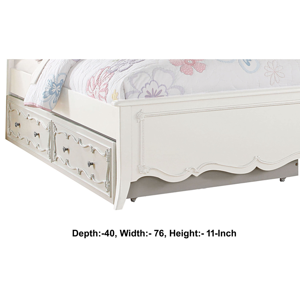 Twin Size Wooden Trundle with Round Knobs and Caster Wheels, White- Saltoro Sherpi