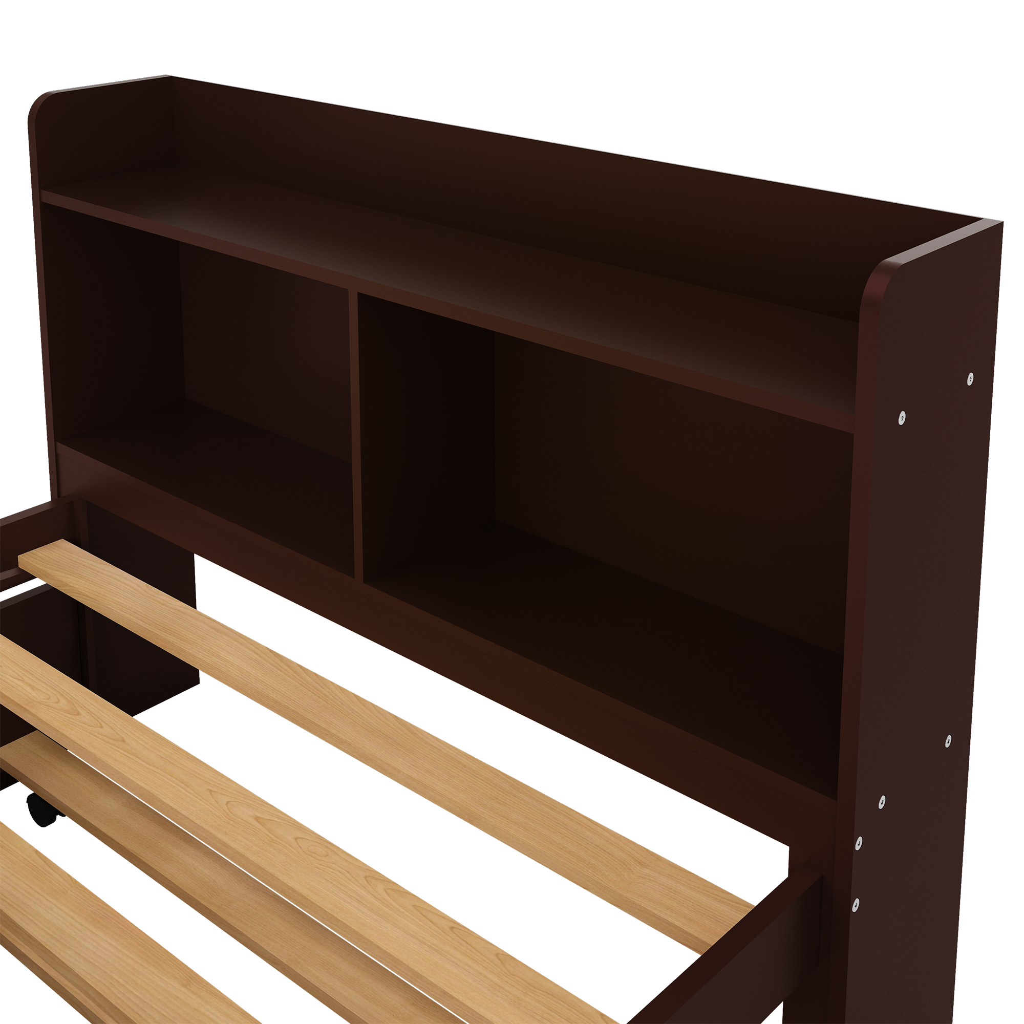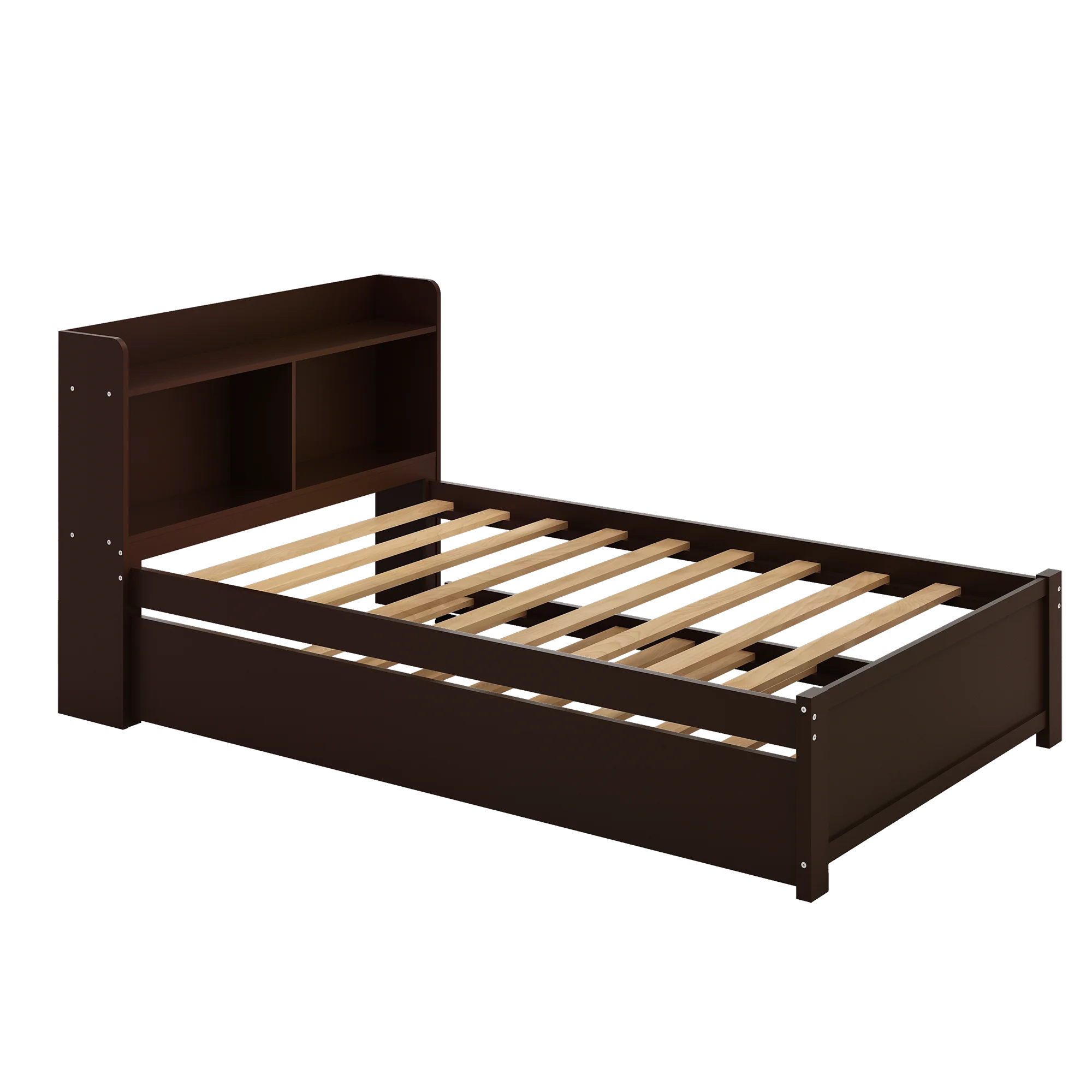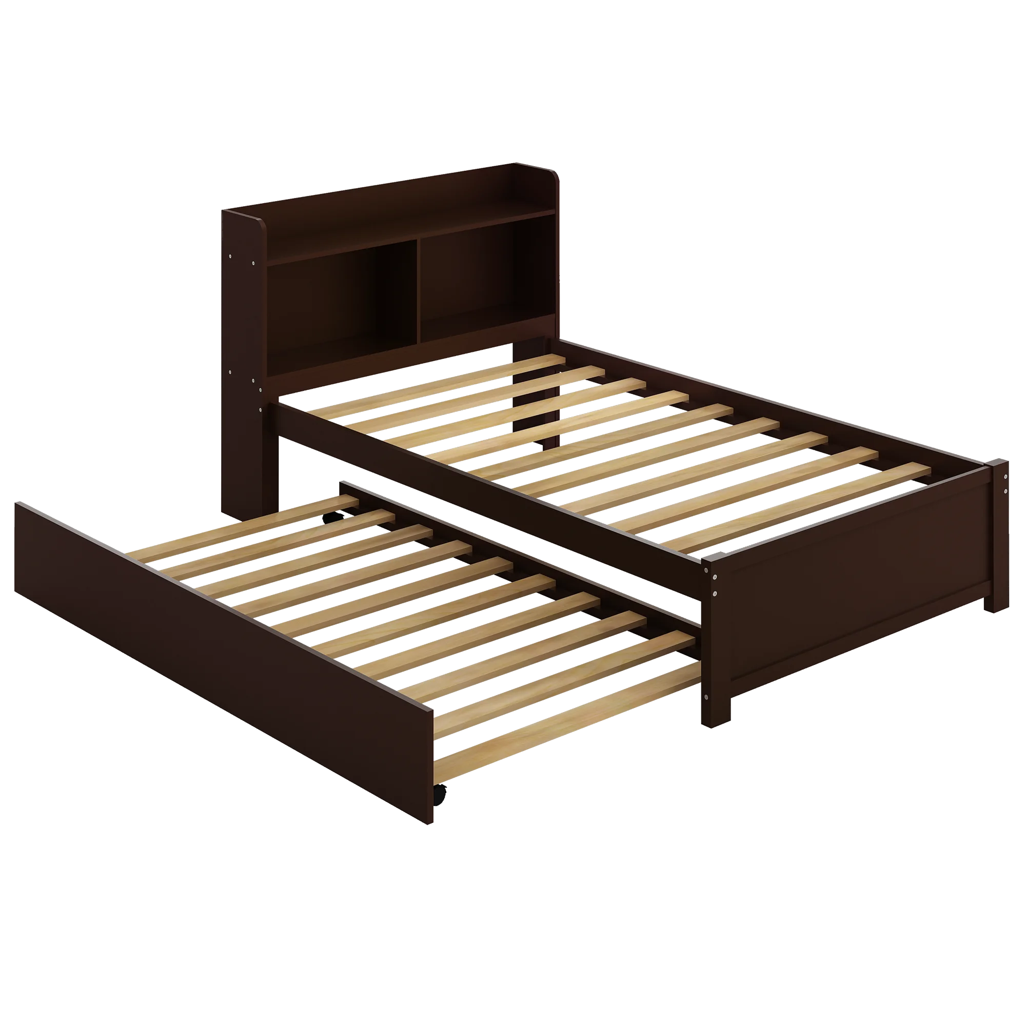 Twin Size Wooden Trundle with Round Knobs and Caster Wheels, White- Saltoro Sherpi