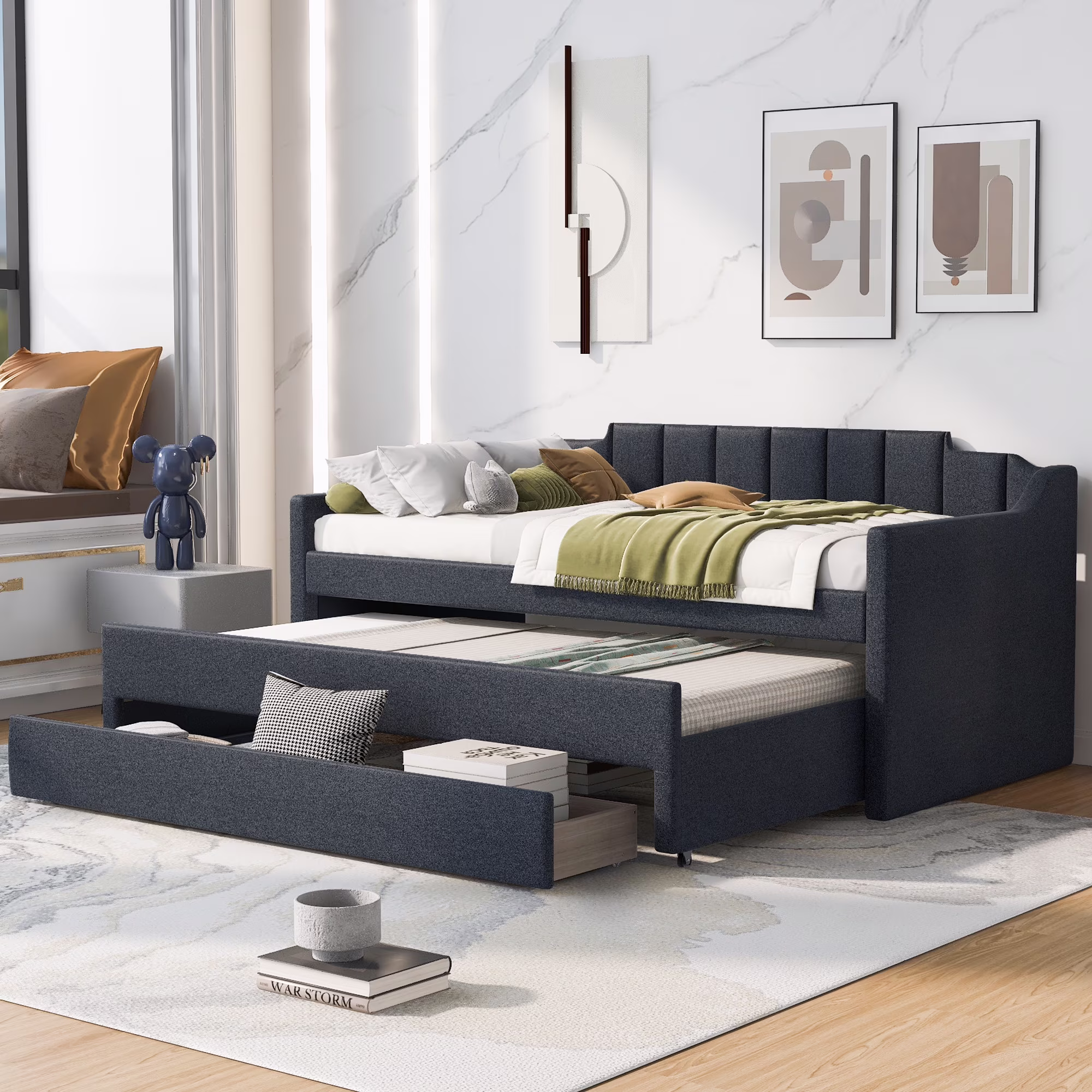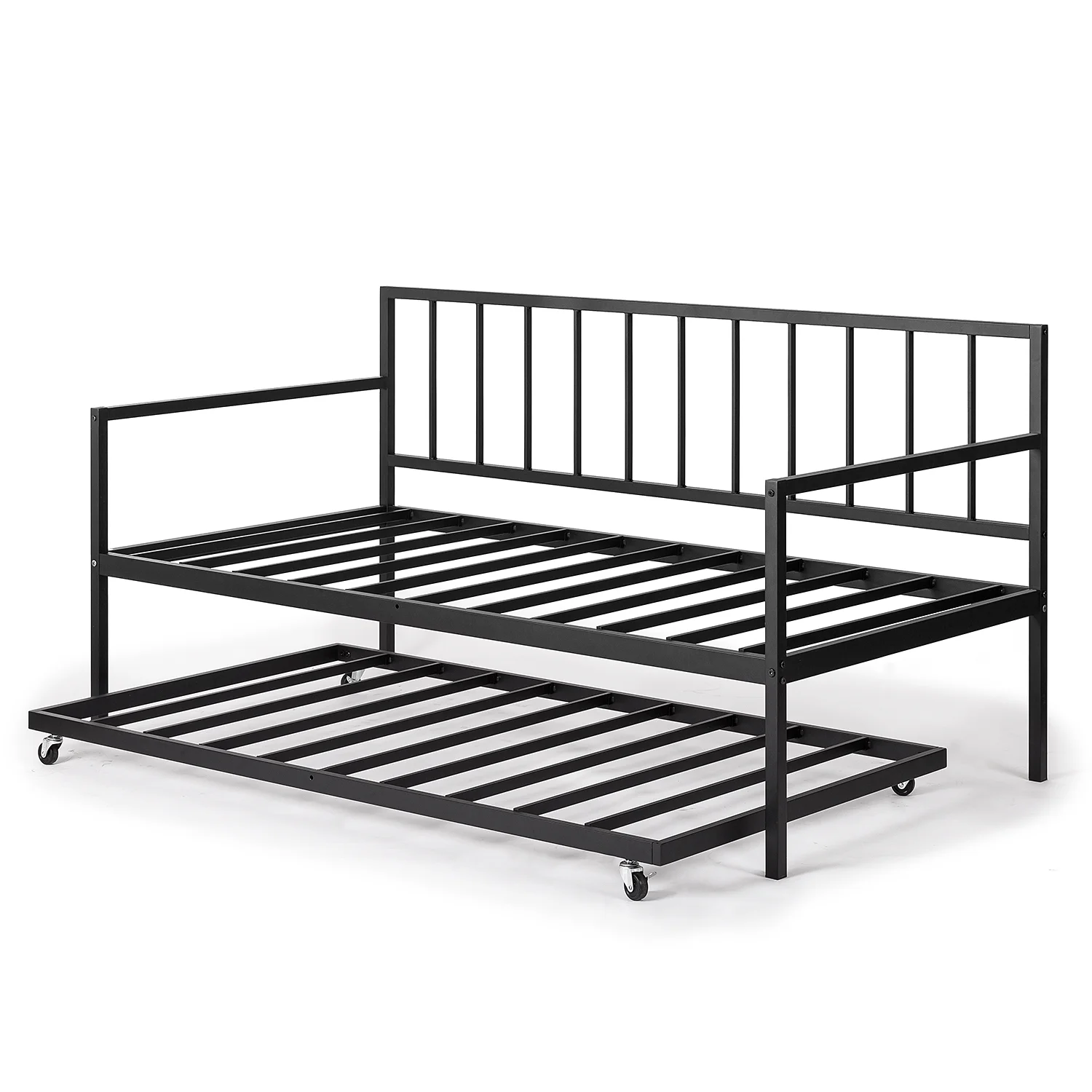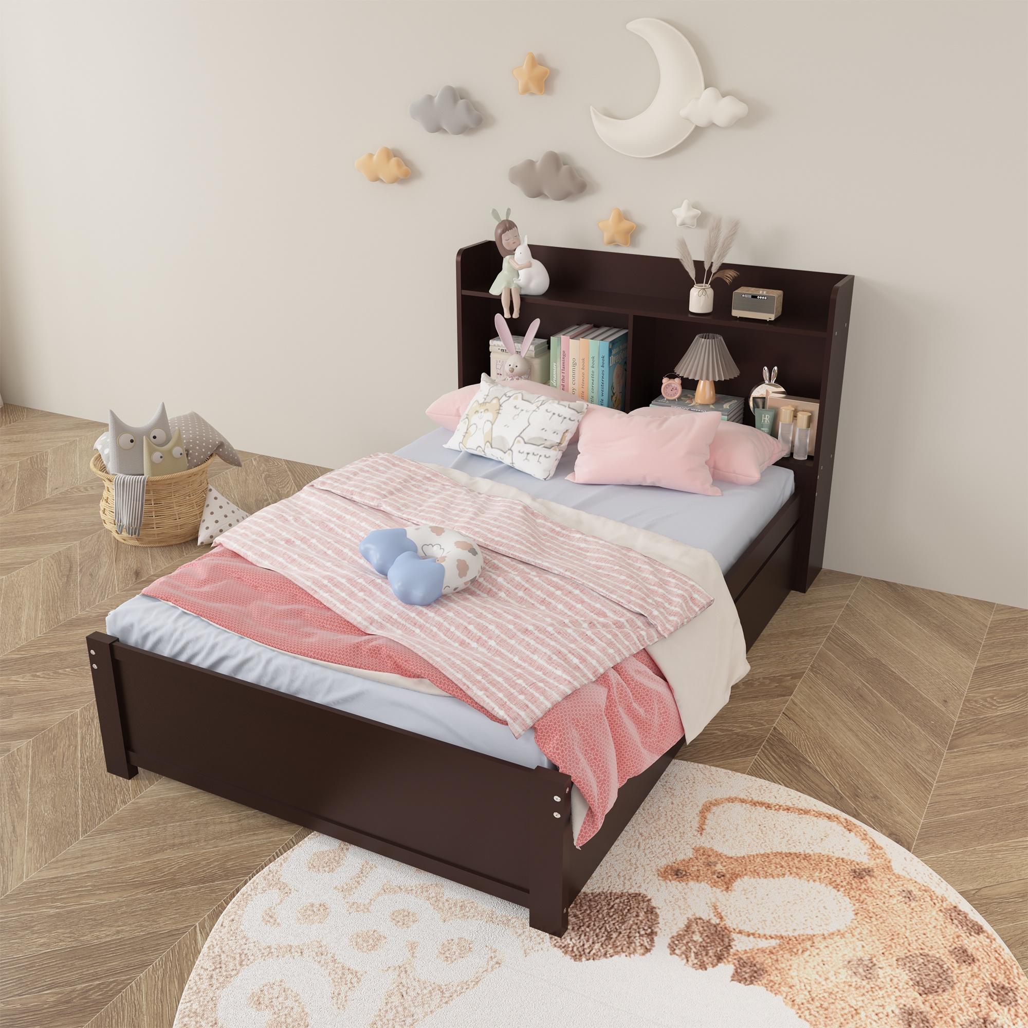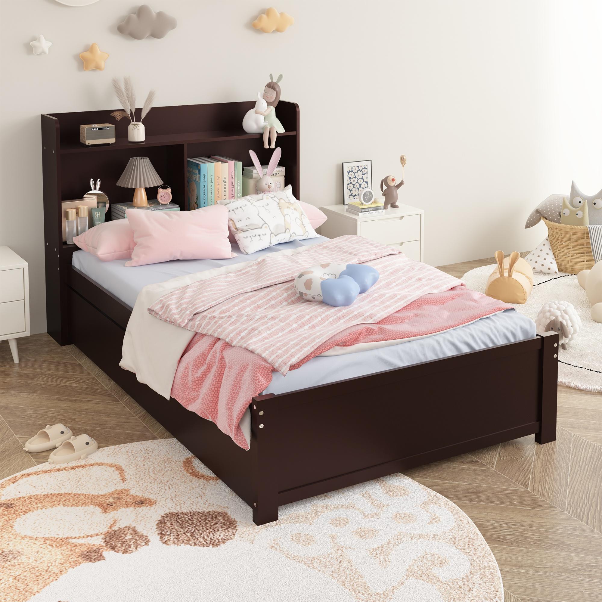 Twin Size Wooden Trundle with Round Knobs and Caster Wheels, White- Saltoro Sherpi