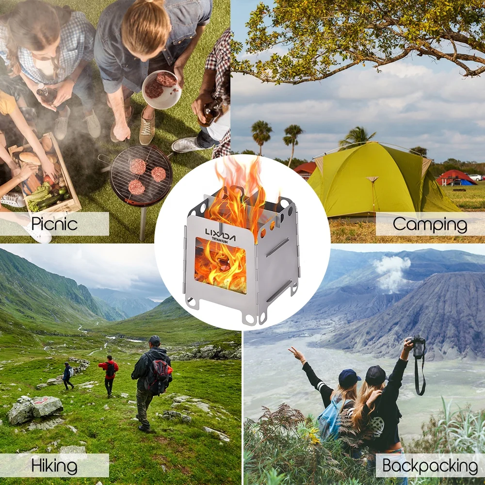 Lixada Portable Stainless Steel Lightweight Wood Outdoor Cooking Picnic Camping