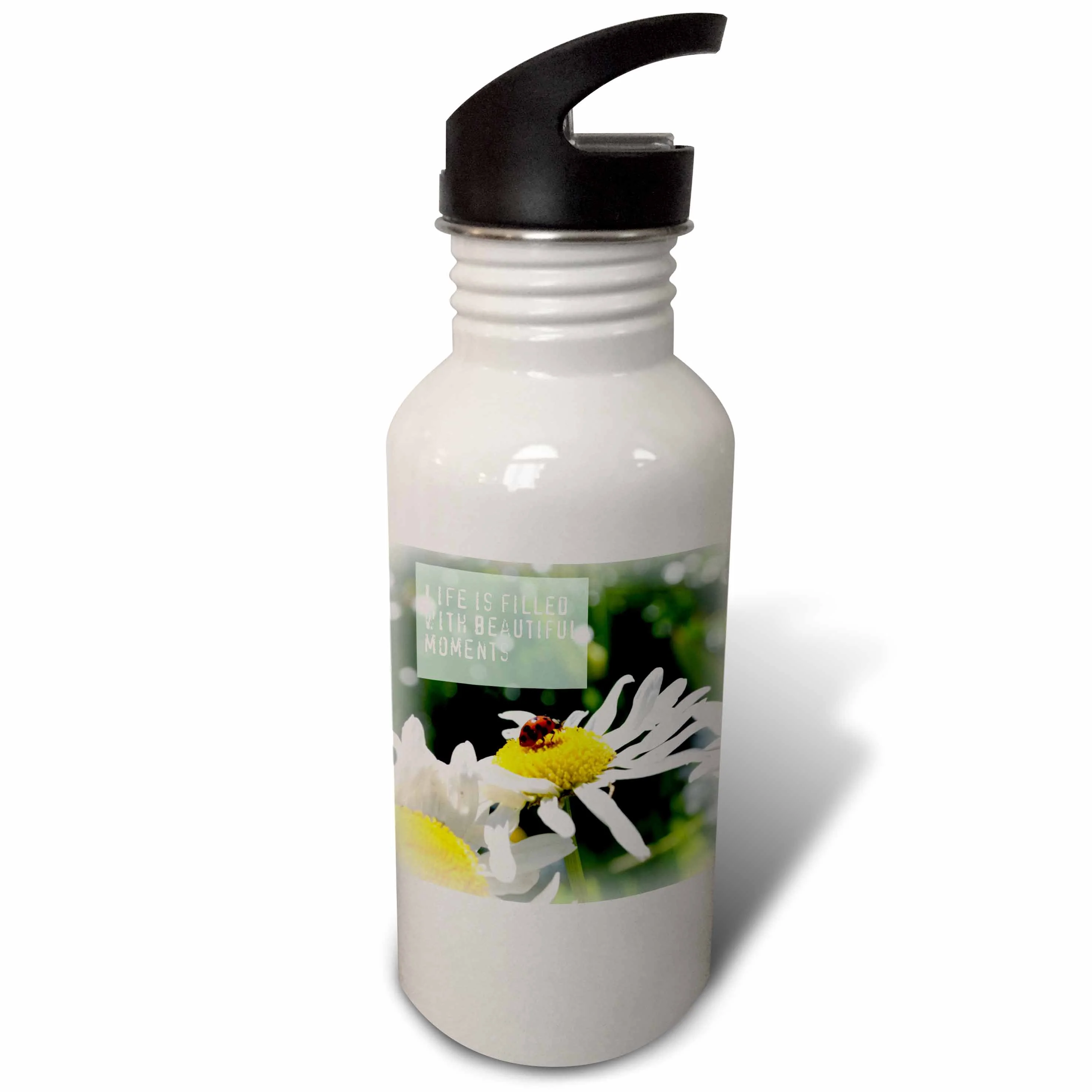 Beautiful Moments Ladybug and Daisy Flowers Inspirational 21 oz Sports Water Bottle wb-31427-1