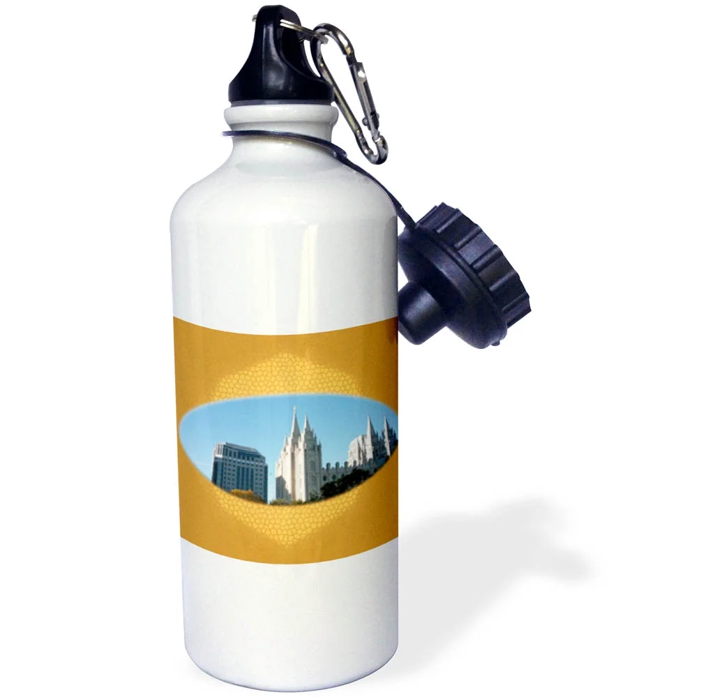 3dRose The beautiful Salt Lake City Temple for LDS Church on gold design - Water Bottle, 21-ounce