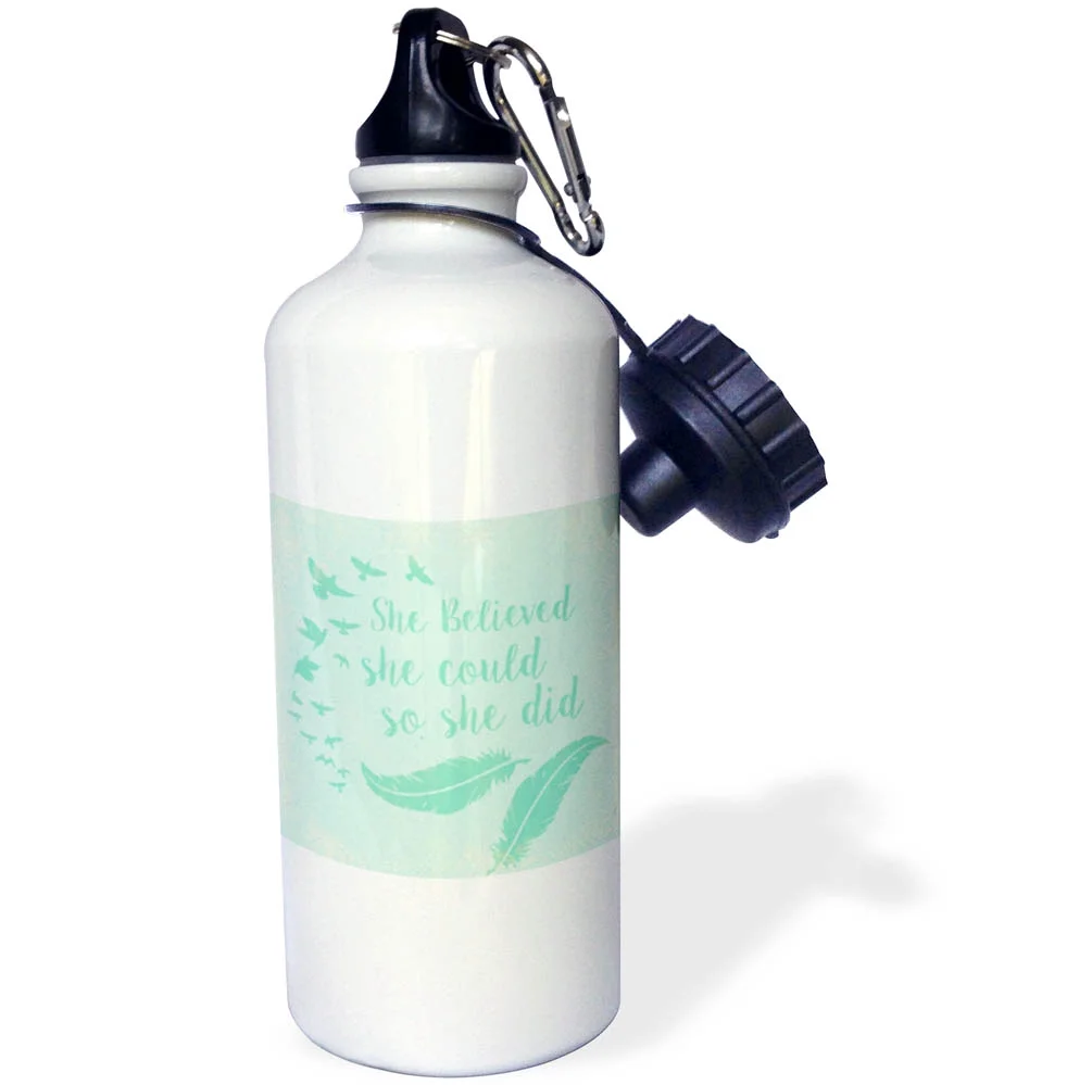 3dRose Bird And Feathers And Quote She Believed She Could So She Did - Water Bottle, 21-ounce
