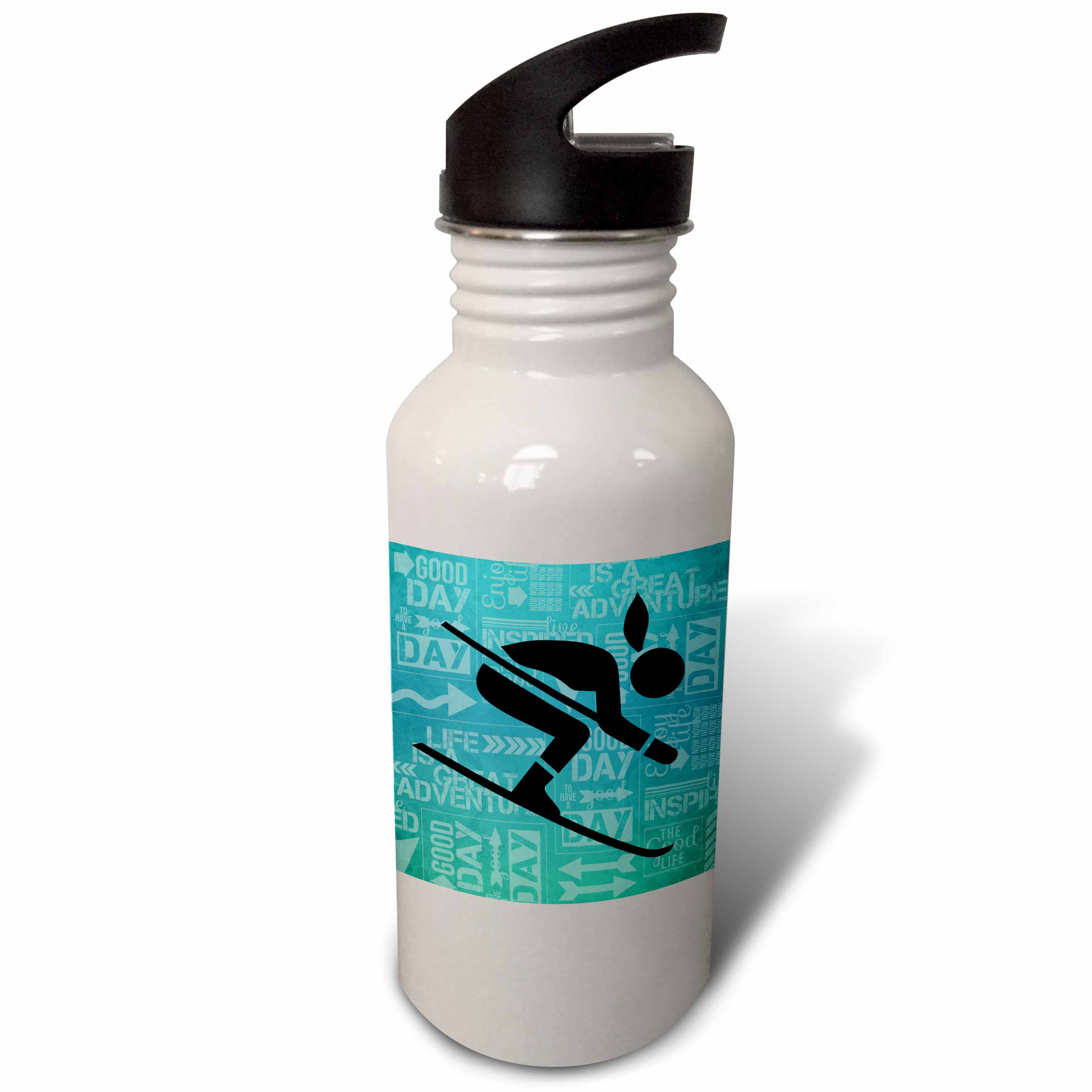 Downhill Skier Silhouette in Blue Hues with Adventure Word Art 21 oz Sports Water Bottle wb-173213-1