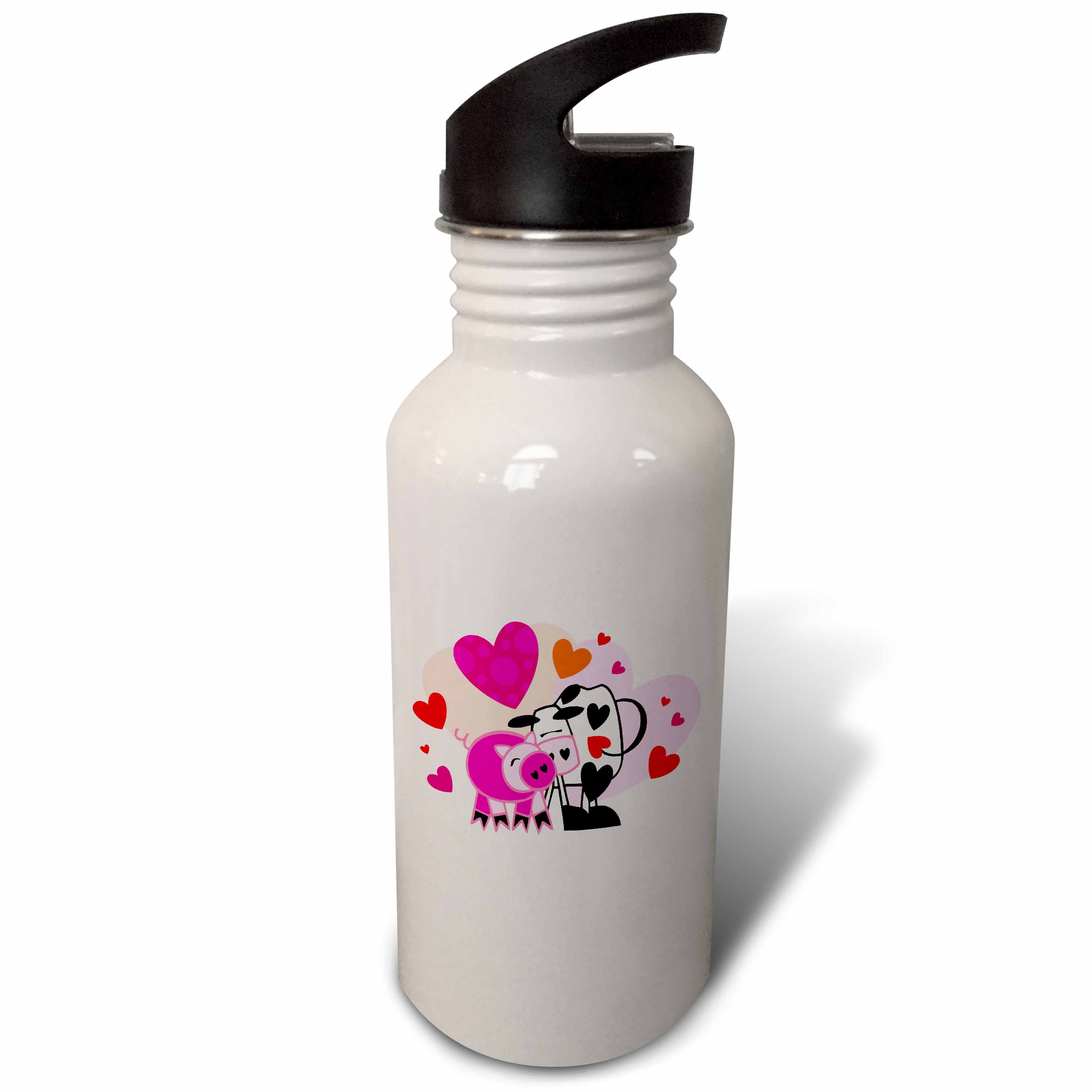Cute Cow and Pig Valentine Design 21 oz Sports Water Bottle wb-102445-1
